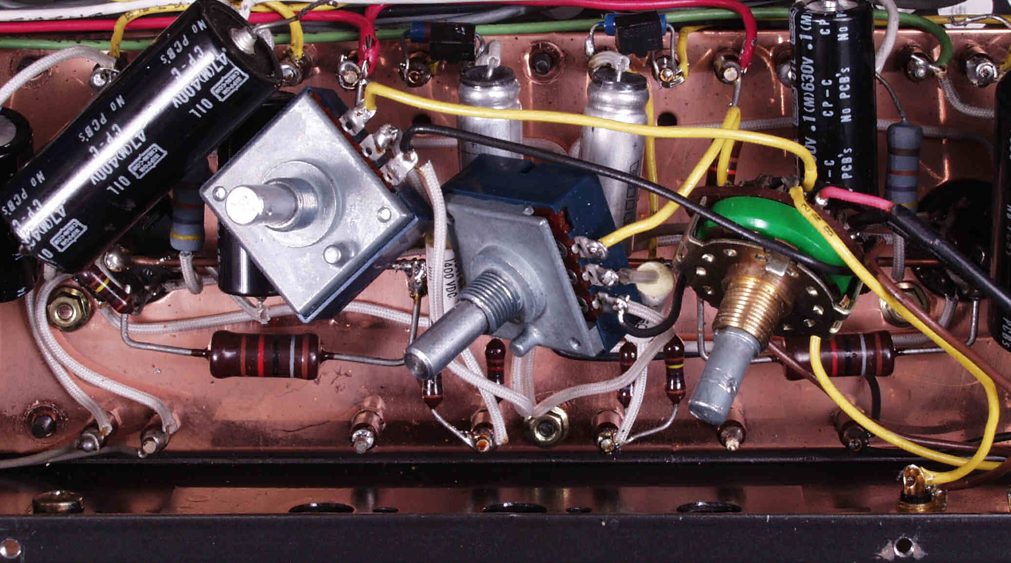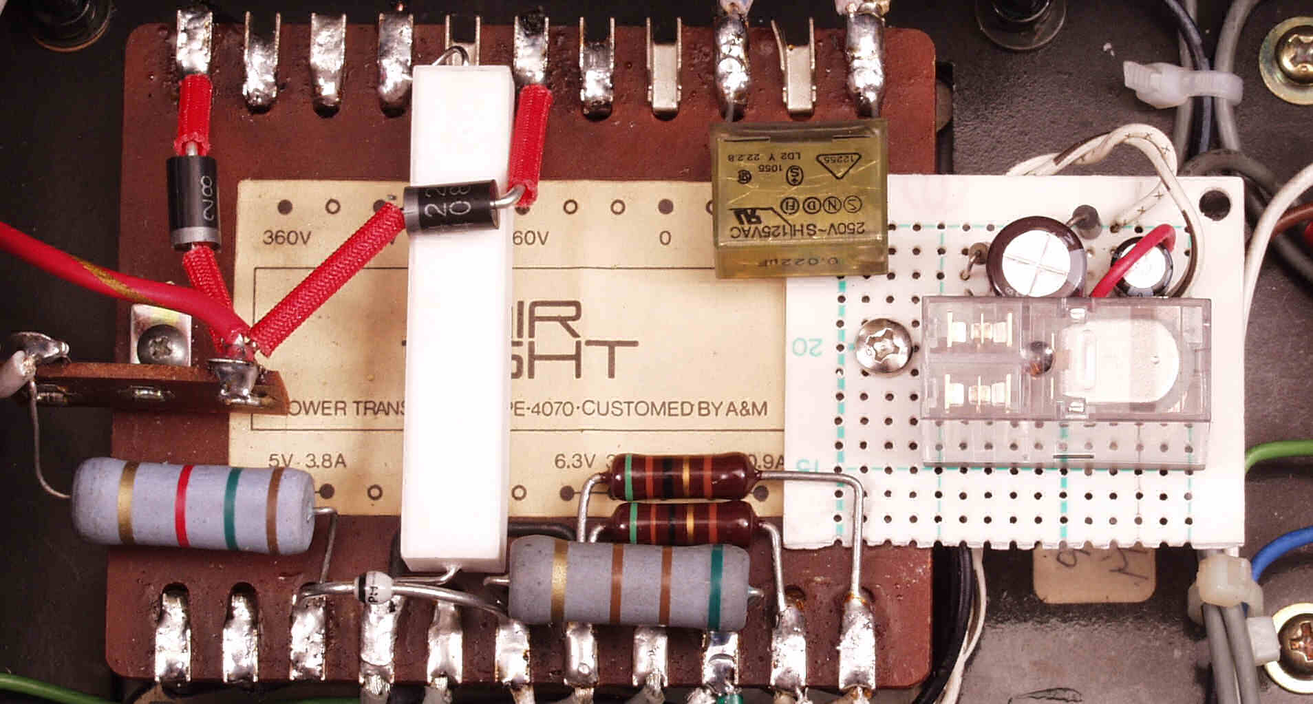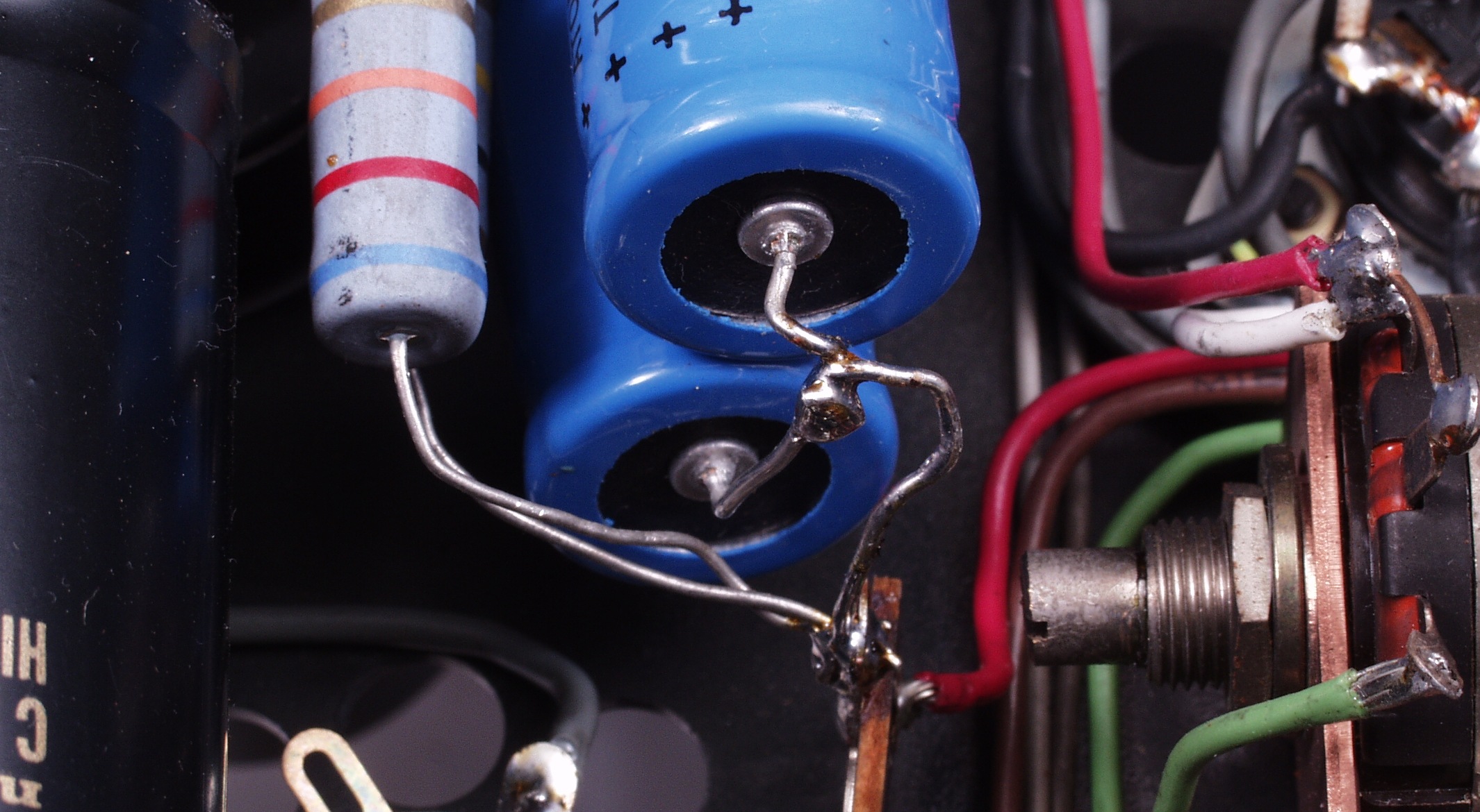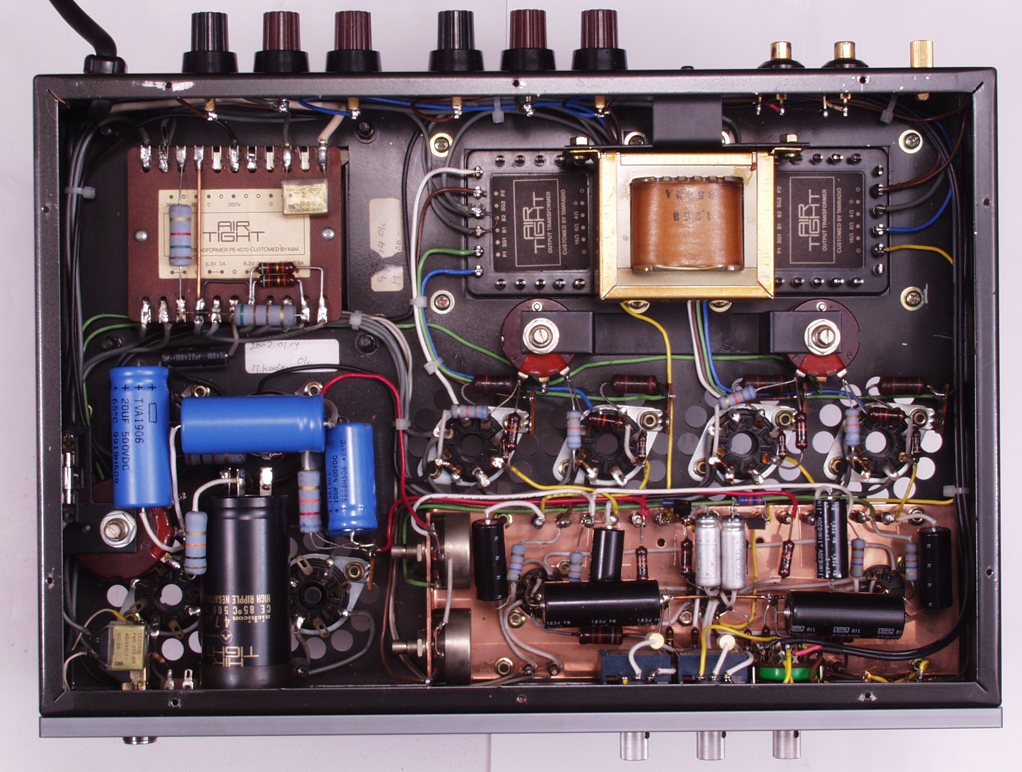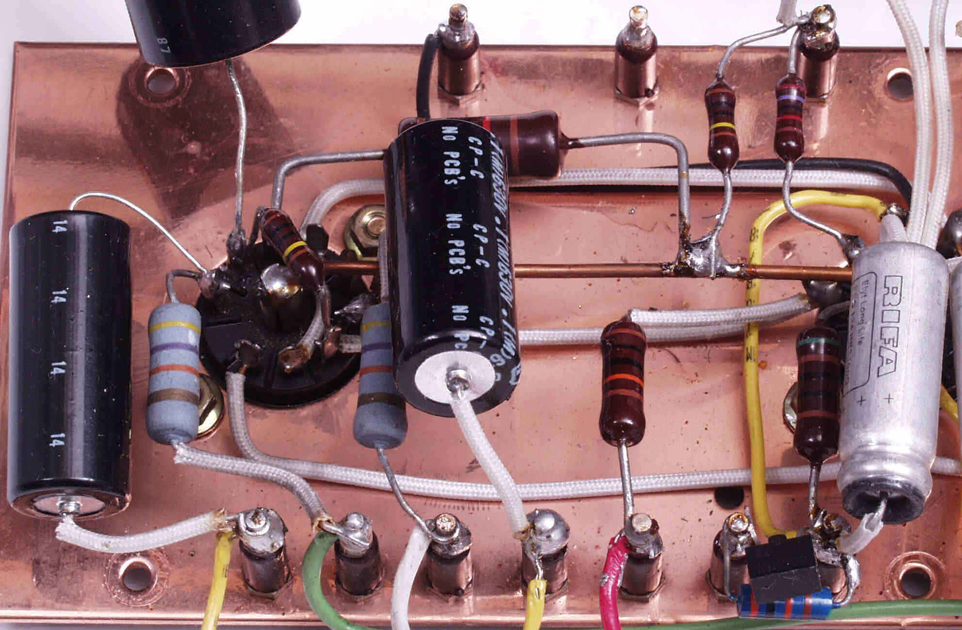 A53. 修理前点検中 販売店の改造 6CA7のバイアス回路(50V)に増設された500VW−20μの電解コンデンサー?