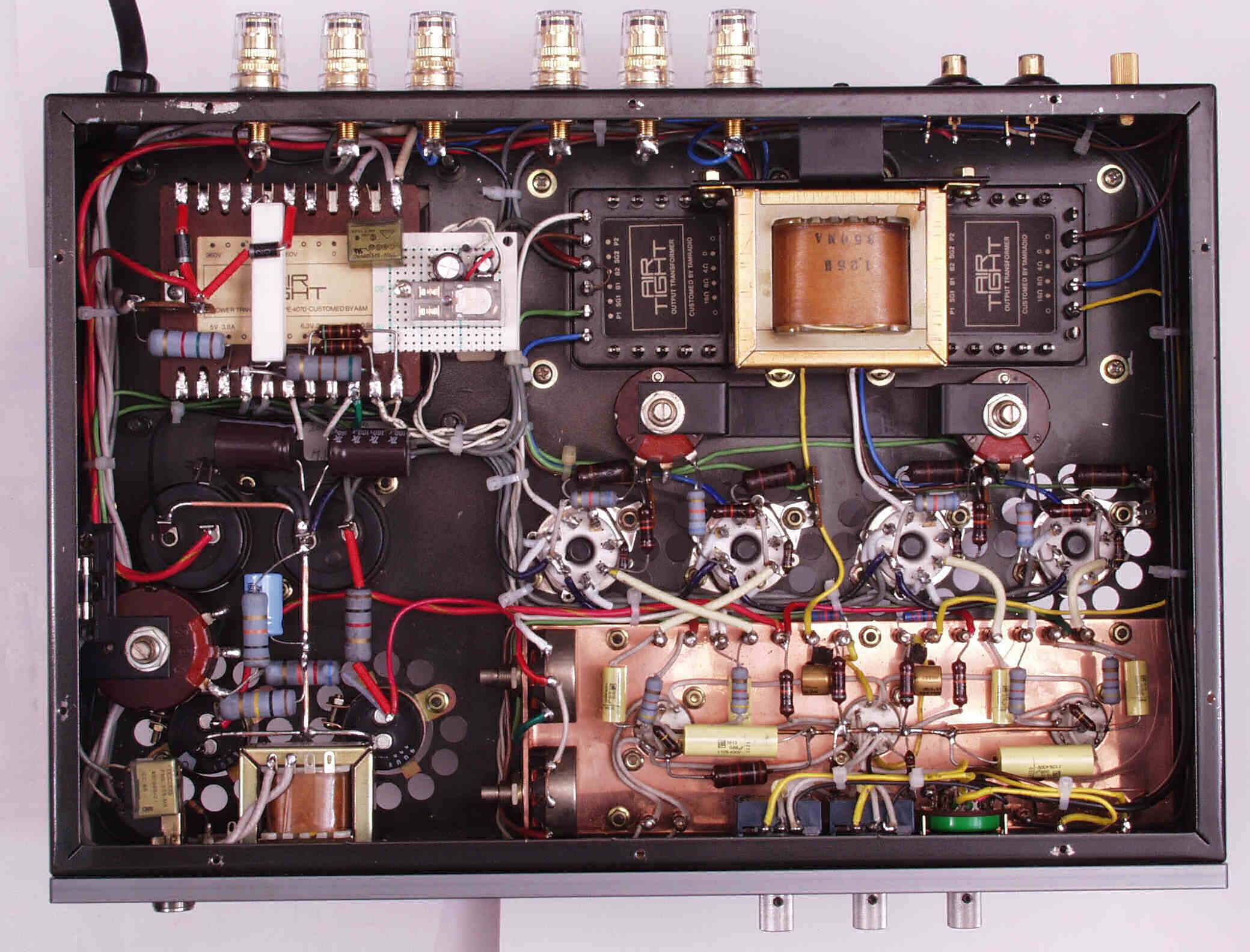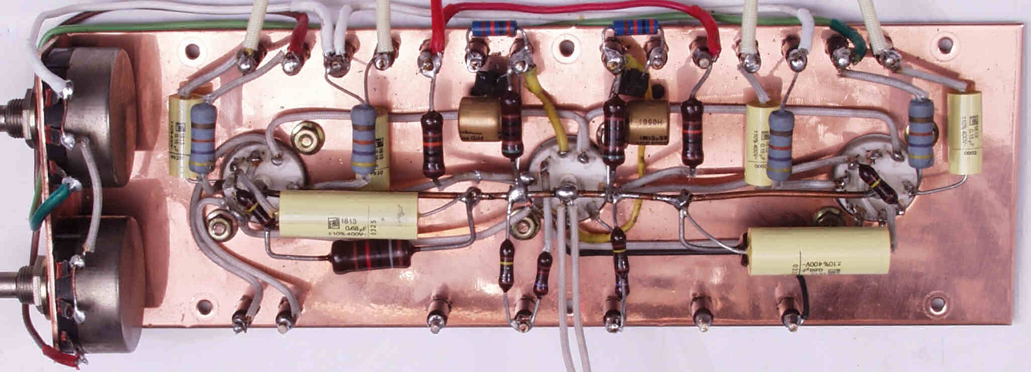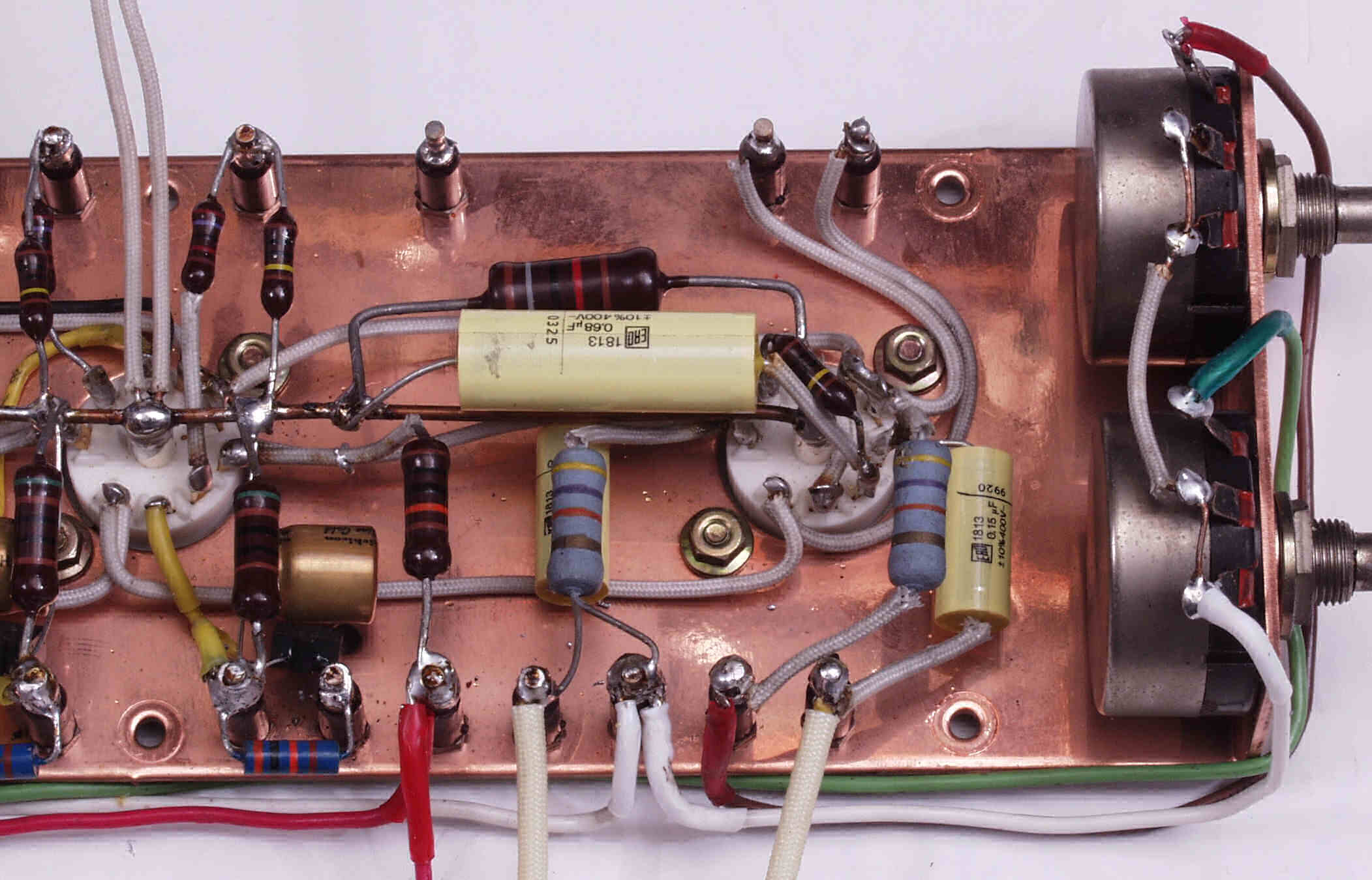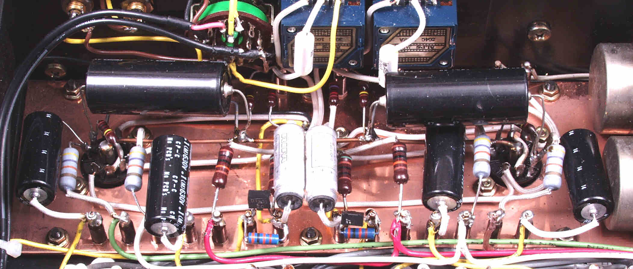 C13. 修理後 前段のシャーシ、電解コンデンサー2個、フイルムコンデンサー6個交換