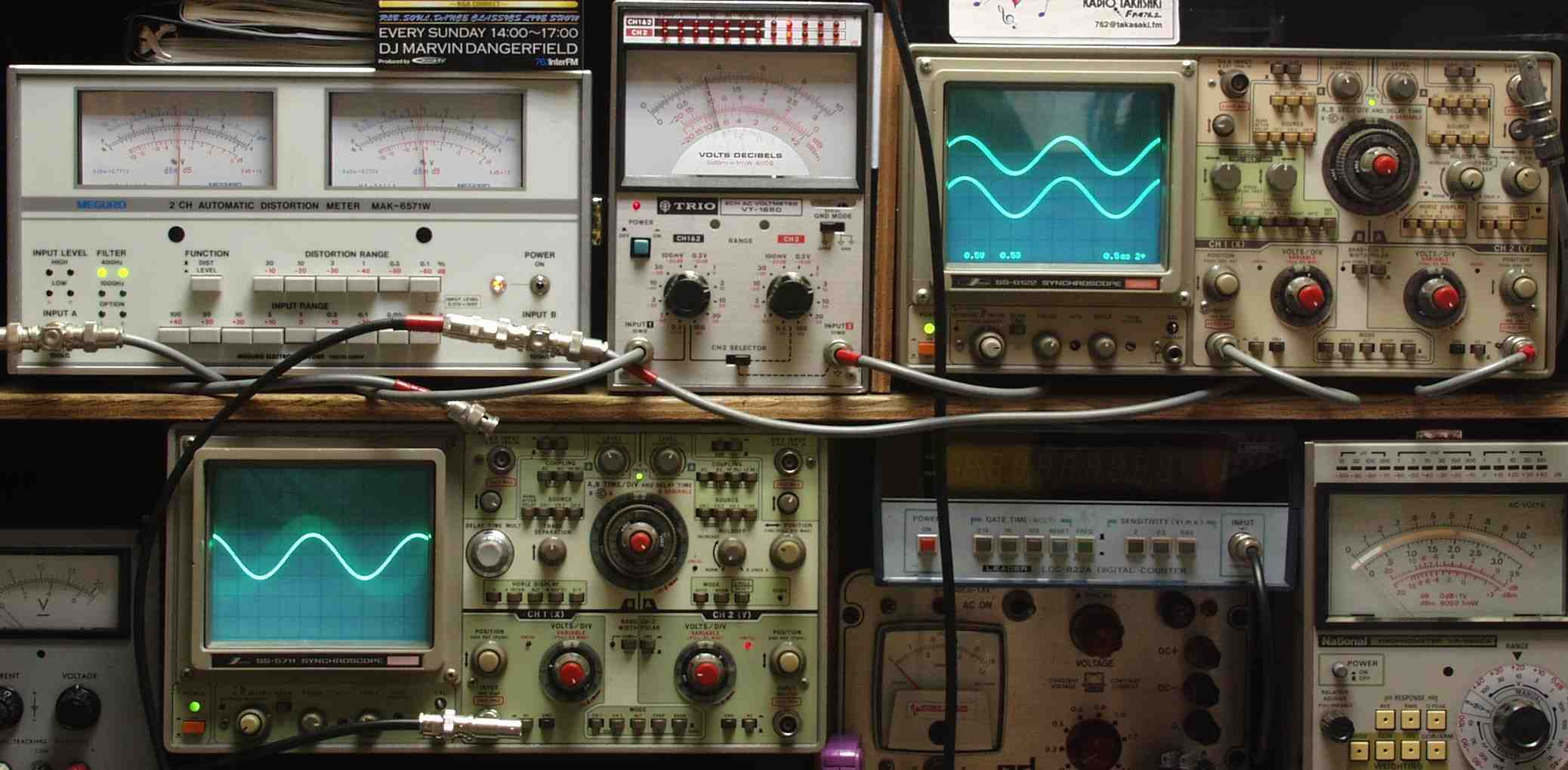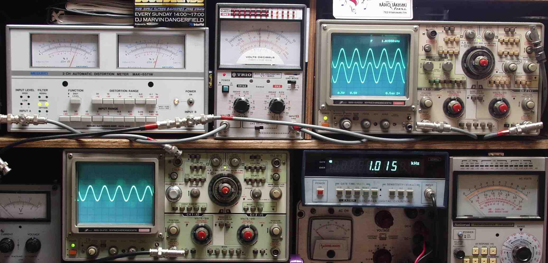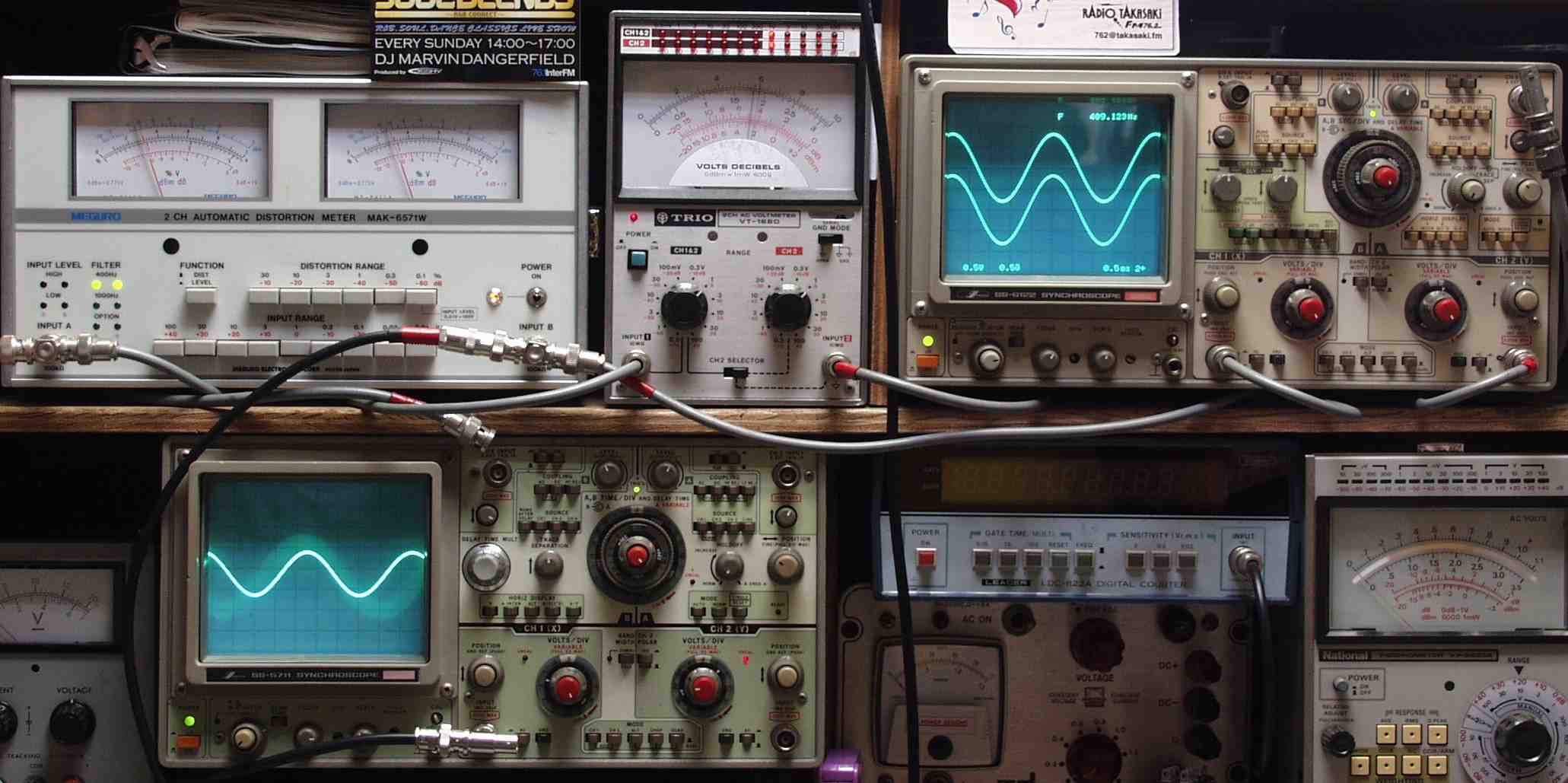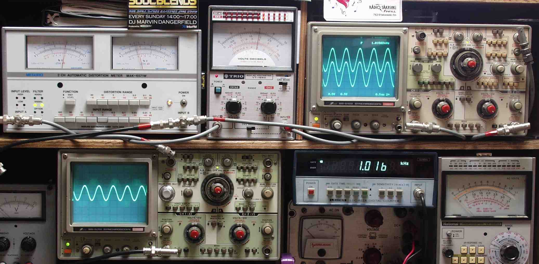 上左オーデオ発振器より400HZ・1KHZの信号を出す(歪み率=約0.003%)