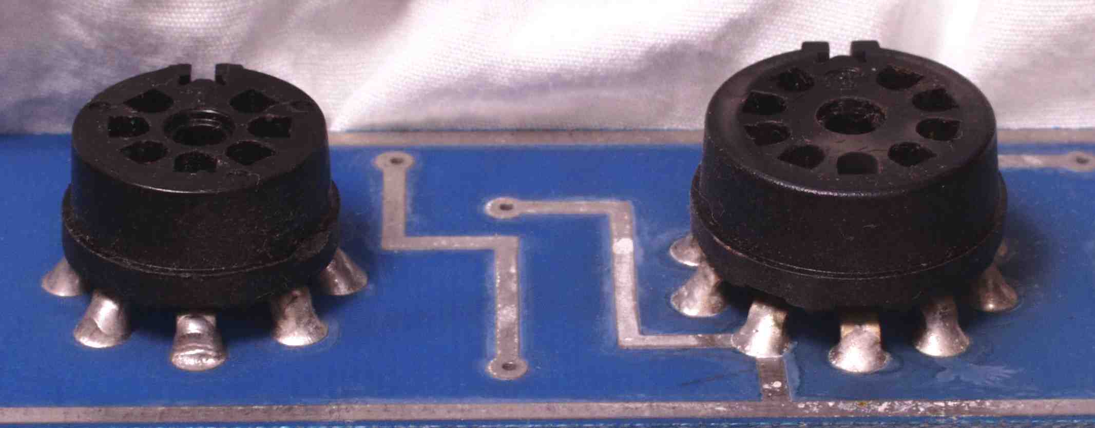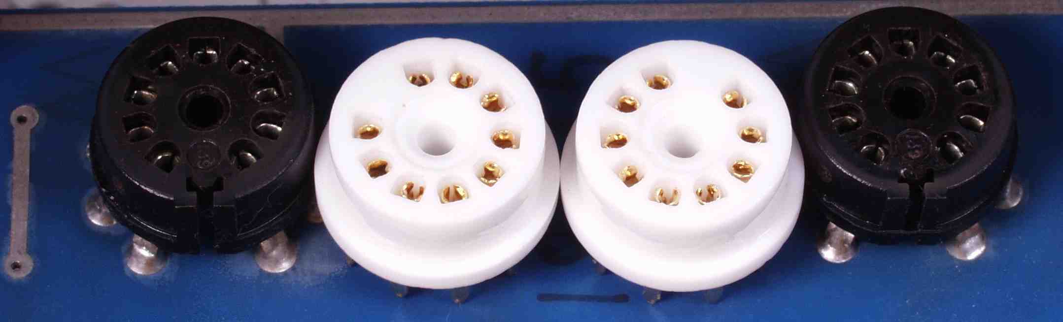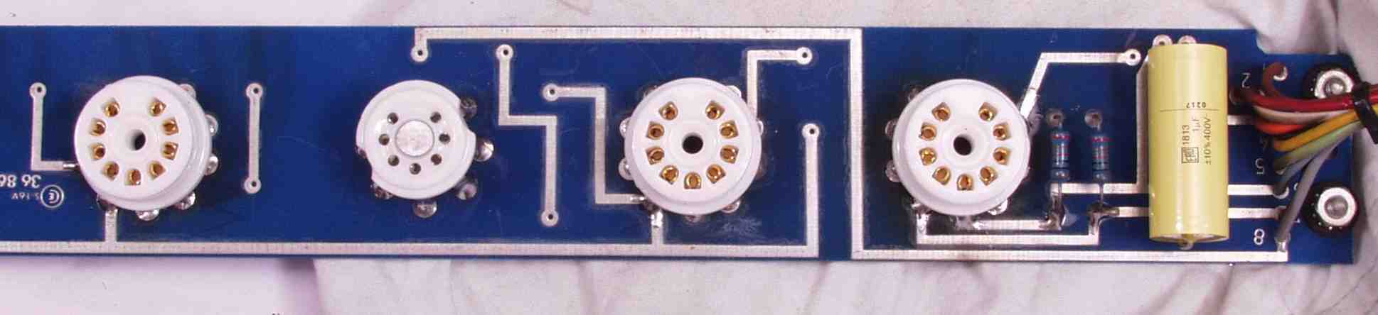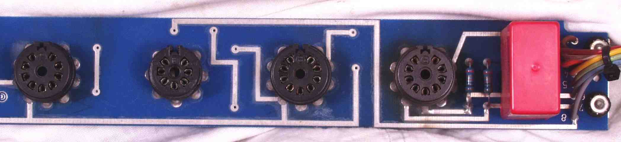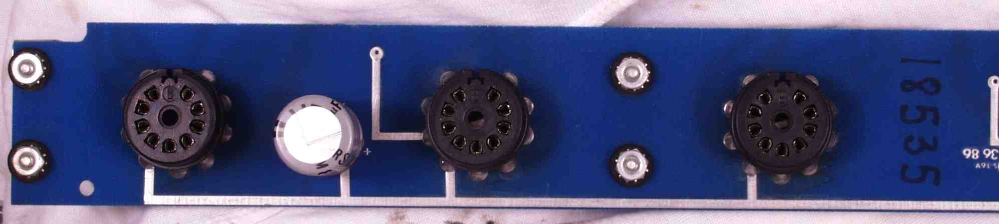 C34. 修理後 真空管基板R側 9ピンソケット3個、7ピンソケット1個、フイルムコンデンサー1個交換