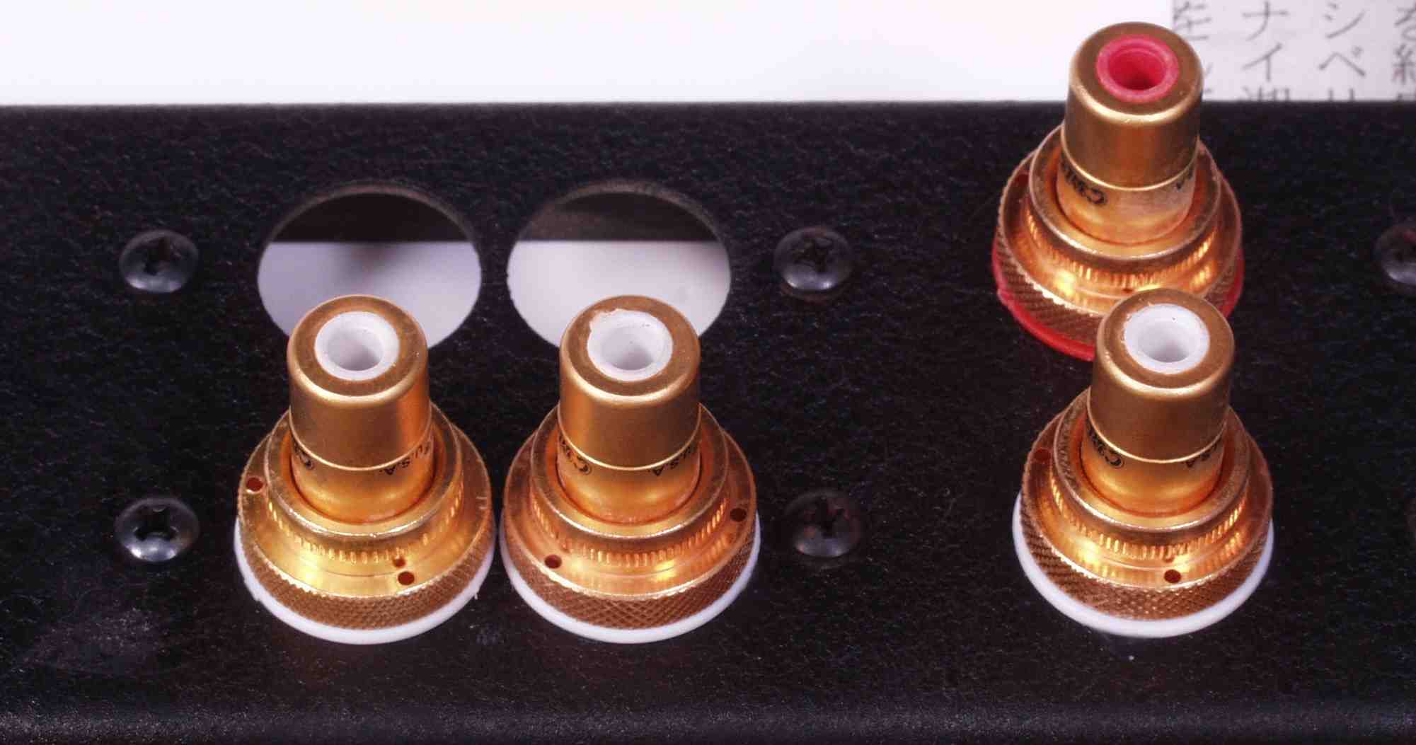 A33. 点検中 出力RCA端子、内側に基板を使用し、内ネジタイプ、アースは別個に取っている