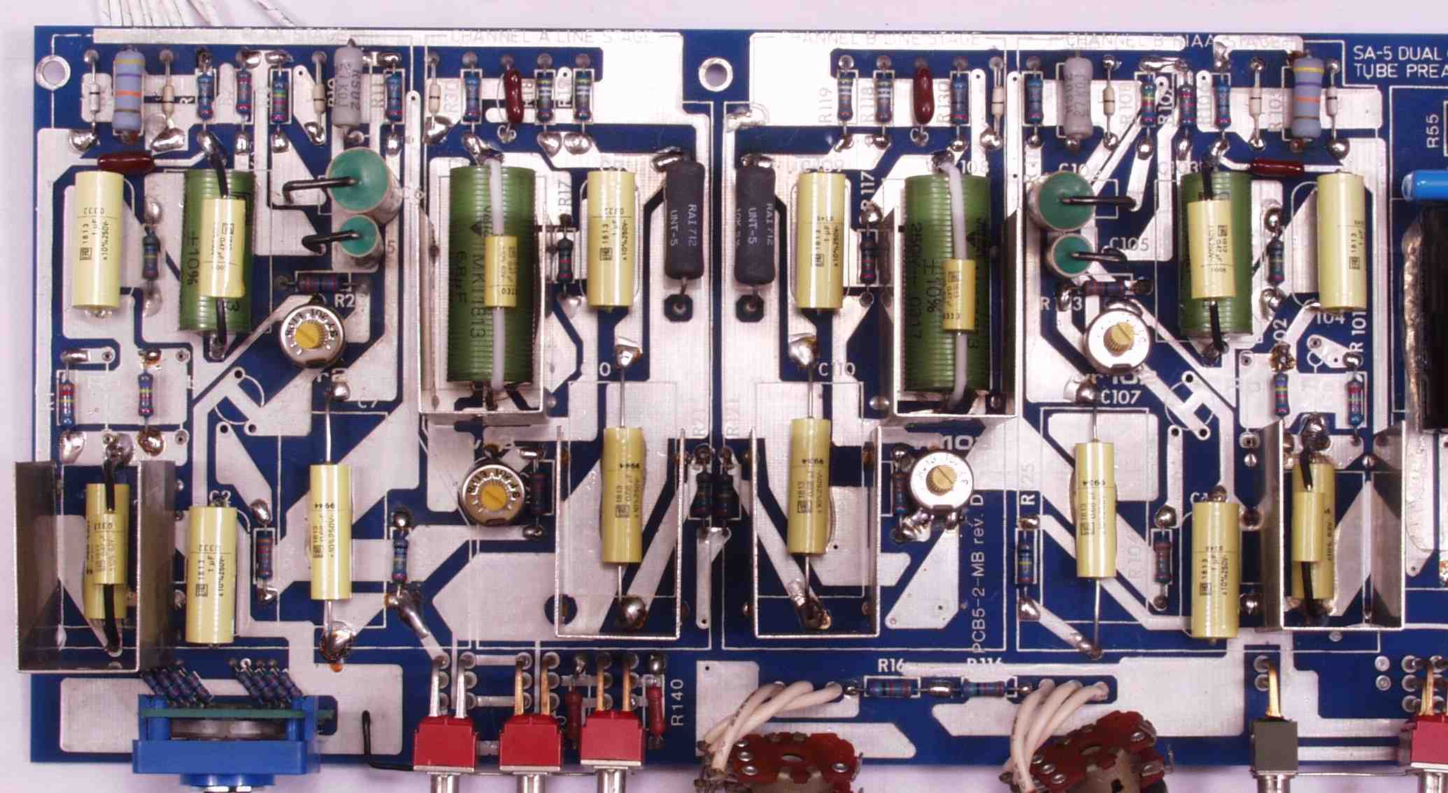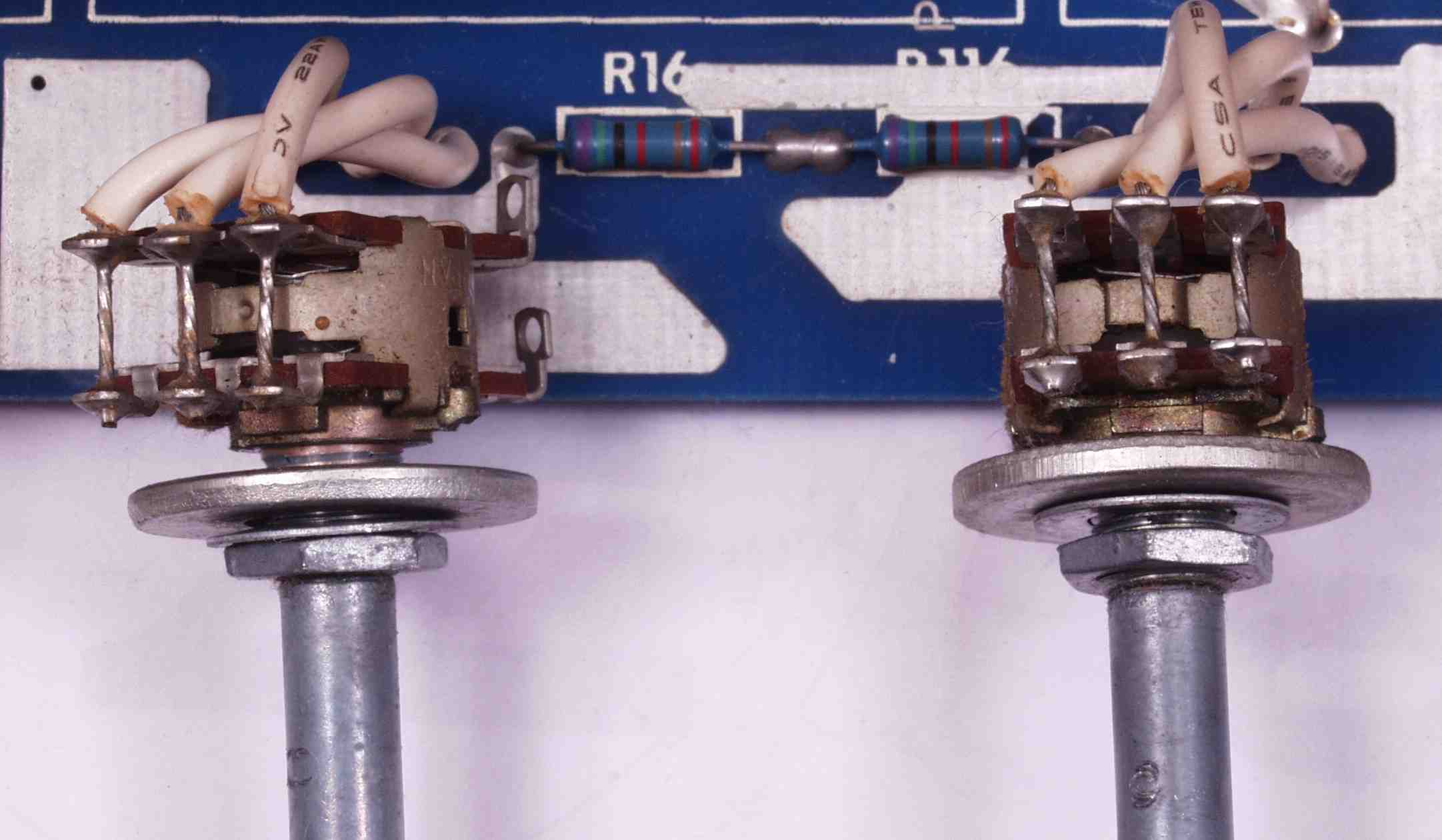 C12. 修理前 AMP基板 チャネルごとの入力VRは将来の「ガリ」に備えてWで使用