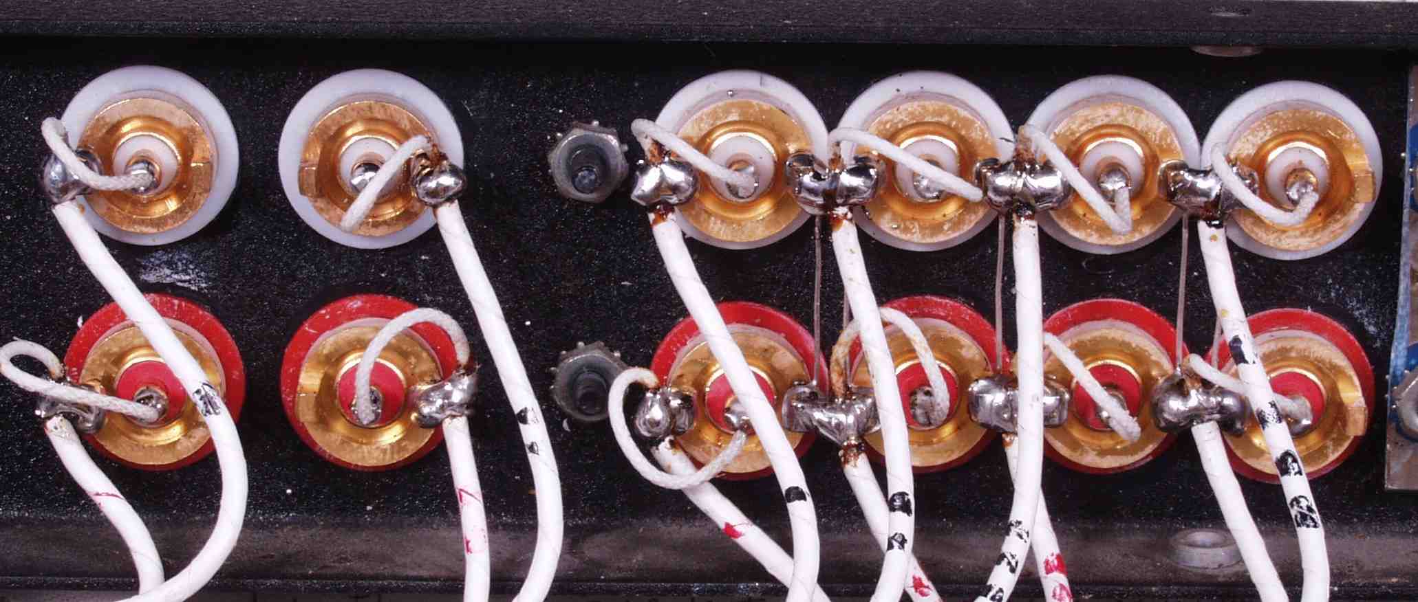 A32. 点検中 入力RCA端子、内側に基板を使用し、内ネジタイプ、アースは別個に取っている