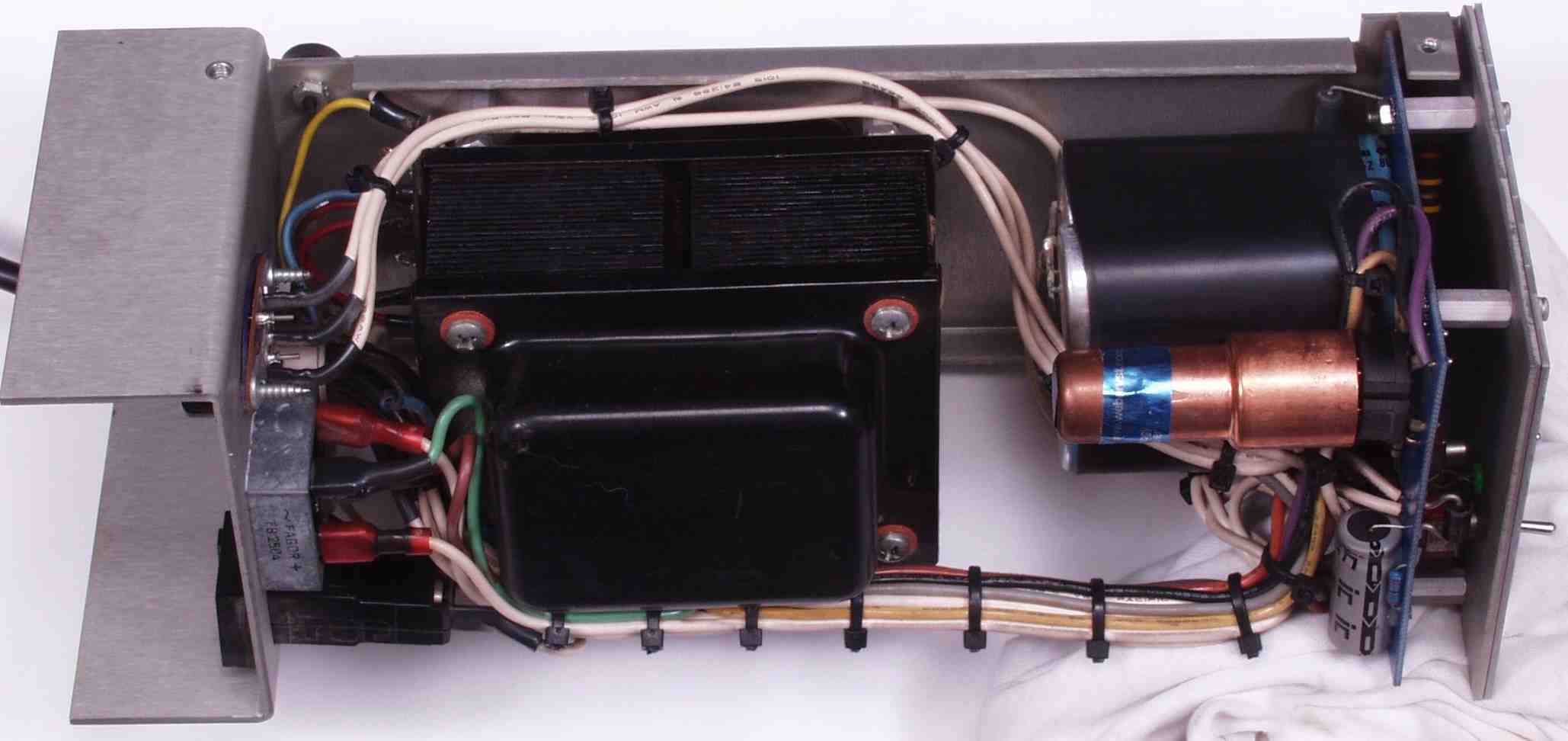A42. 点検中 電源部 右横から 銅外装整流管が光ります!