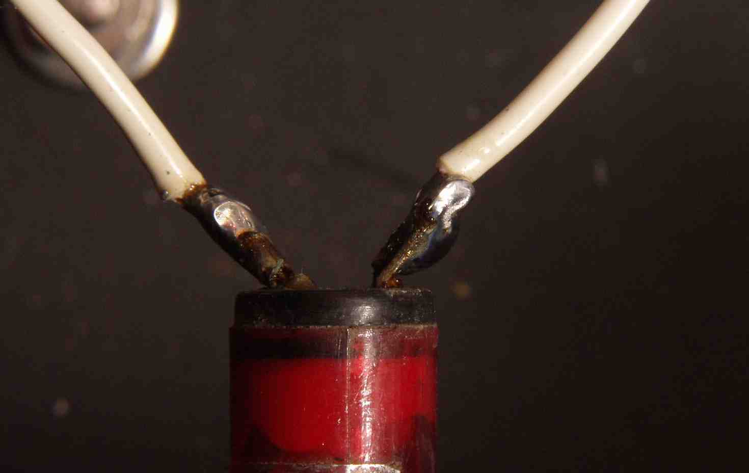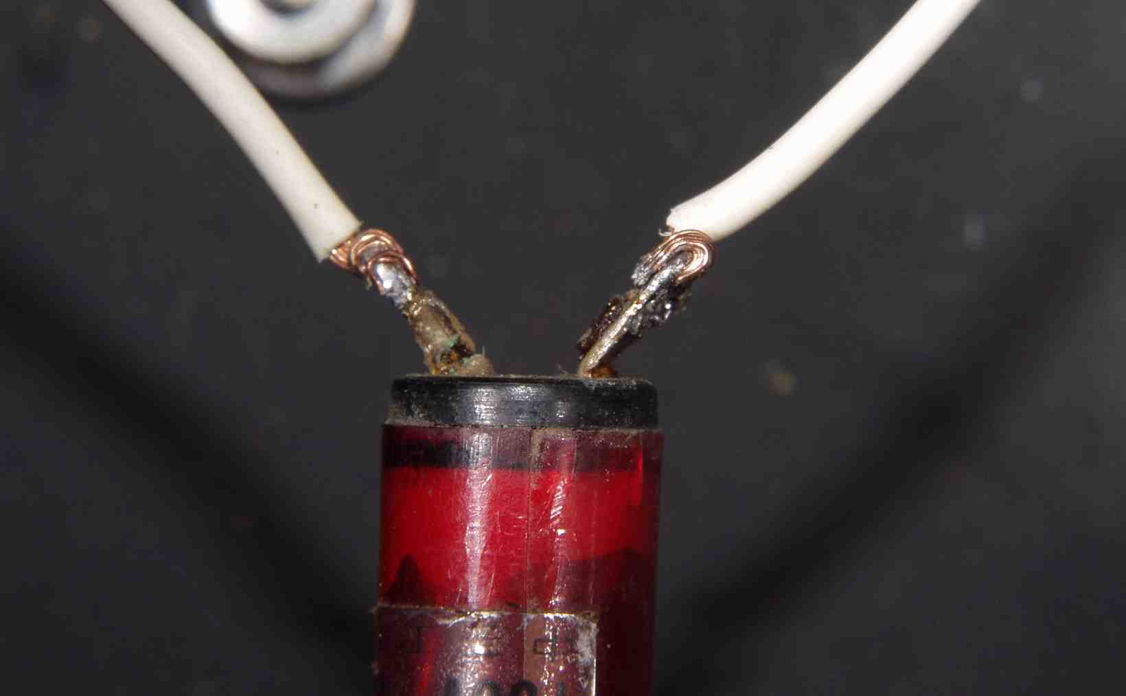 C−2B.修理中 表示ネオンへの配線 ハンダを浸み込ませる
