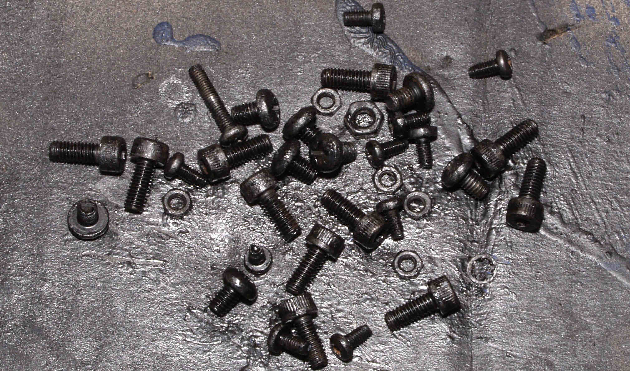 | C−8A. 止めネジに「サビ」が出ているので、艶消しラッカー塗料を軽く吹き付ける |