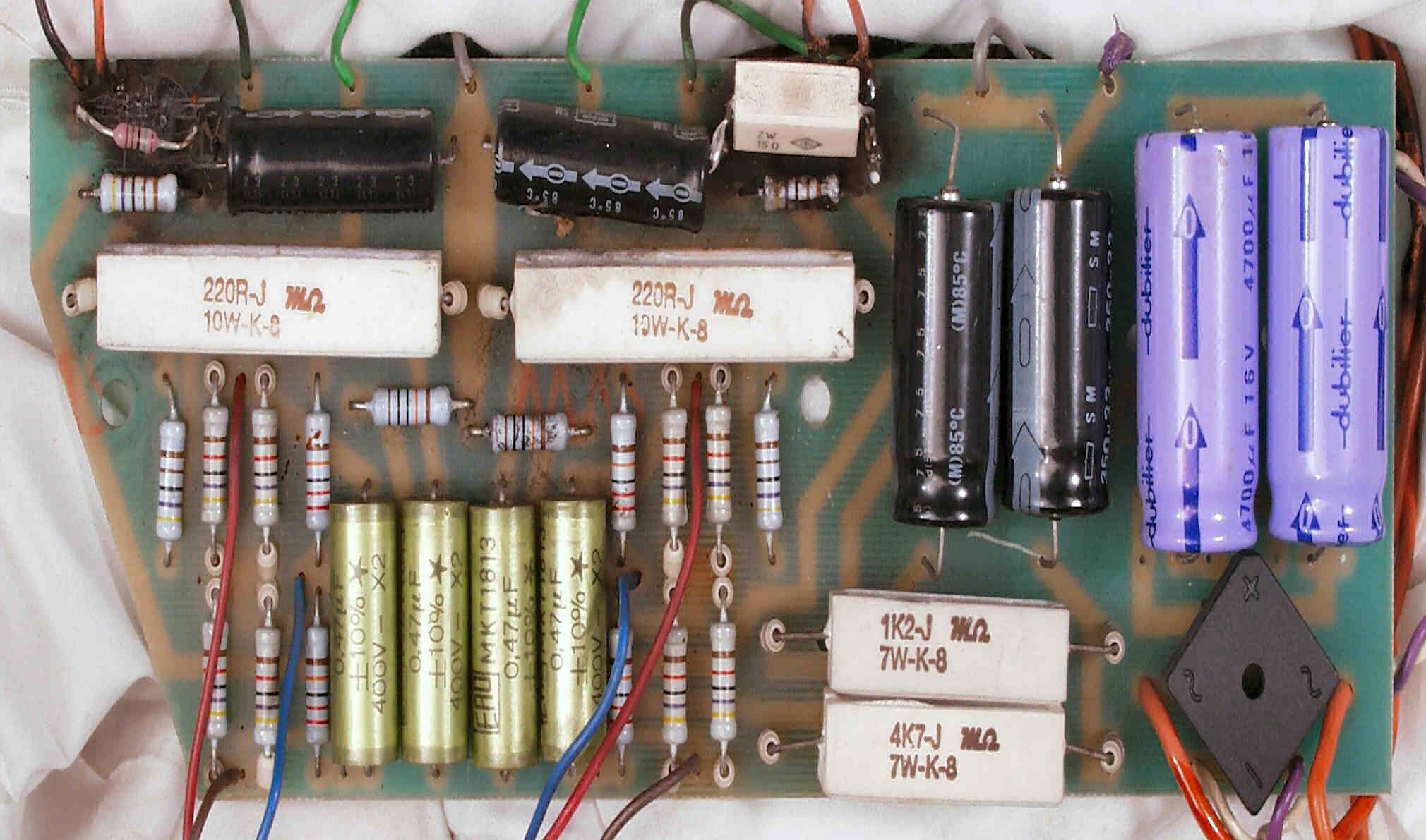 | C. 修理状況 C−1A. 修理前 ヒーター整流・メインAMP基板 |