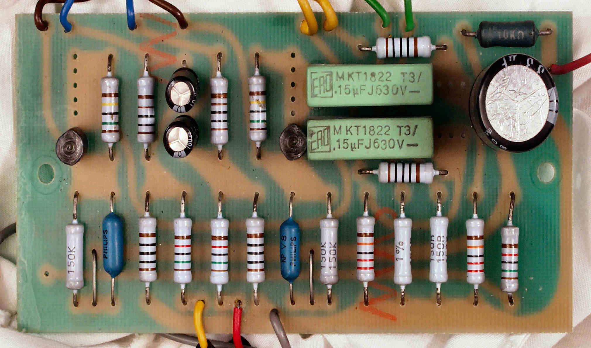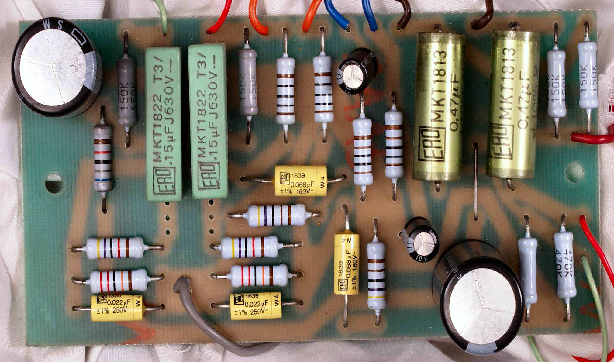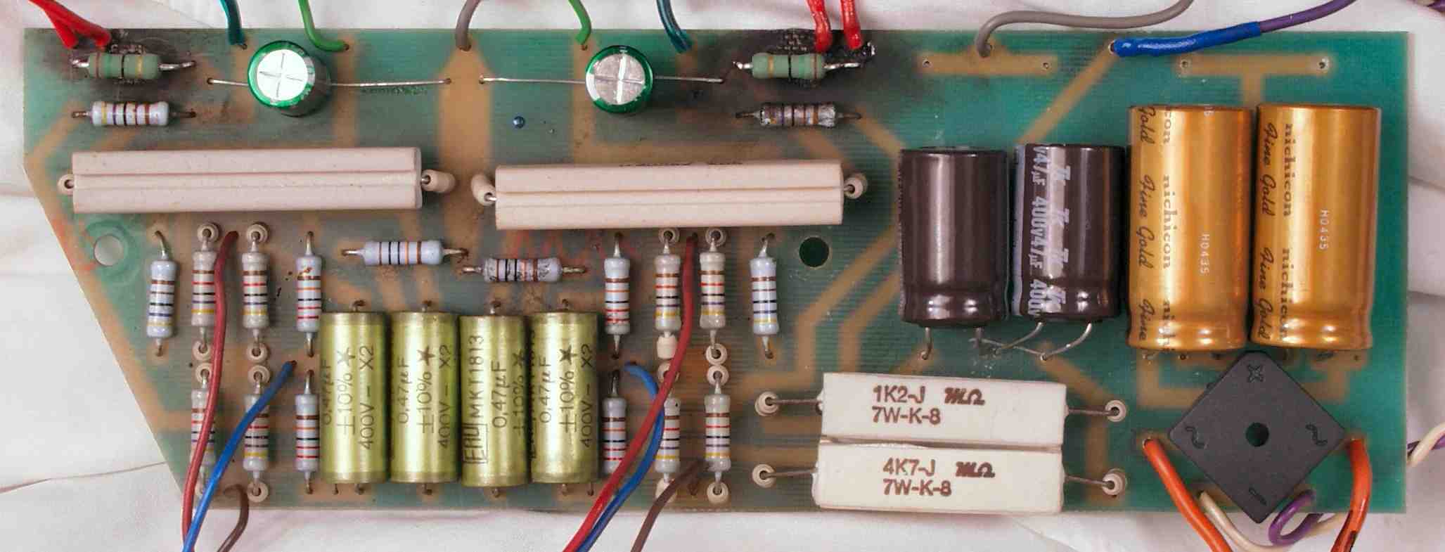 | C−1B. 修理後 ヒーター整流・メインAMP 抵抗4個、電解コンデンサー6個交換 |