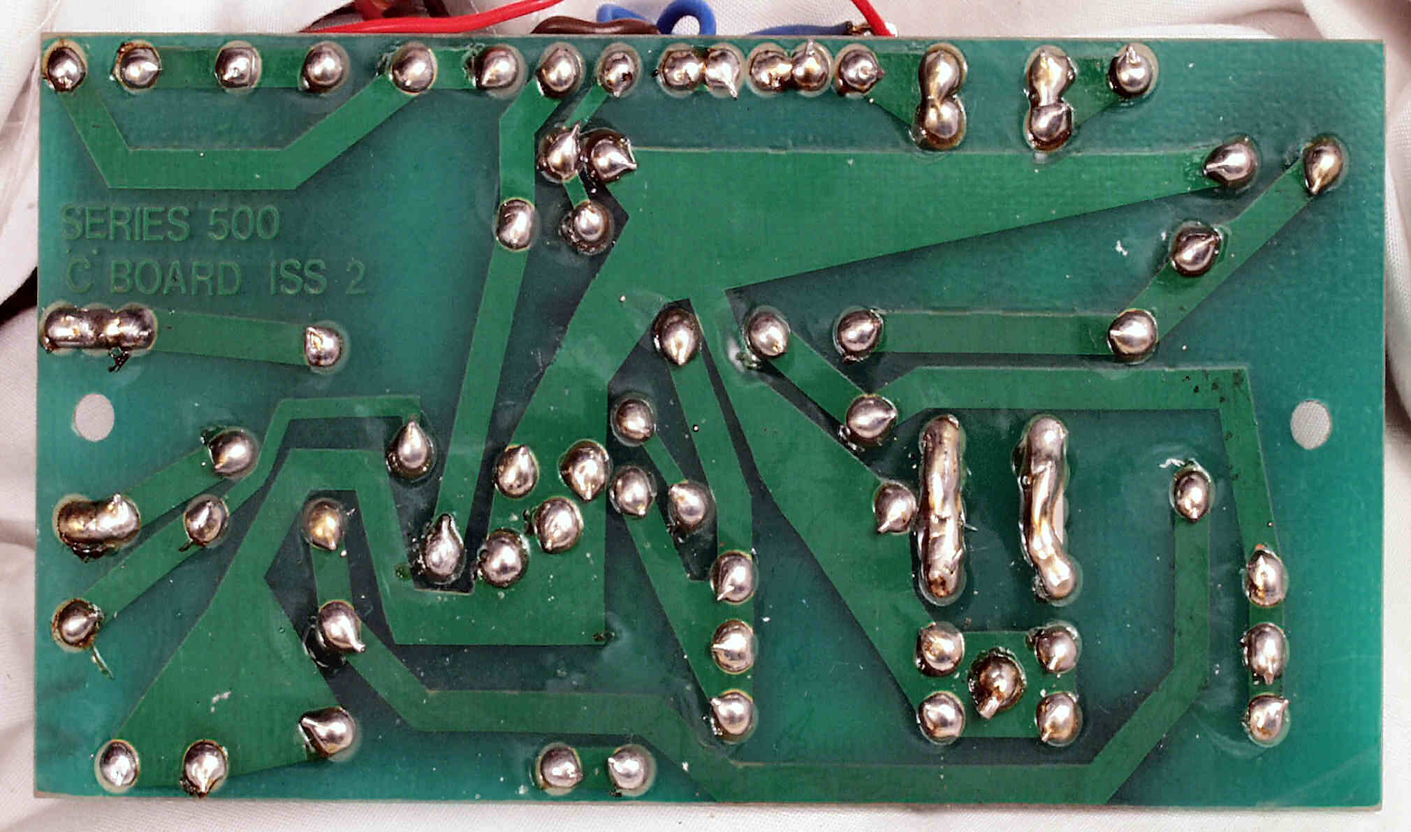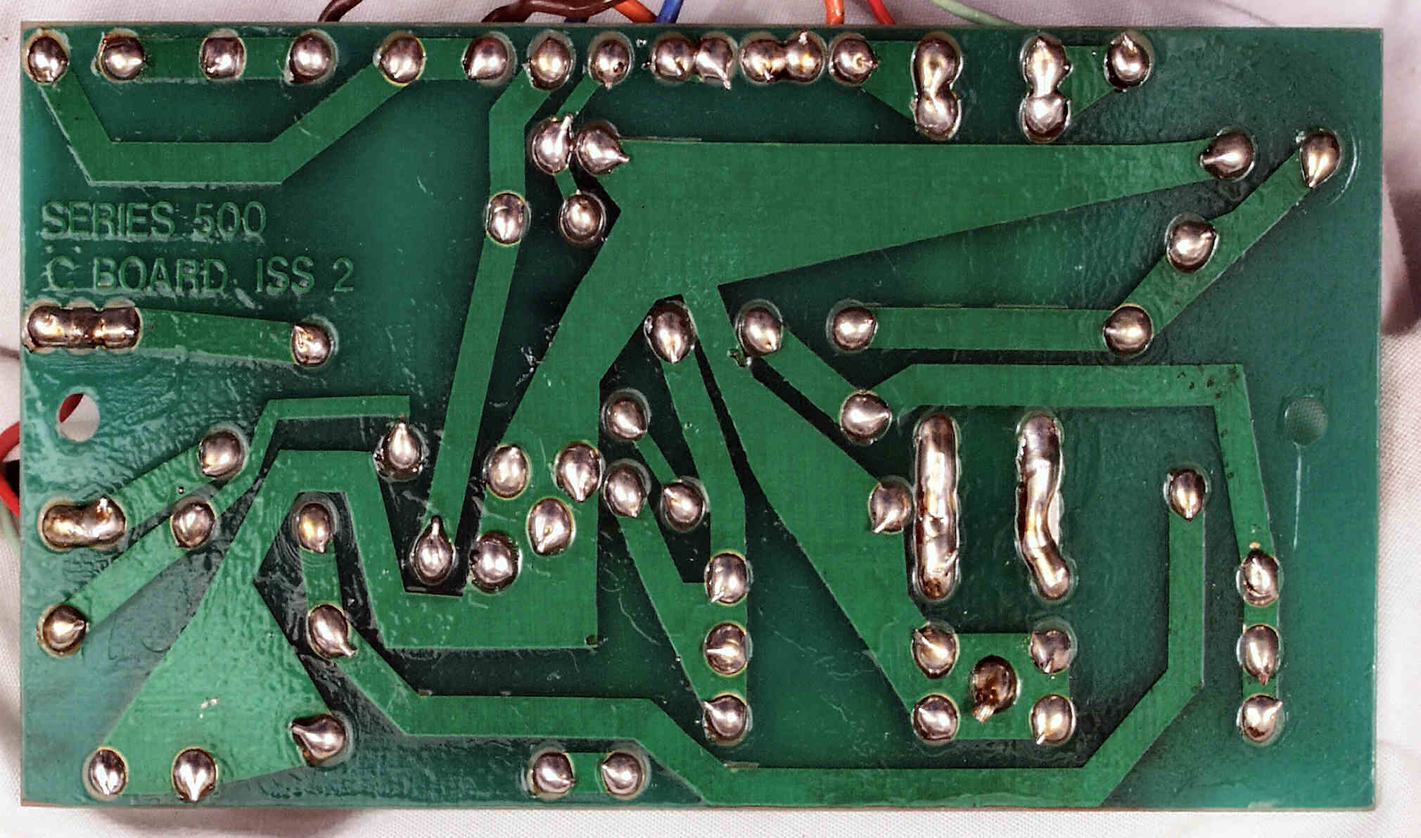 | C−1C. 修理前 ヒーター整流・メインAMP基板裏 |
