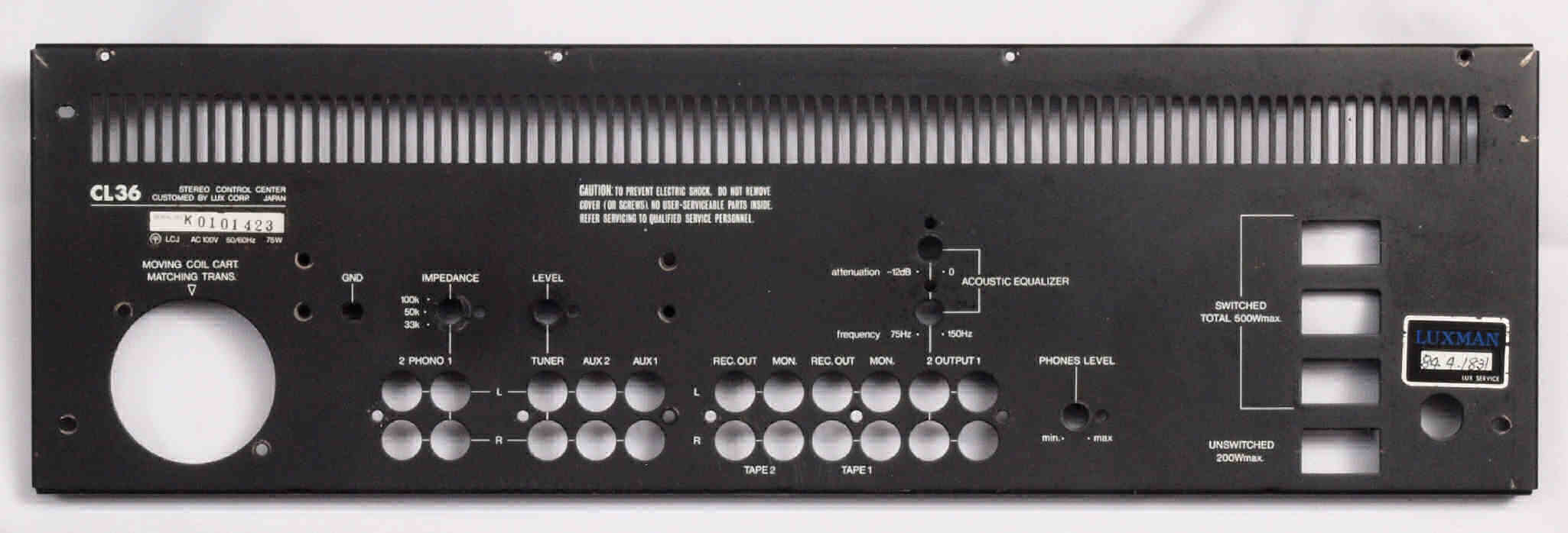 K. 上下裏パネル修理(塗装)。 L. 修理完成後の外観 S. LUXMAN CL−36 の仕様(マニアル・カタログより) |