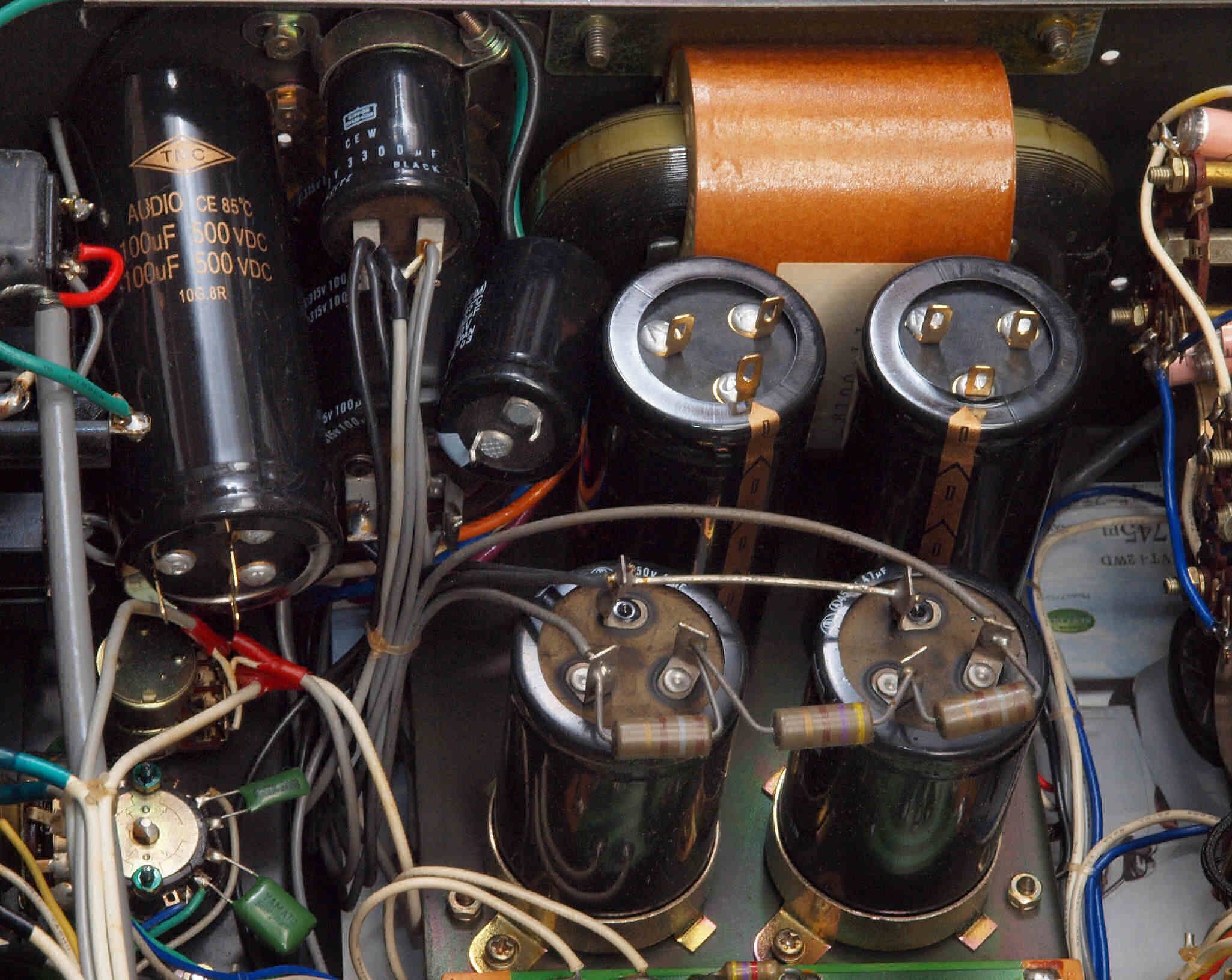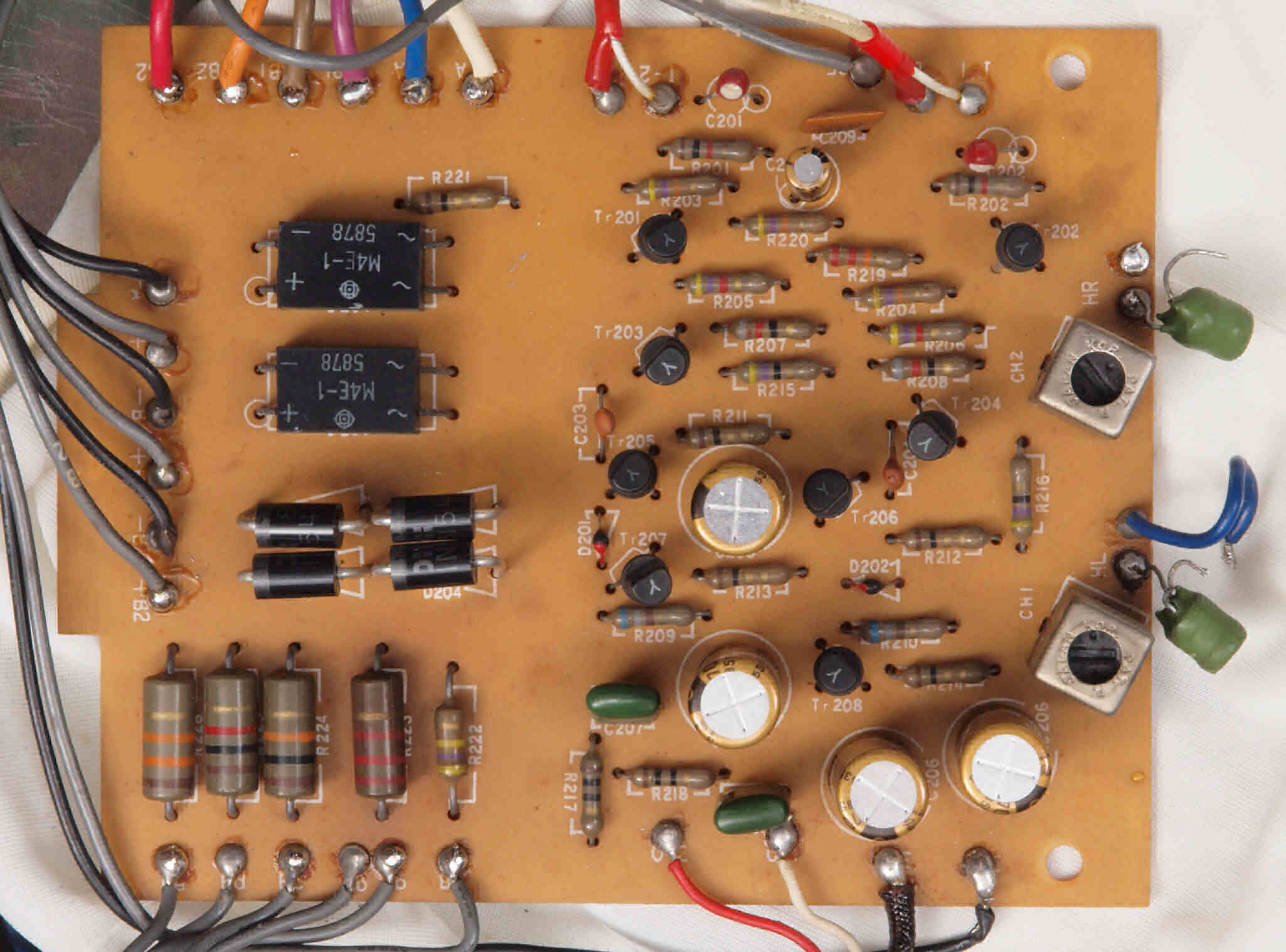C32. 修理後 整流・ヘッドホンAMP基板 電解コンデンサー5個、整流ダイオード4個交換