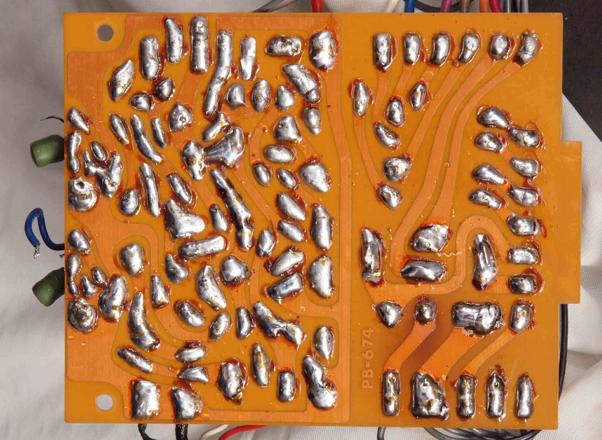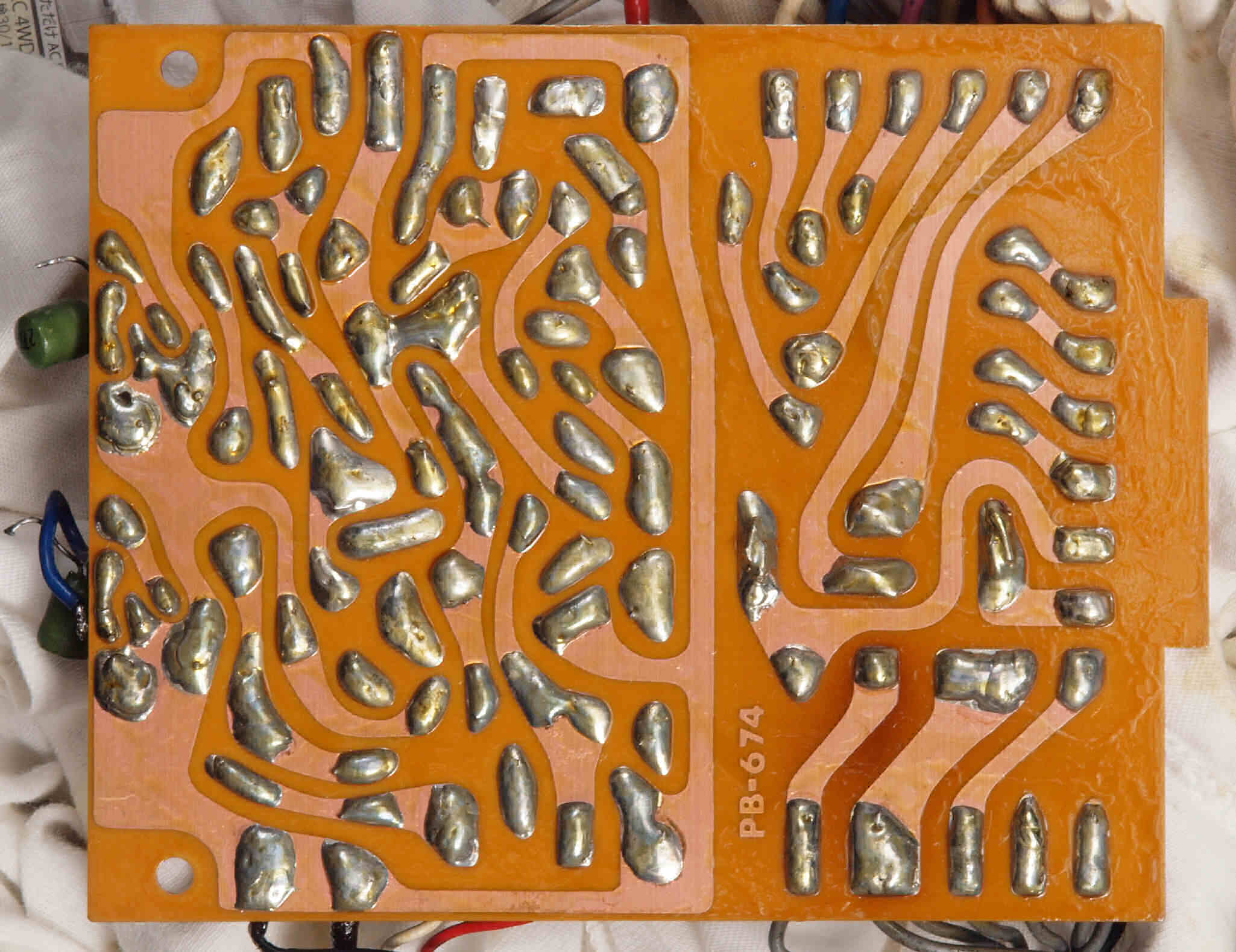 C34. 修理(半田補正後)後 整流・ヘッドホンAMP基板裏