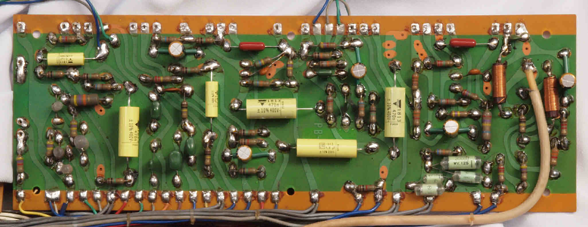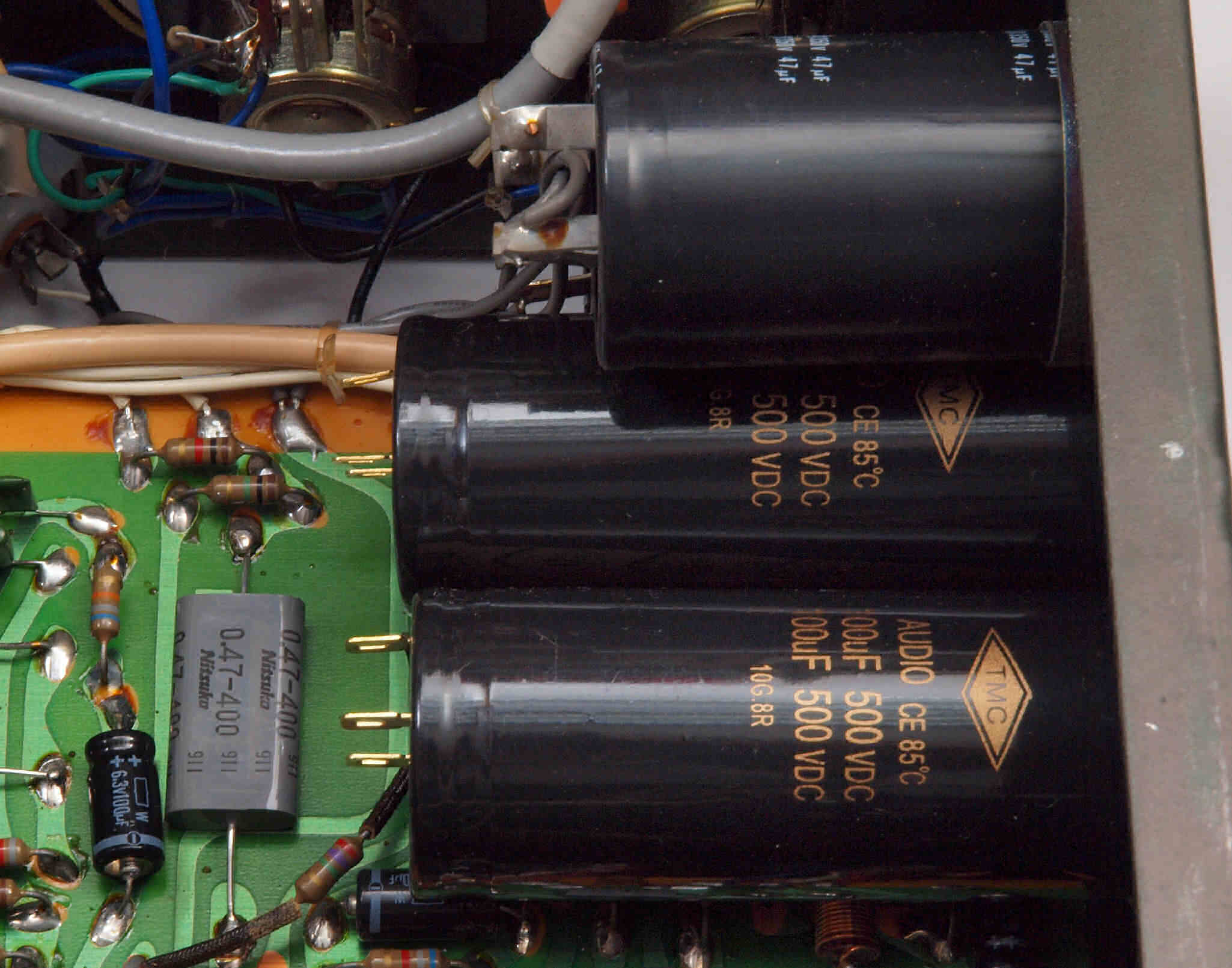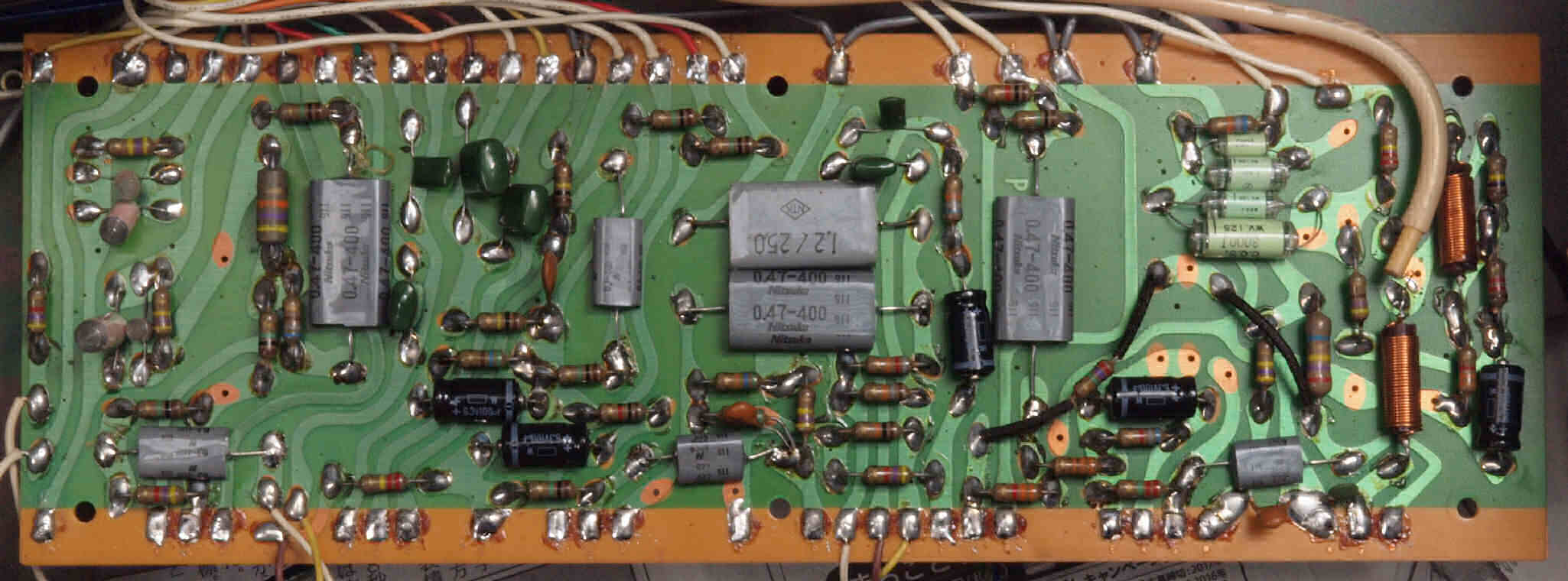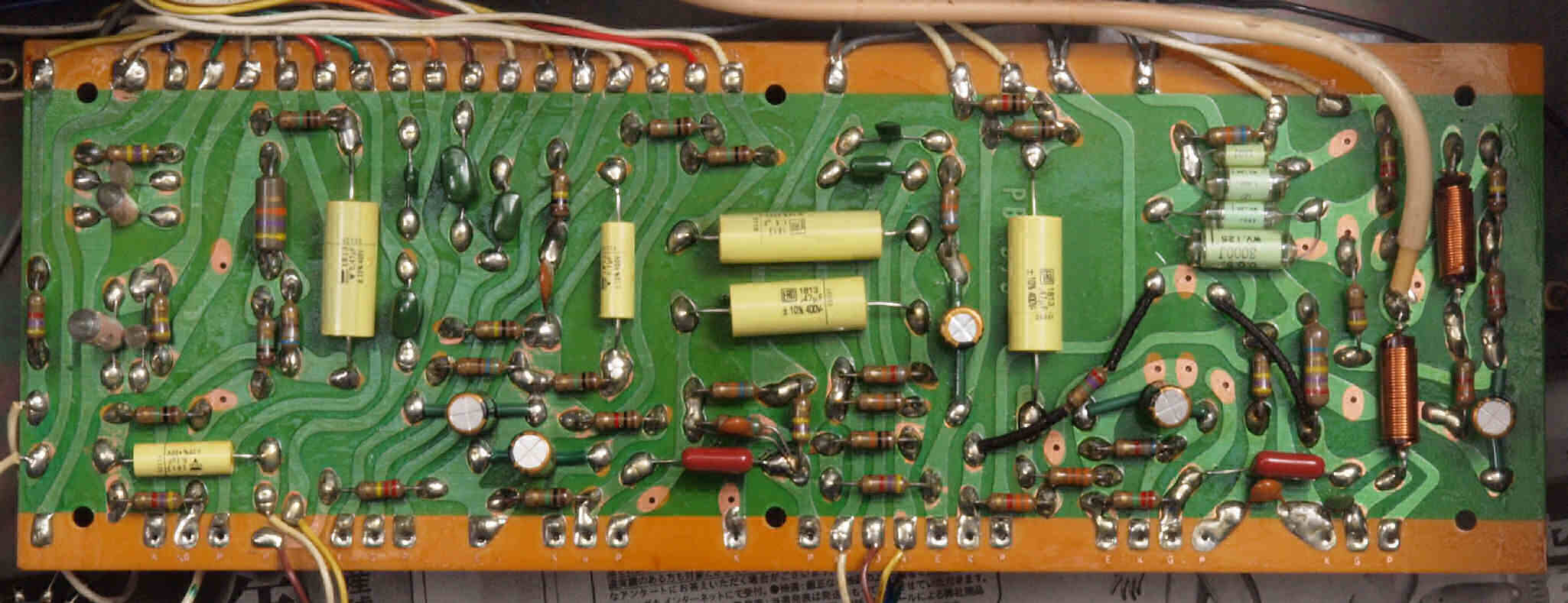 C22. 修理後 L側AMP基板 電解コンデンサー5個、フイルムコンデンサー8個交換