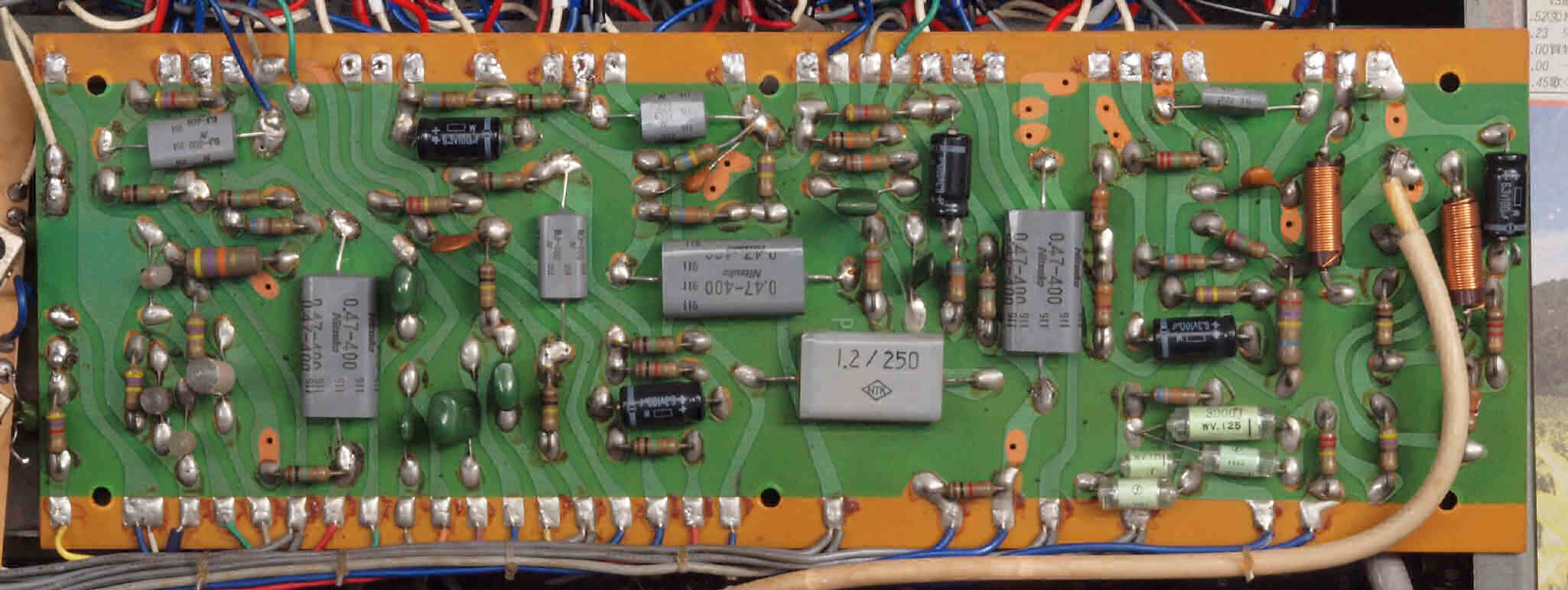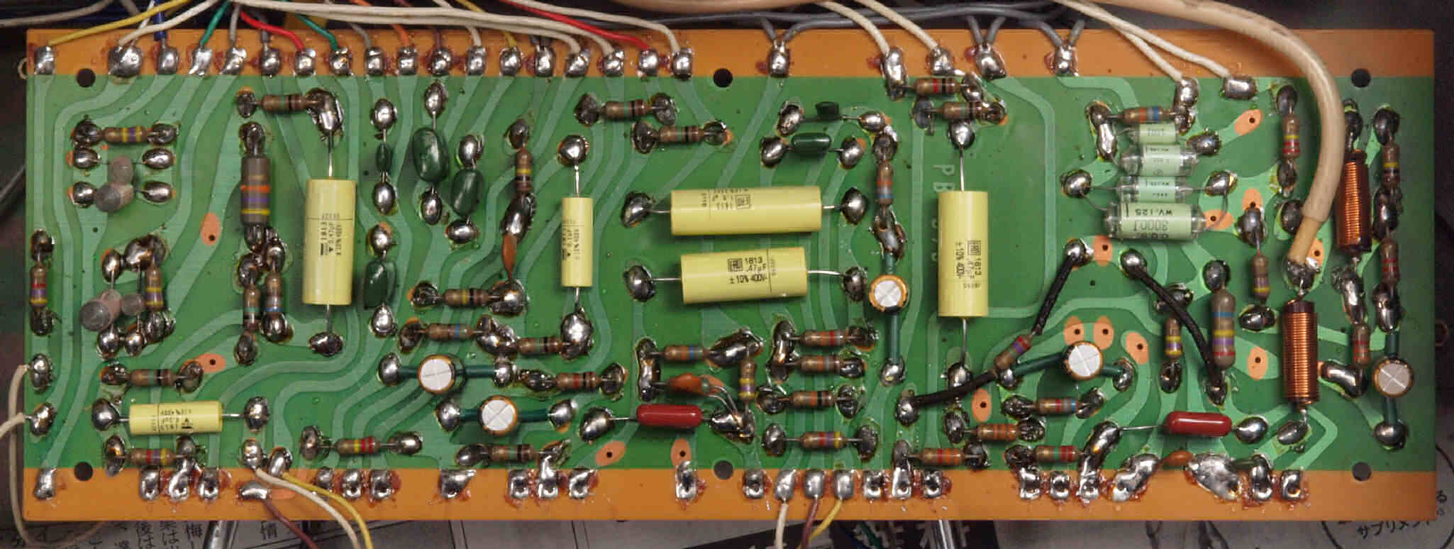 C12. 修理後 R側AMP基板 電解コンデンサー5個、フイルムコンデンサー8個交換