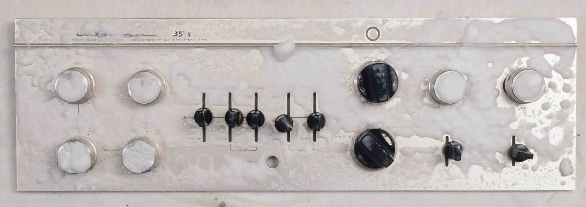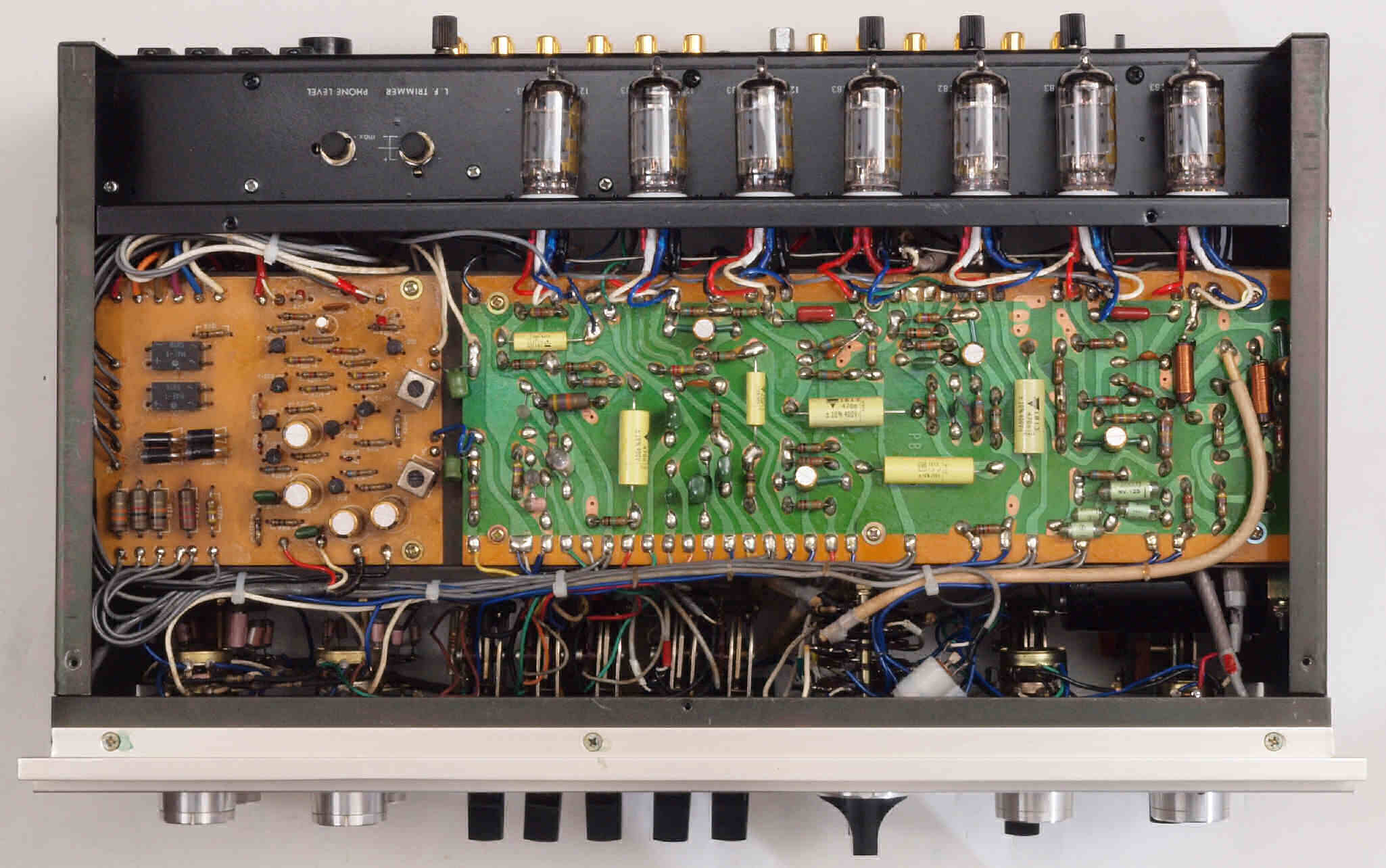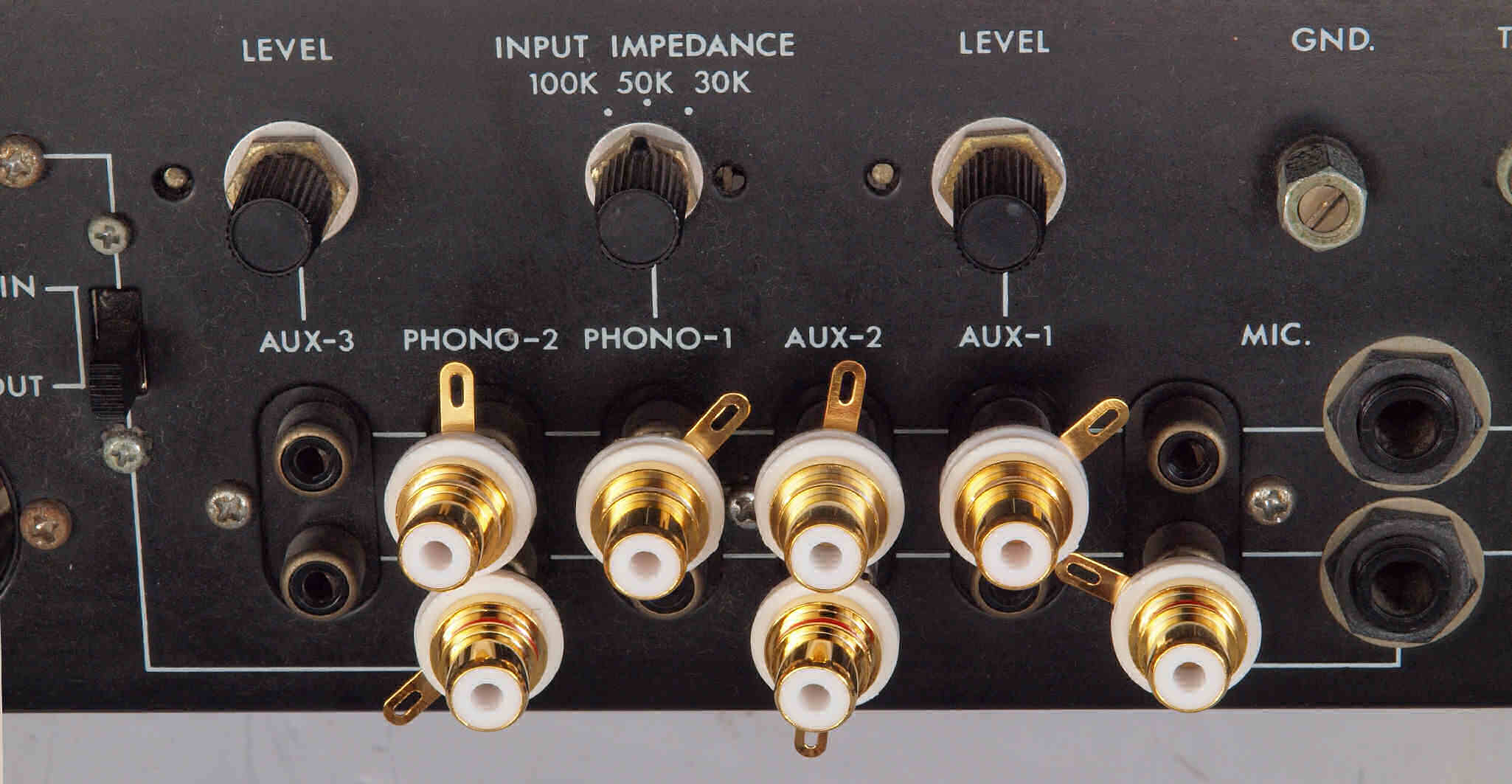 A32. 点検中 入力RCA端子郡、 テフロン絶縁RCA端子に交換可能。 但し、全交換のみ。