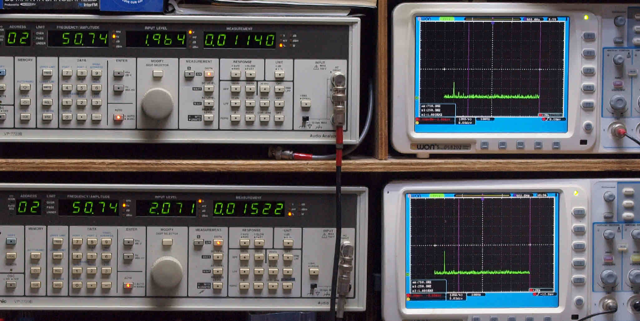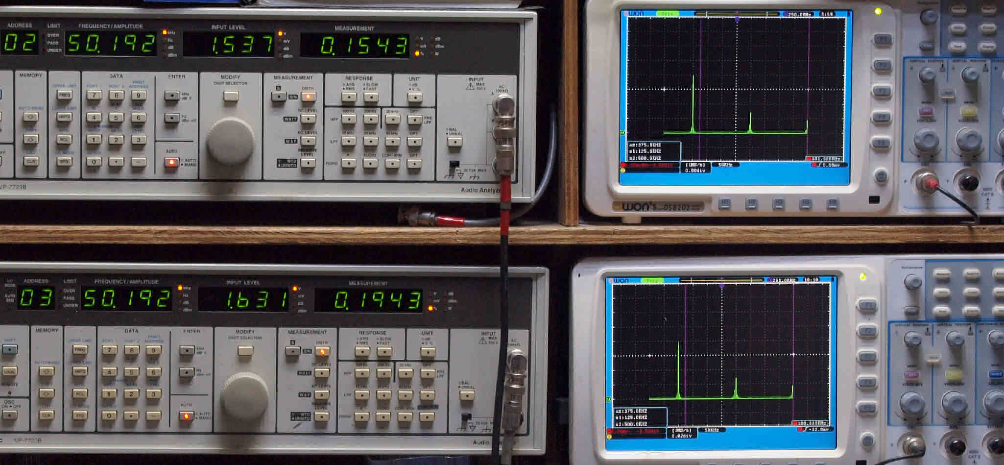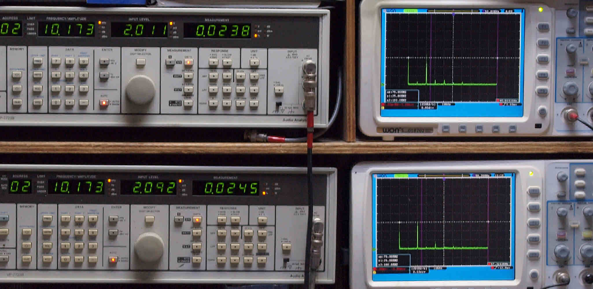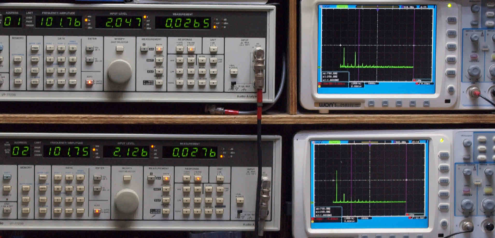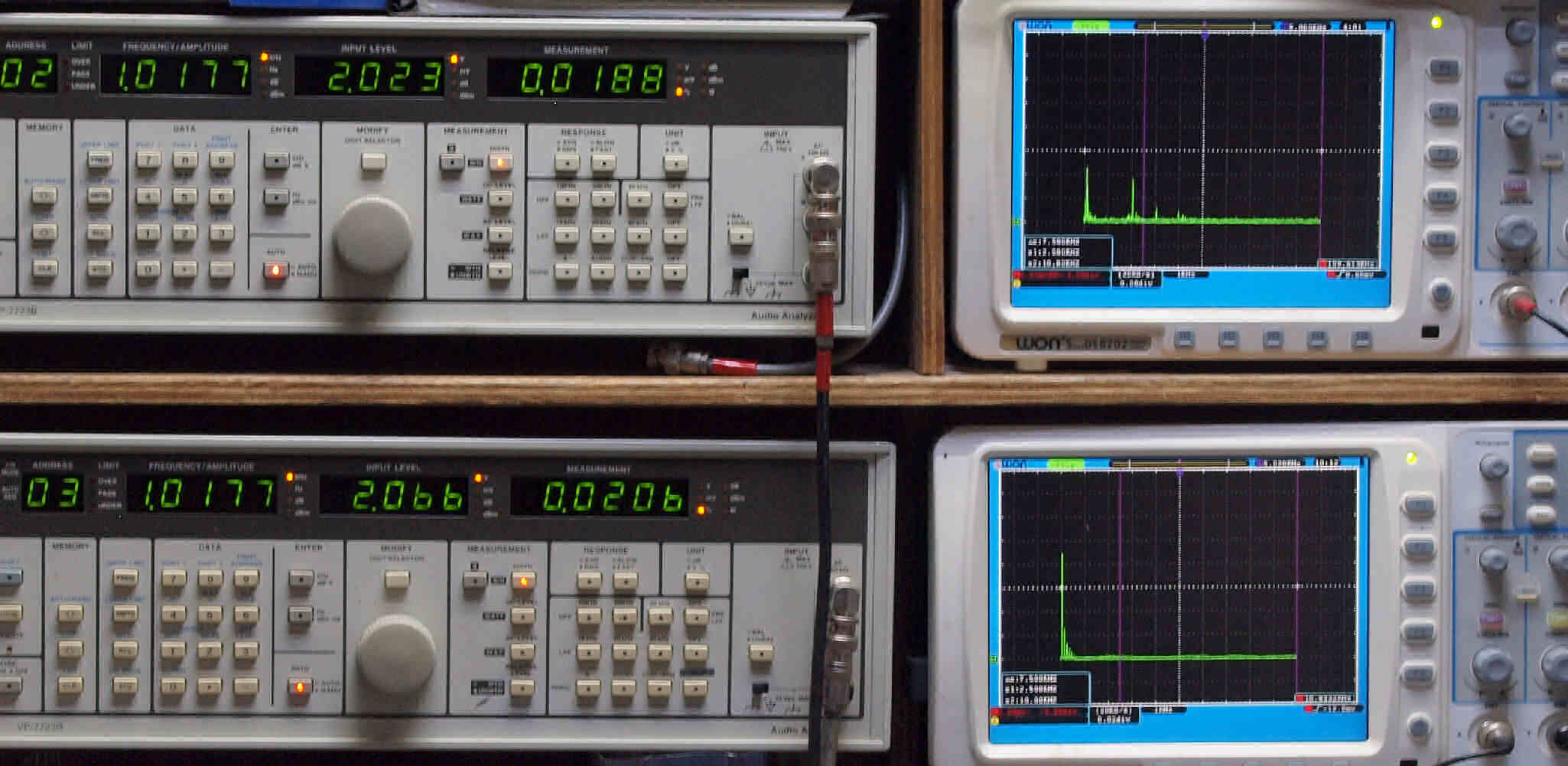 よって、ダイアル設定出力レベルより低くなります。測定機器の仕様や整備の様子はこちら、「VP−7723B」「VP−7201A」。 FFT画面の見方はこちら。
