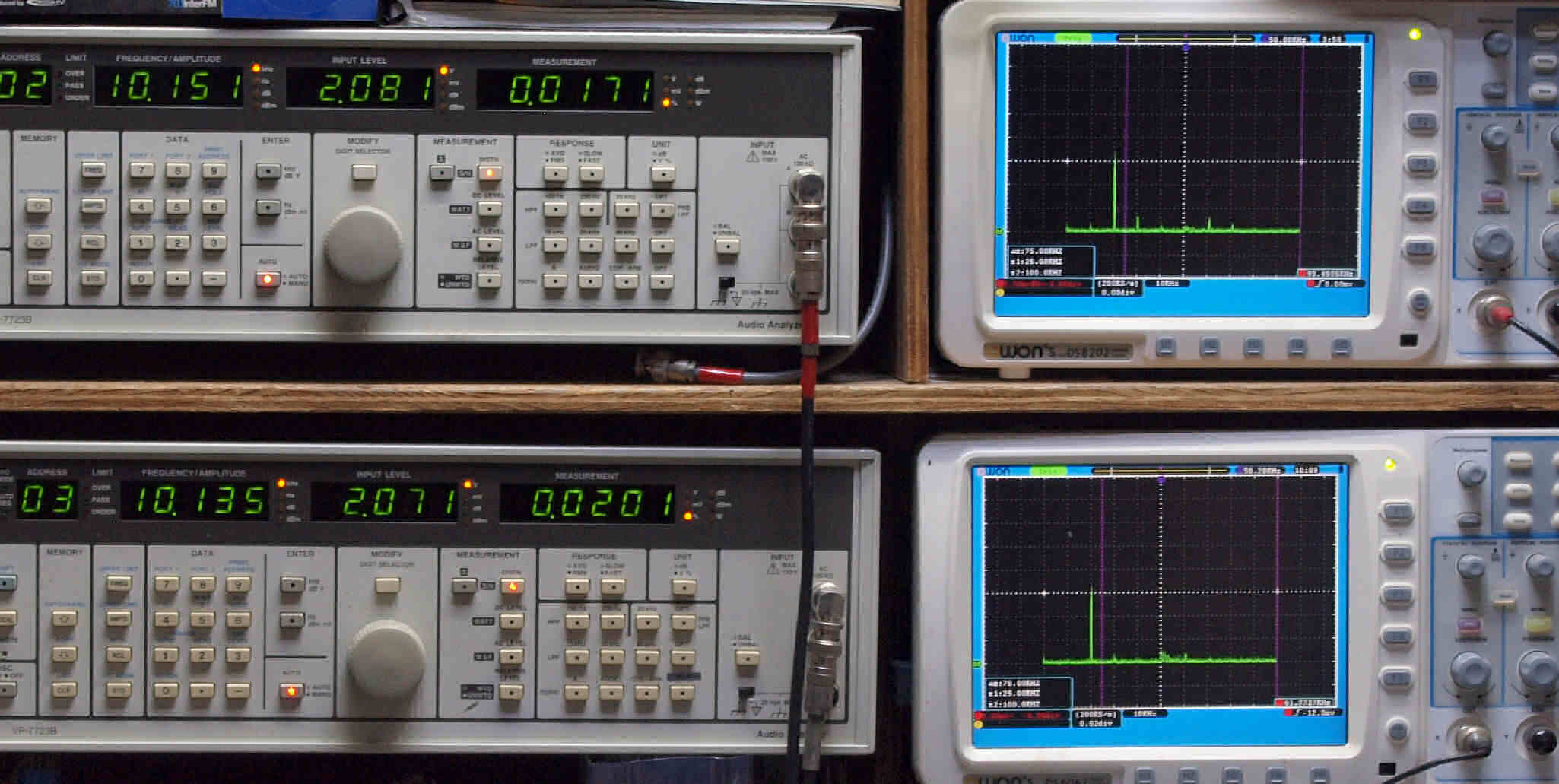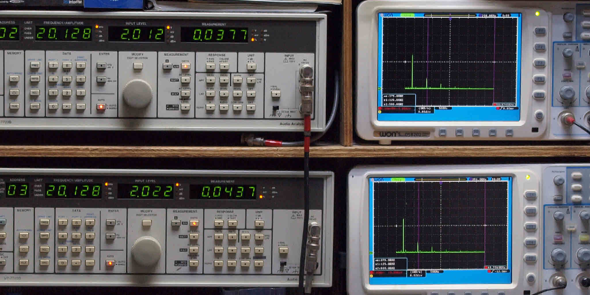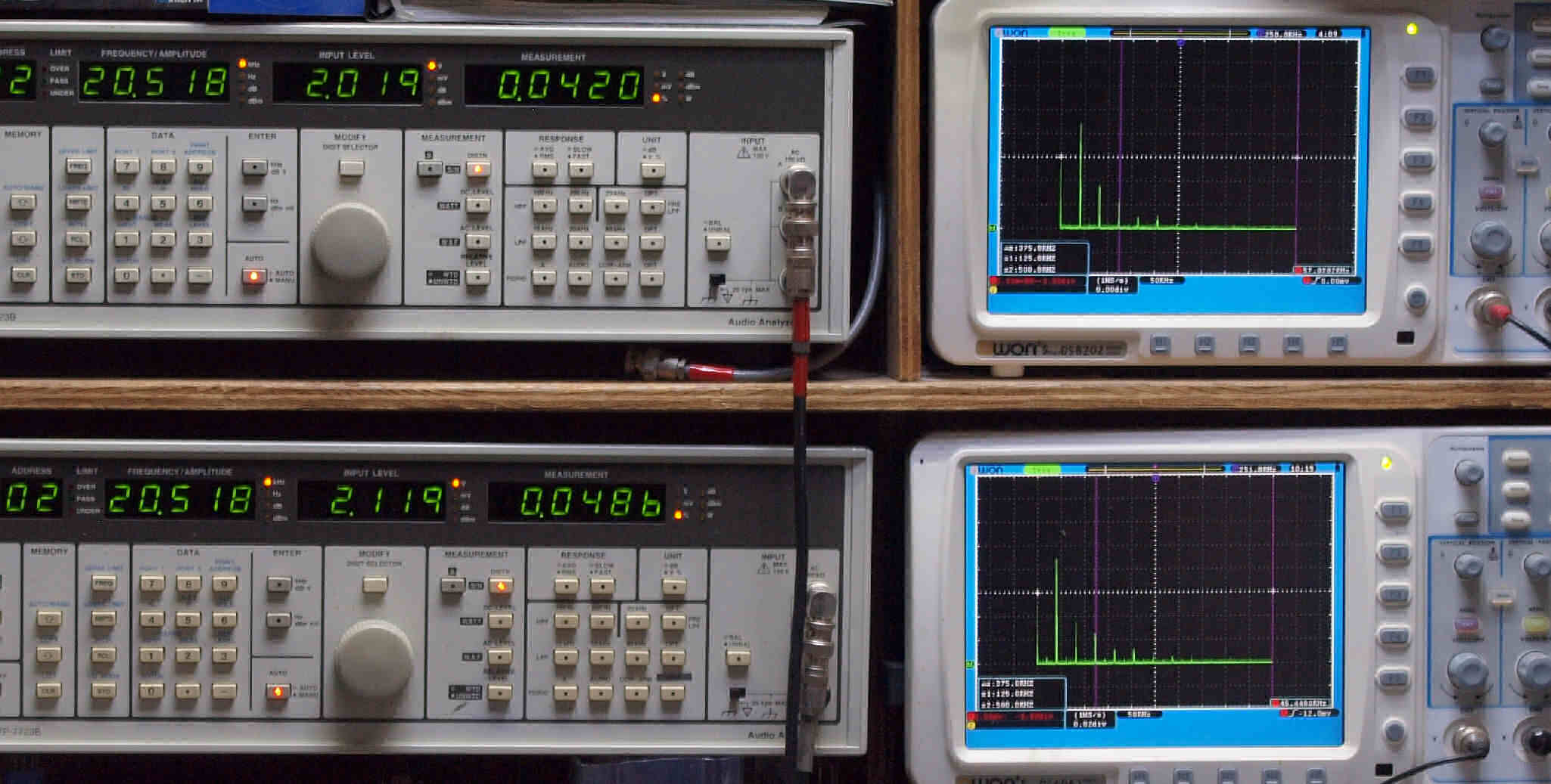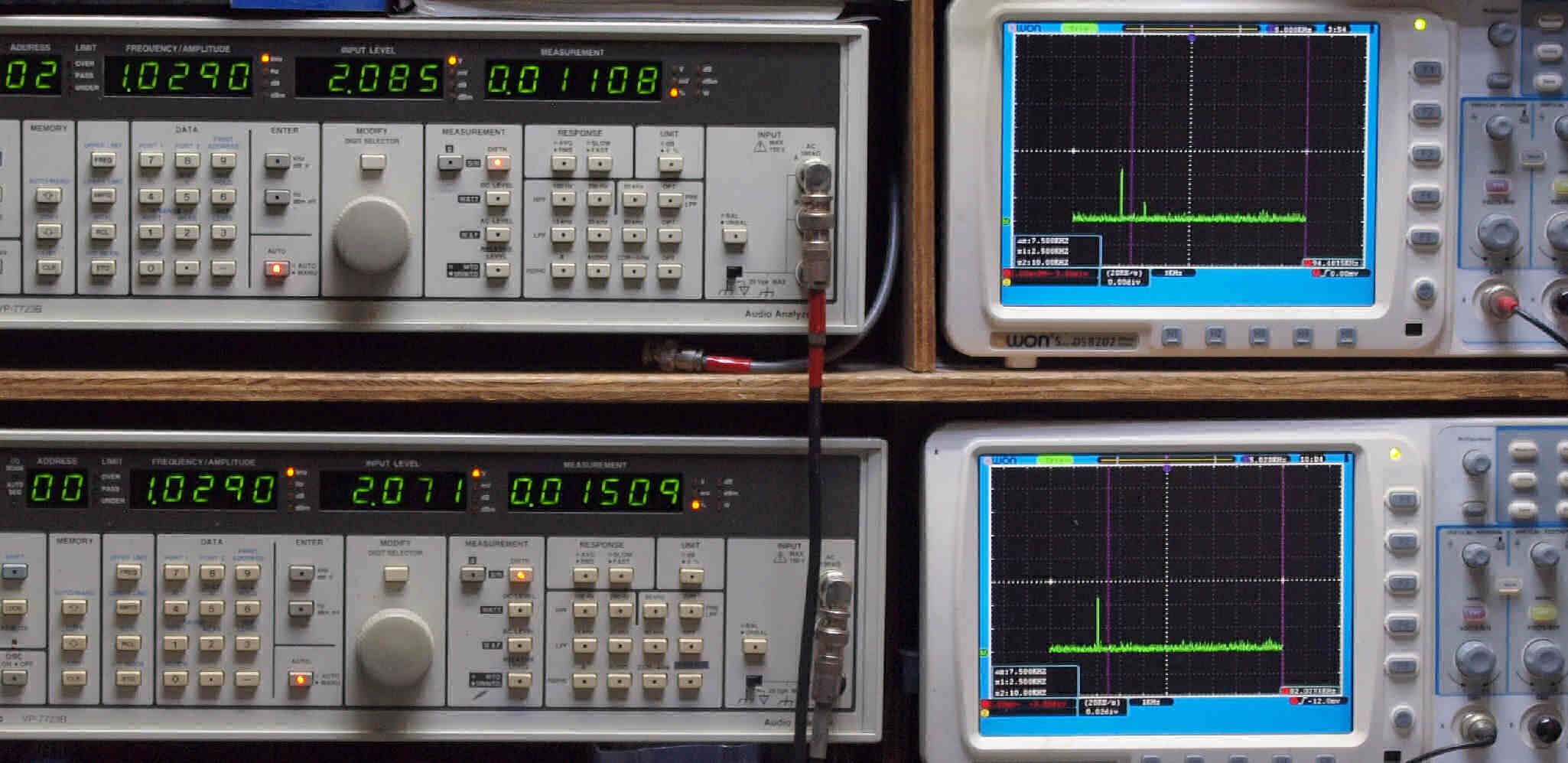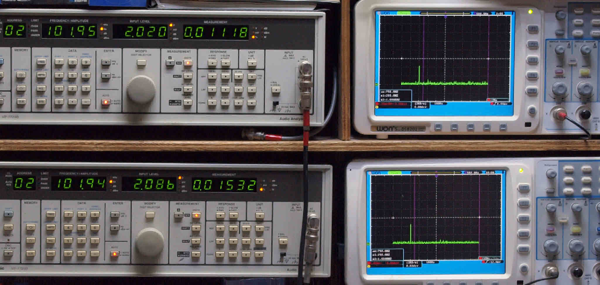 よって、ダイアル設定出力レベルより低くなります。測定機器の仕様や整備の様子はこちら、「VP−7723B」「VP−7201A」。 FFT画面の見方はこちら。
