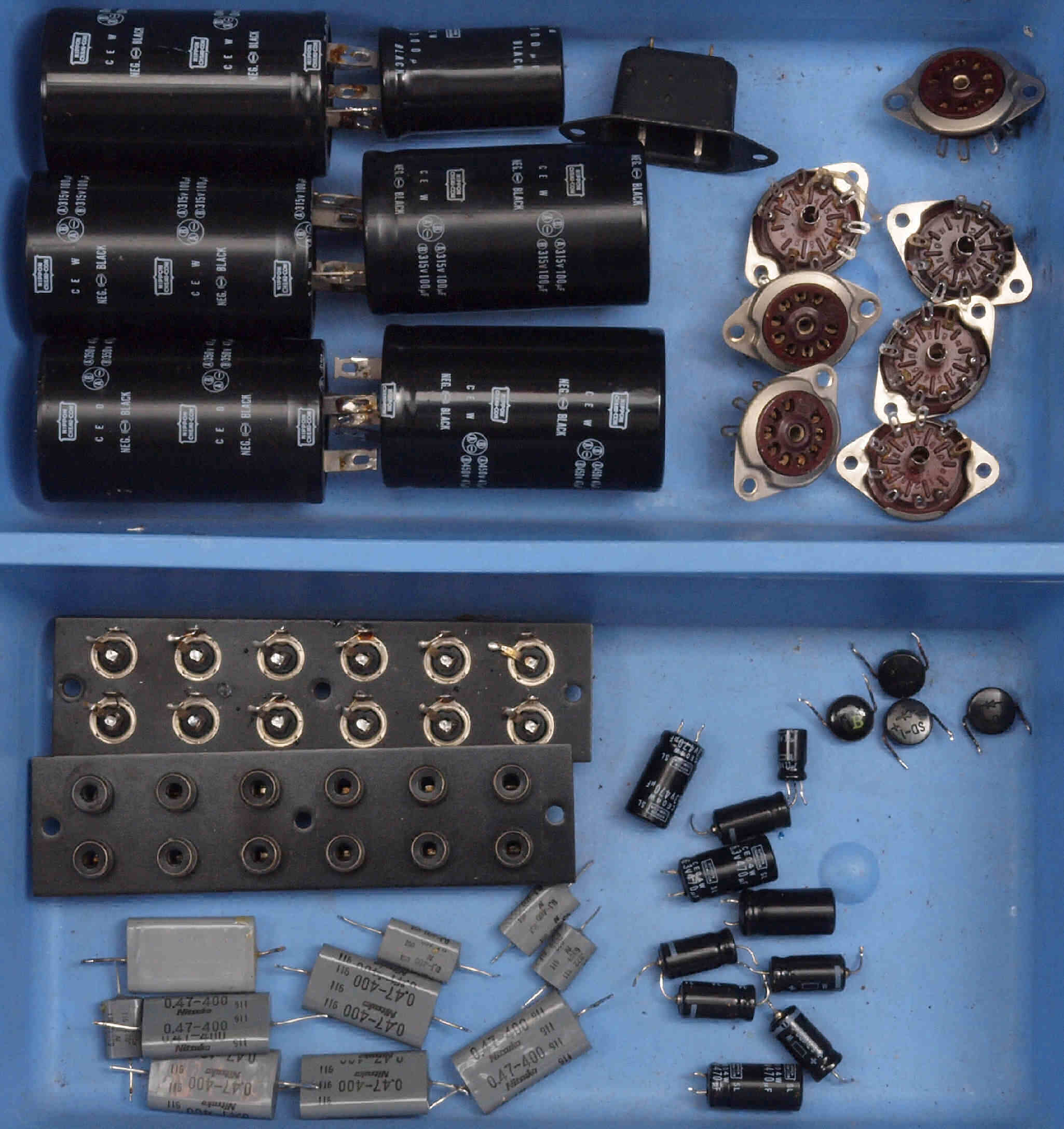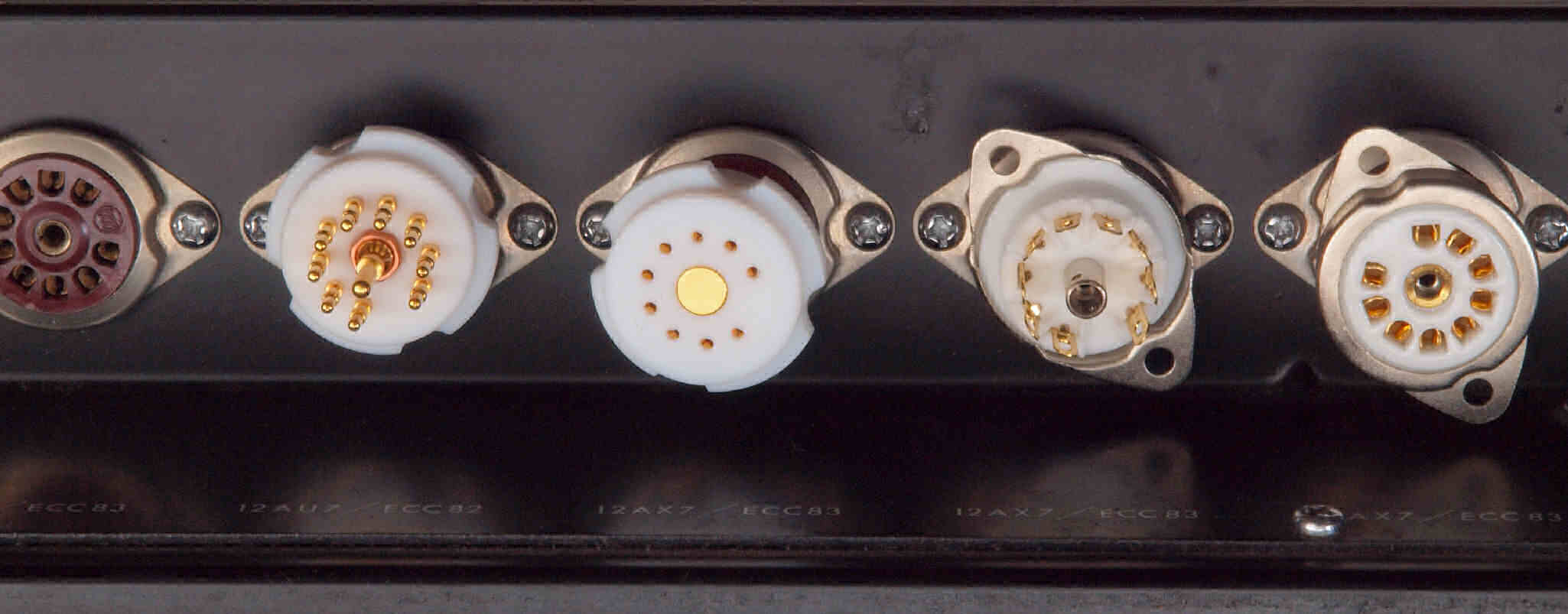 A62. 点検中 真空管ソケット、左=テフロン製、右=タイト製を選択して交換可能。