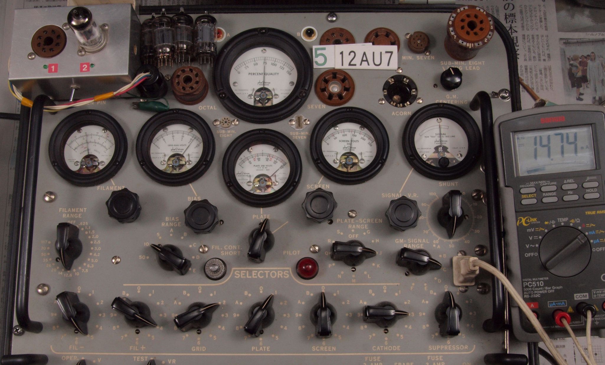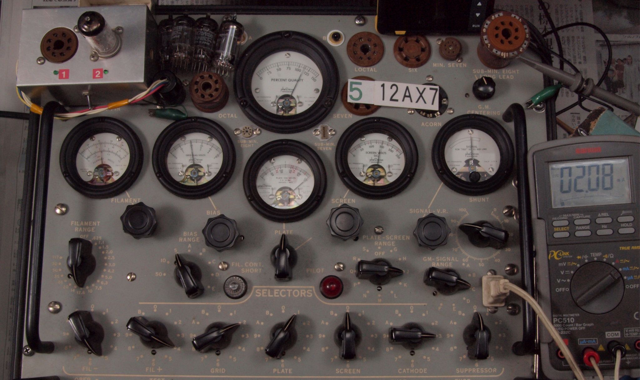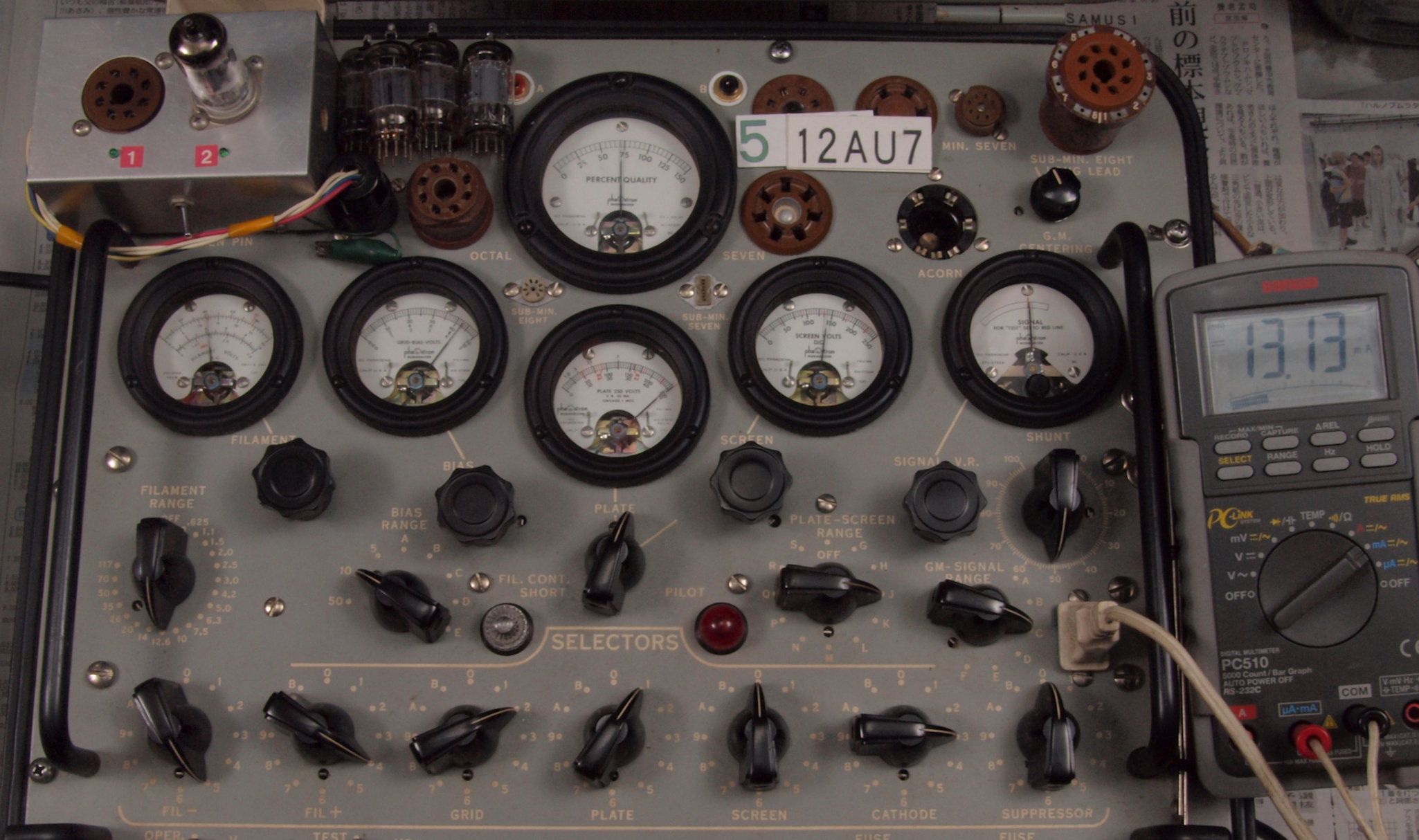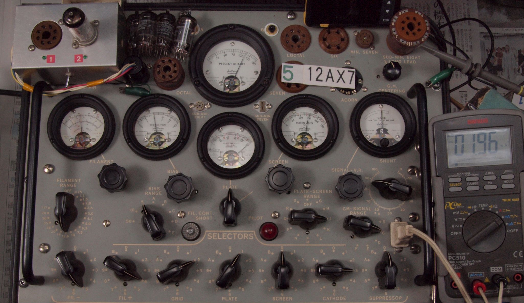 U. TubeTester HickokTV−2B/Uによる付属真空管測定。