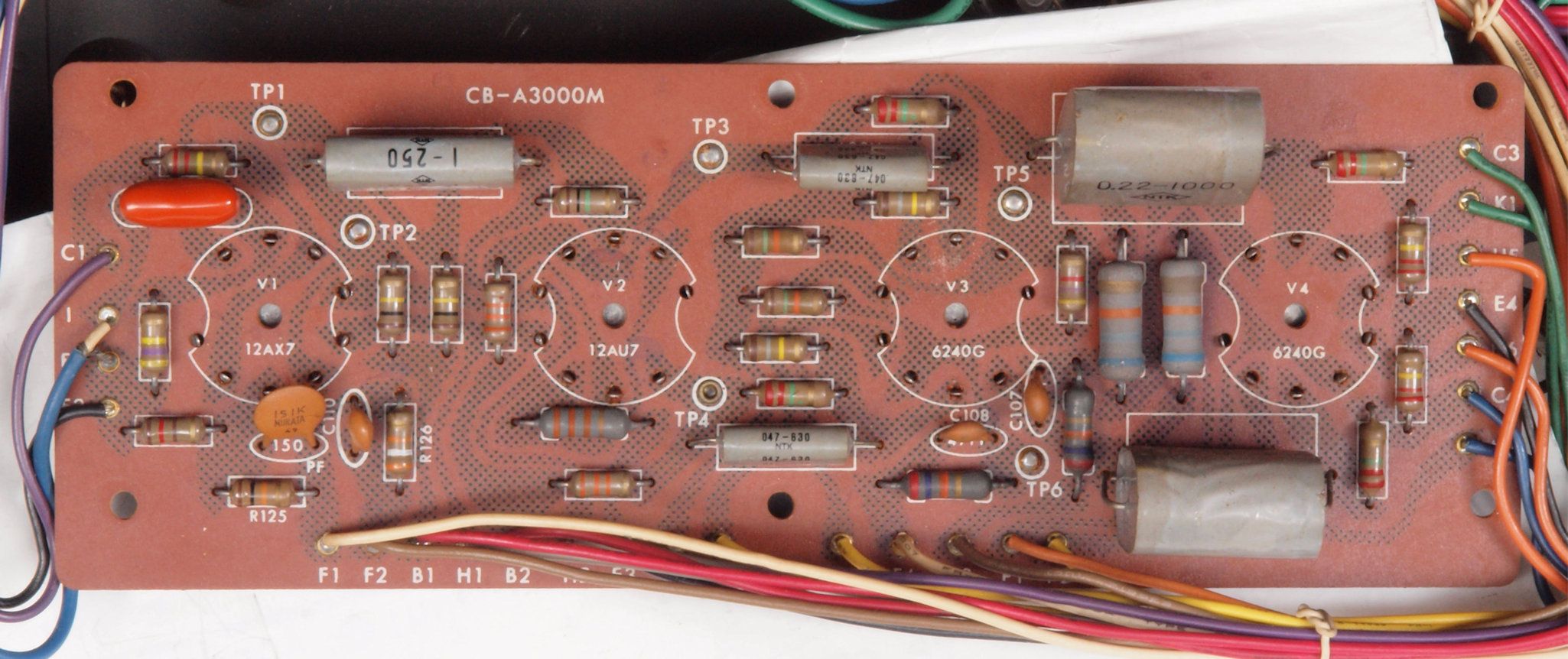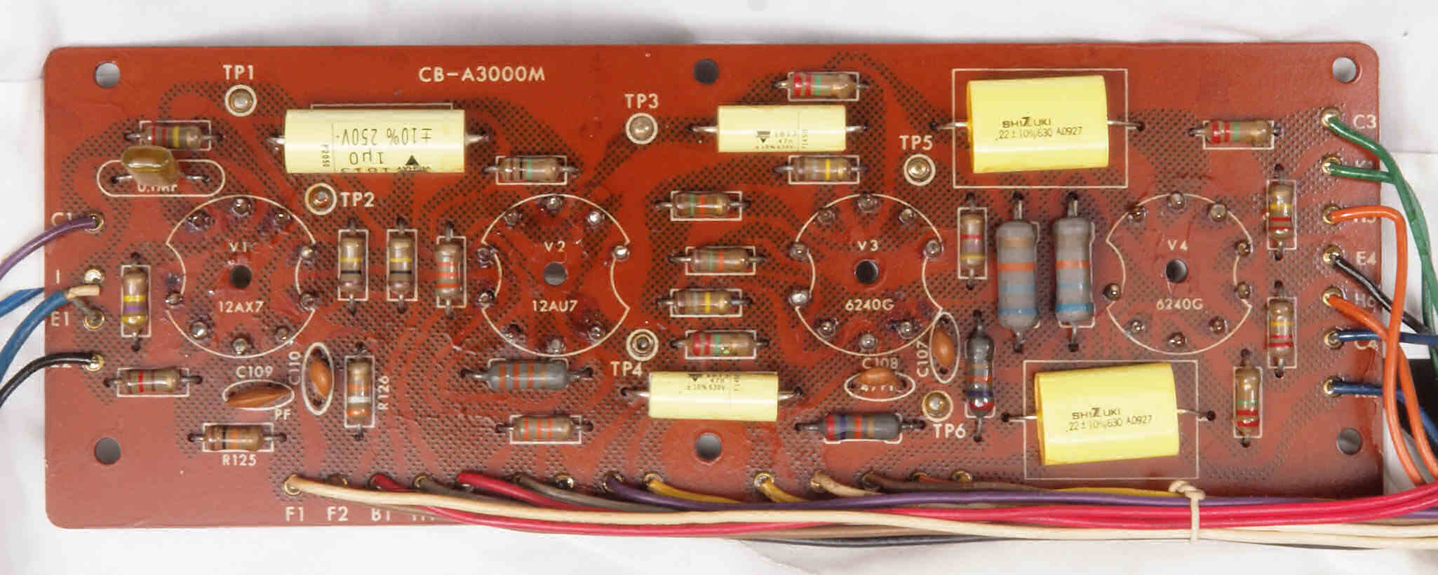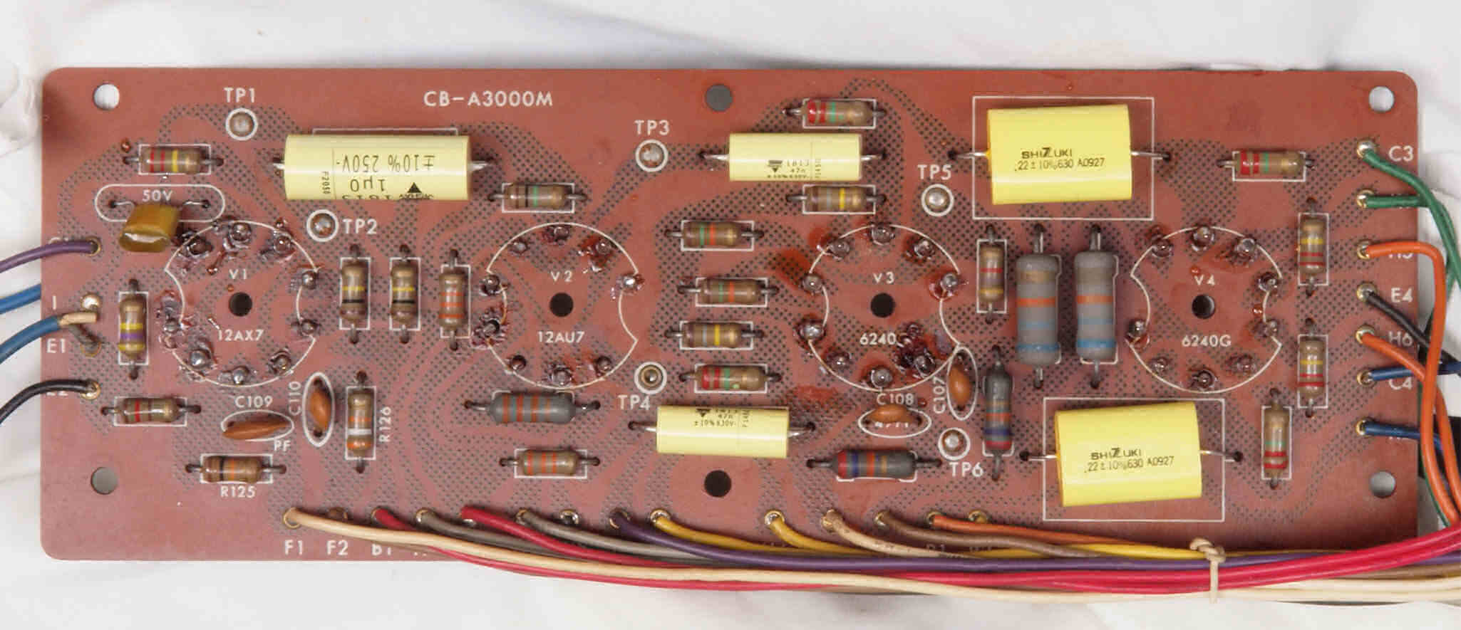 | C122. 修理中 前段AMP基板。真空管ソケットを外し、洗浄後。 | ||||||||||||||||||||||||