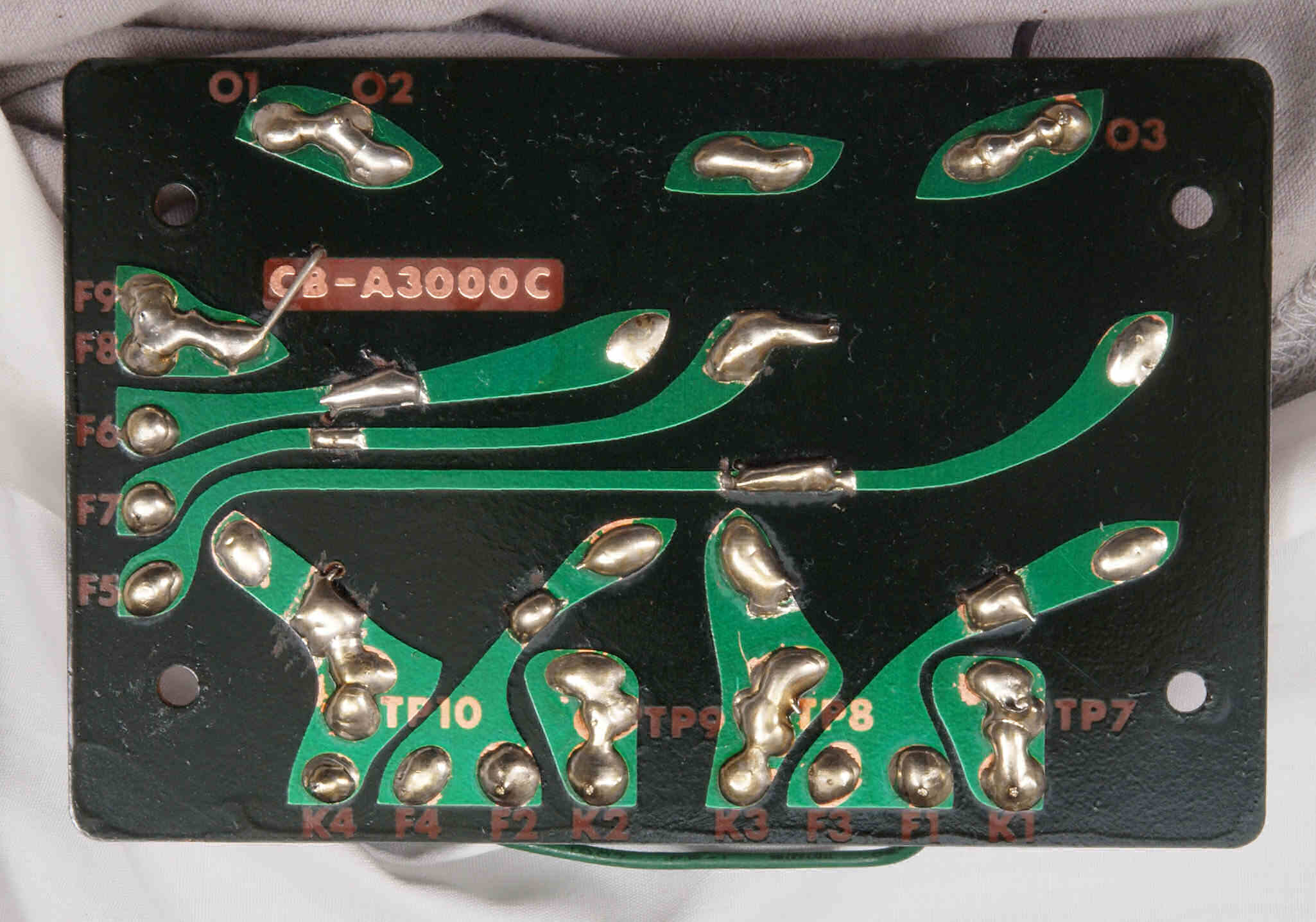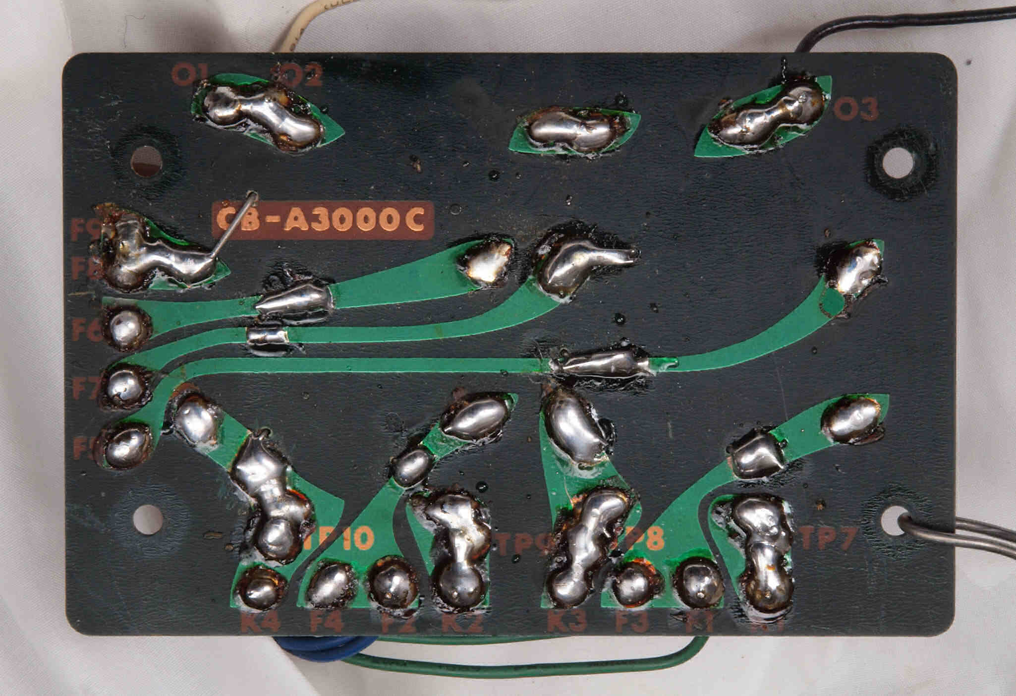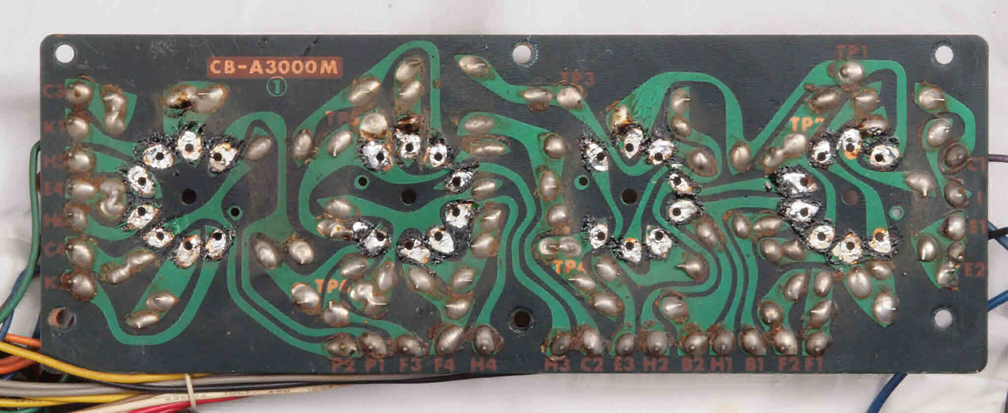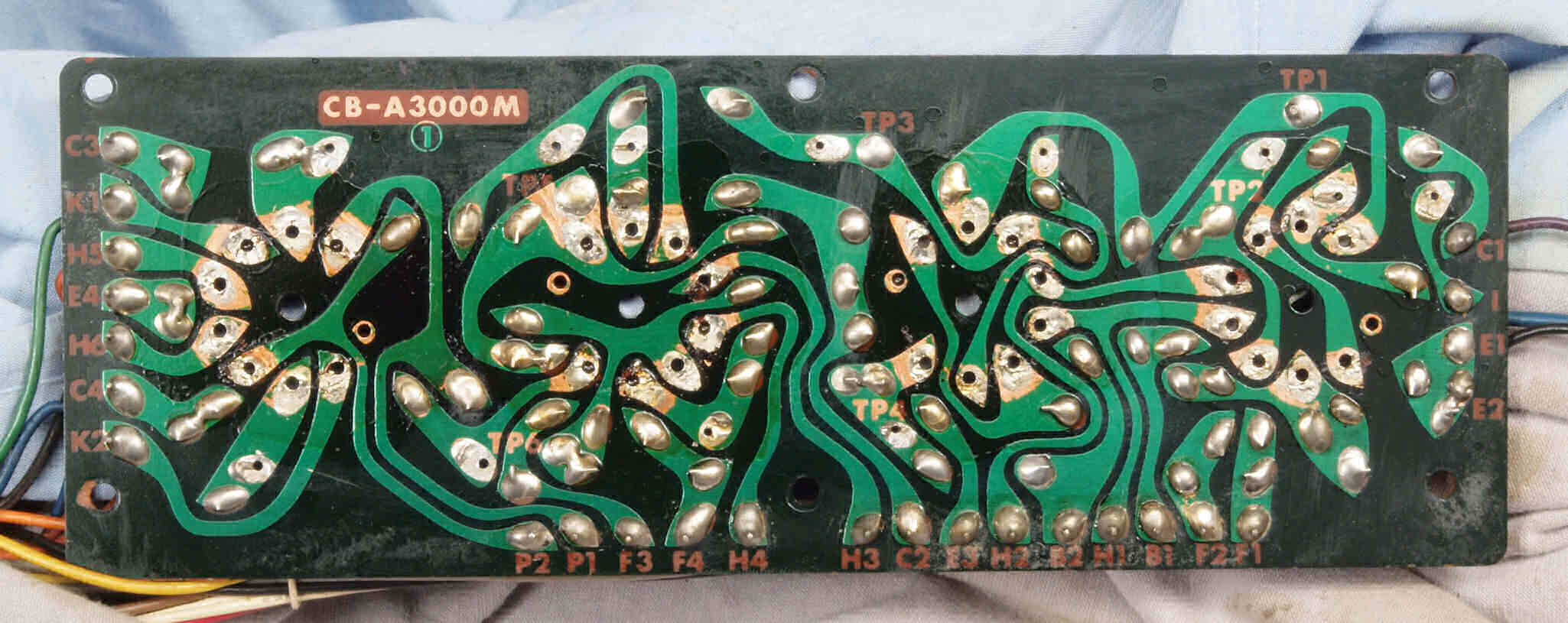 | C34. 修理後 出力トランス下のフイルター基板裏。 半田を全部やり直す。 | ||||||||||||||||||||||||
