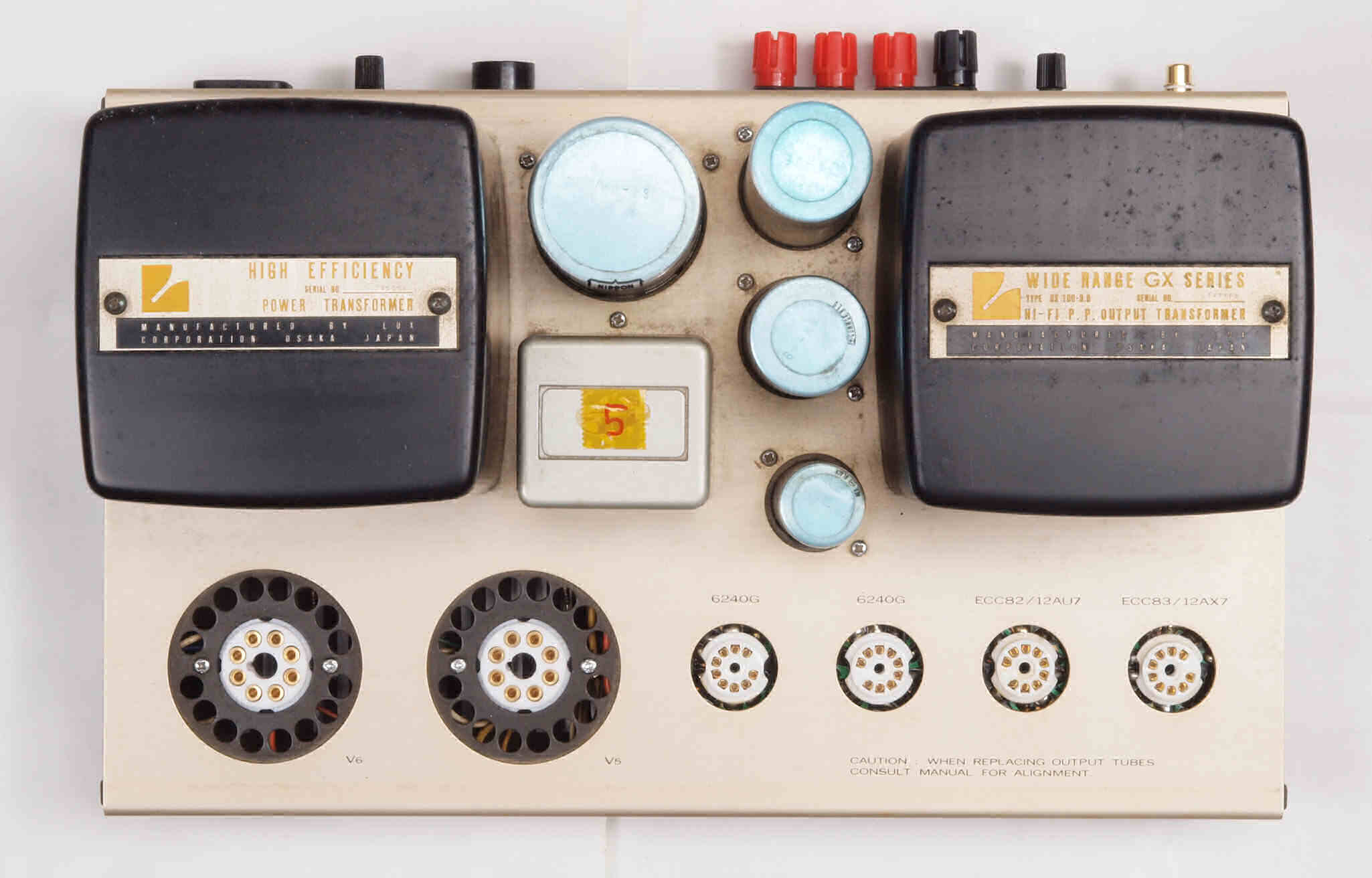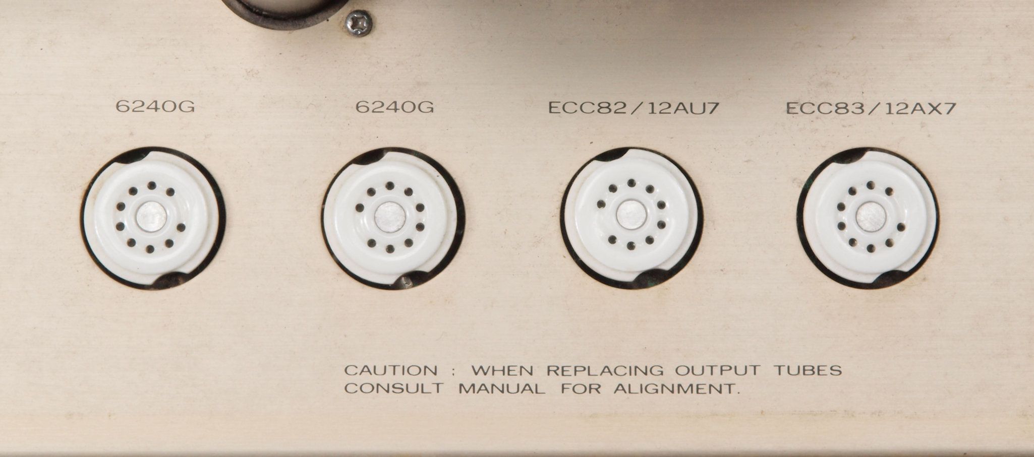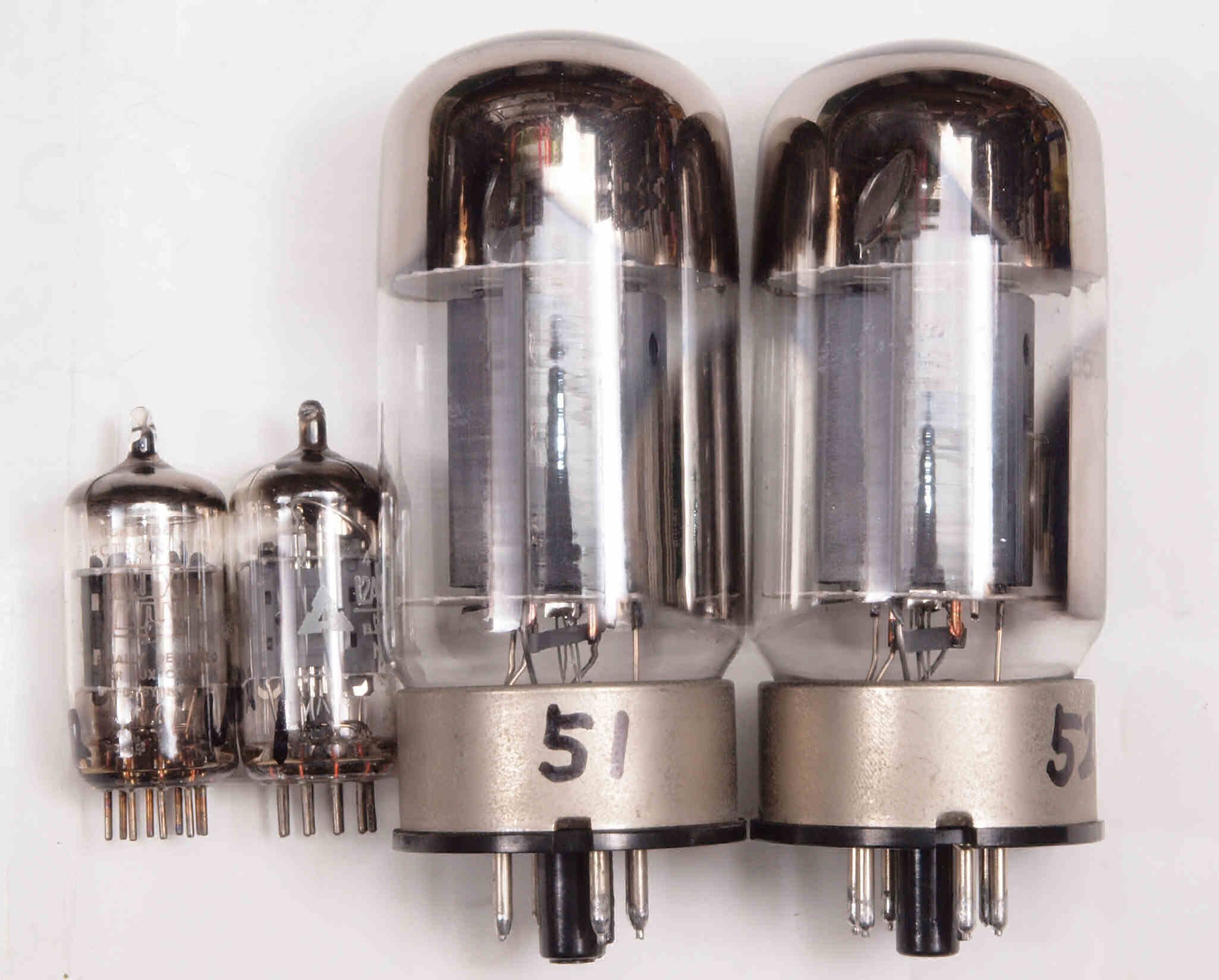 | A31. 点検中 真空管。左から12AX7、12AU7、6550、6550 | ||||||||||||||||||||||||