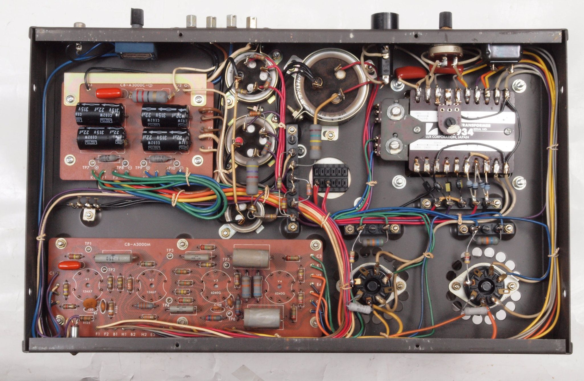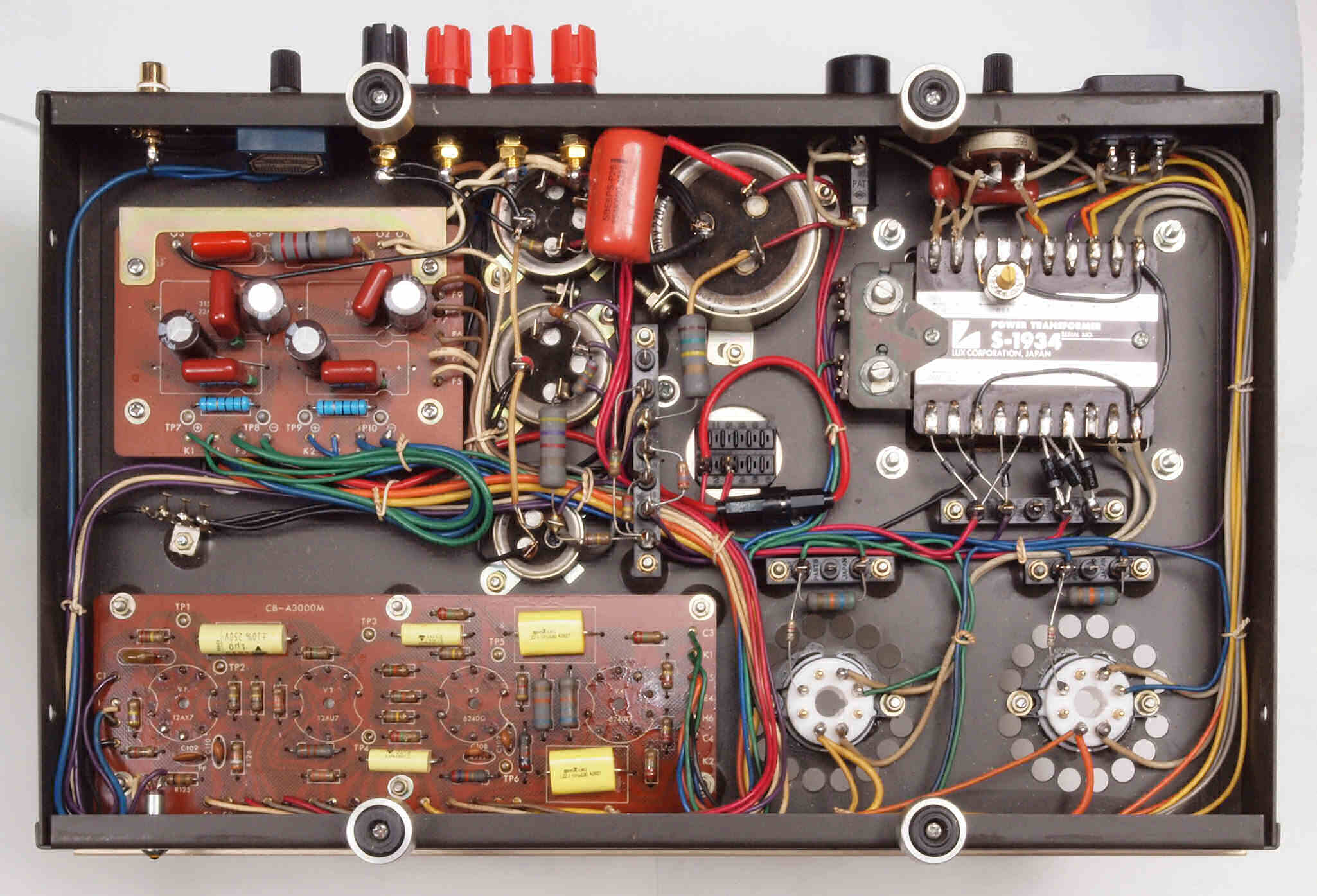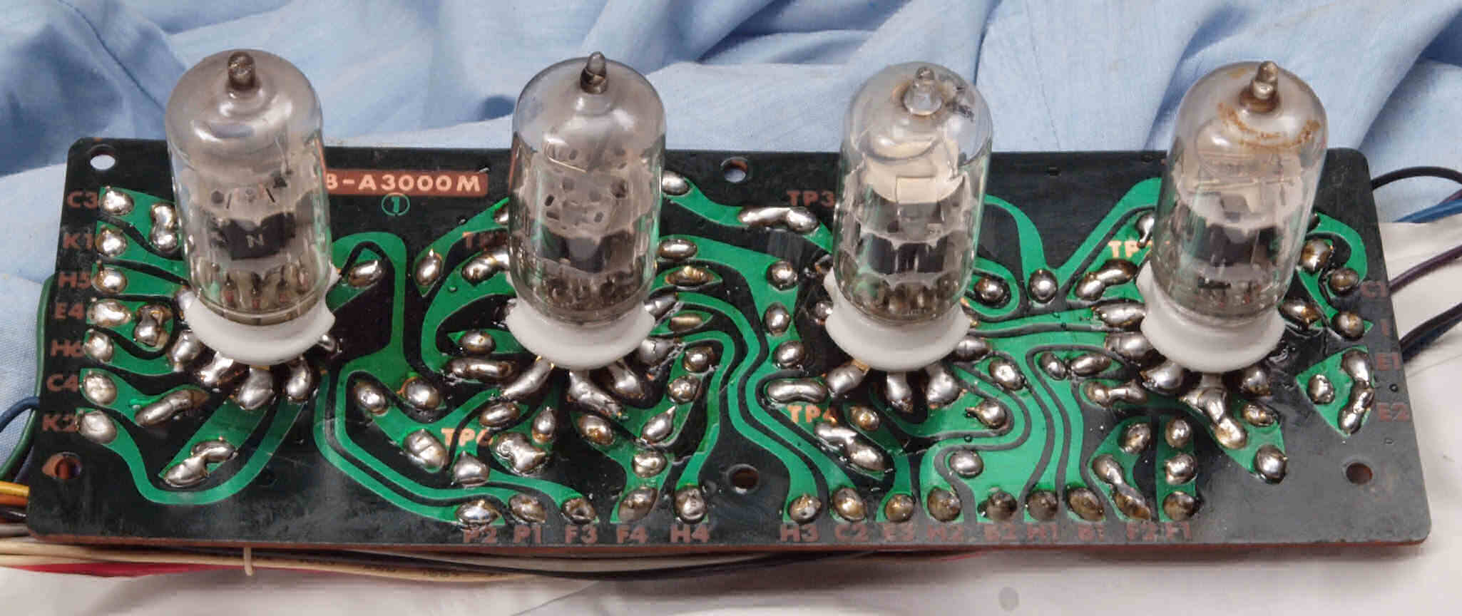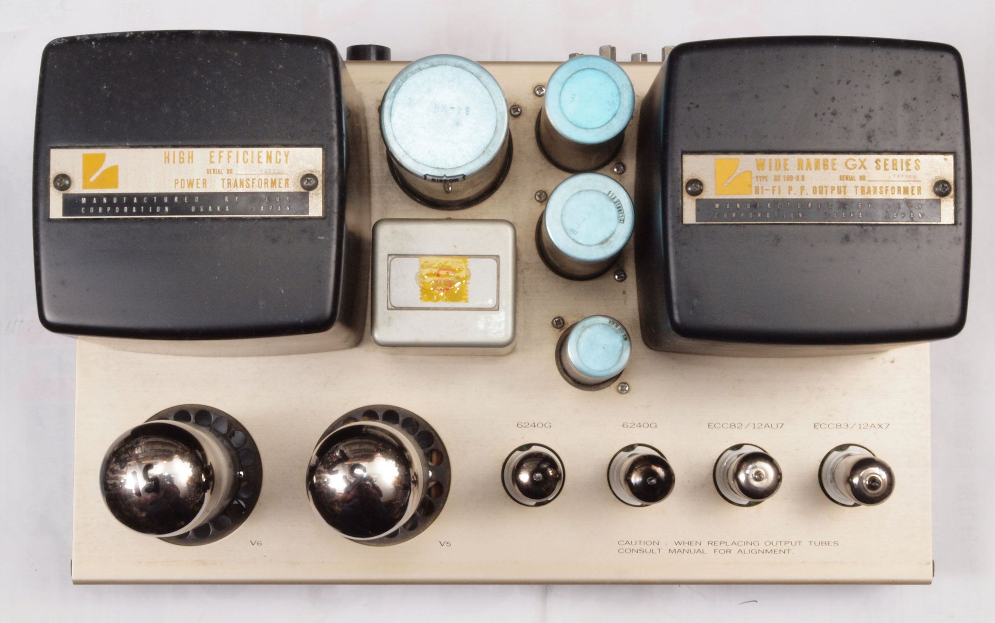 | A31. 点検中 真空管。左から12AX7、12AU7、6550、6550 | ||||||||||||||||||||||||