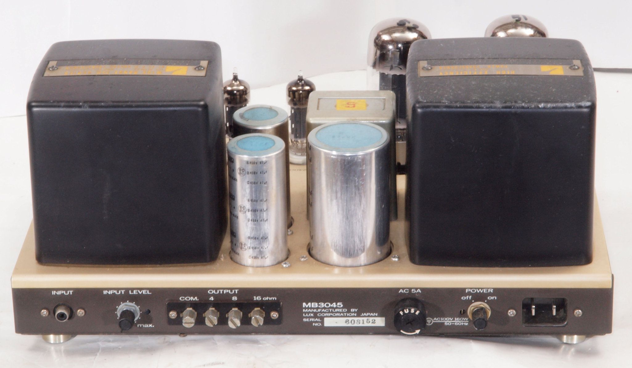 E. 調整・測定 G. 修理費 73,000円 オーバーホール修理。 但し、真空管は別途です。 3台目からの、お馴染みさん価格。 Y. ユーザー宅の設置状況 S. LUX MB3045 の仕様(マニアル・カタログより) |