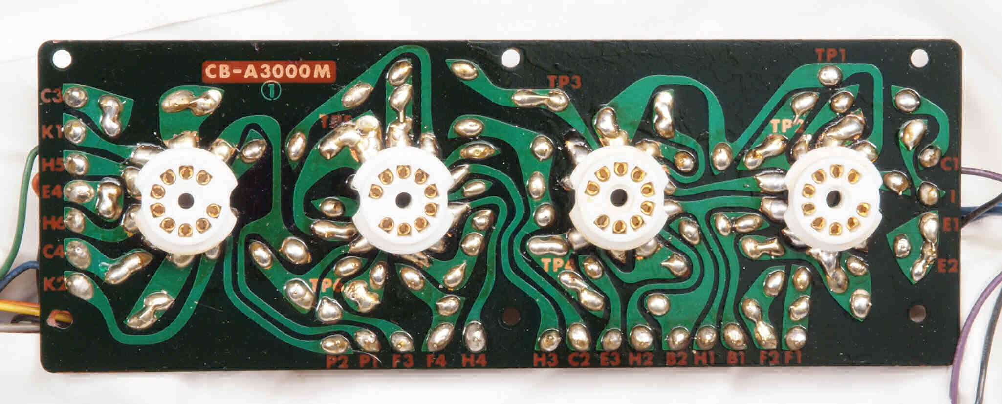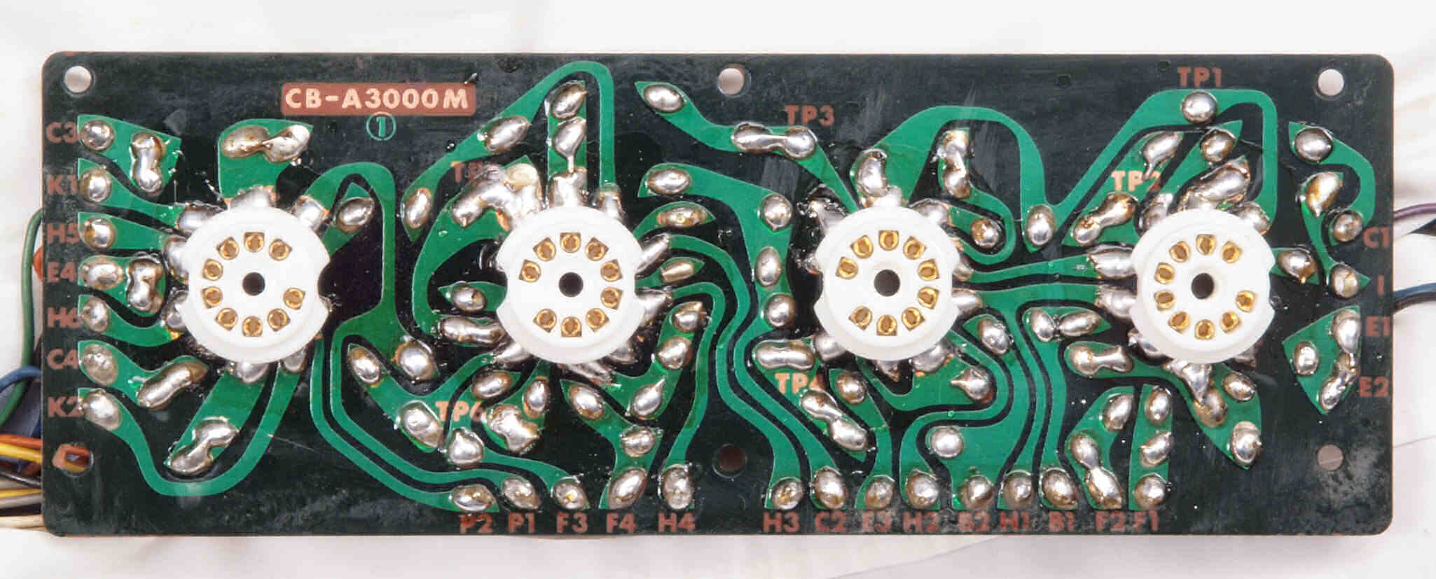 | C14. 修理後 前段AMP基板。 タイト絶縁9ピンMTソケット4個交換。 半田を全部やり直す。 | ||||||||||||||||||||||||