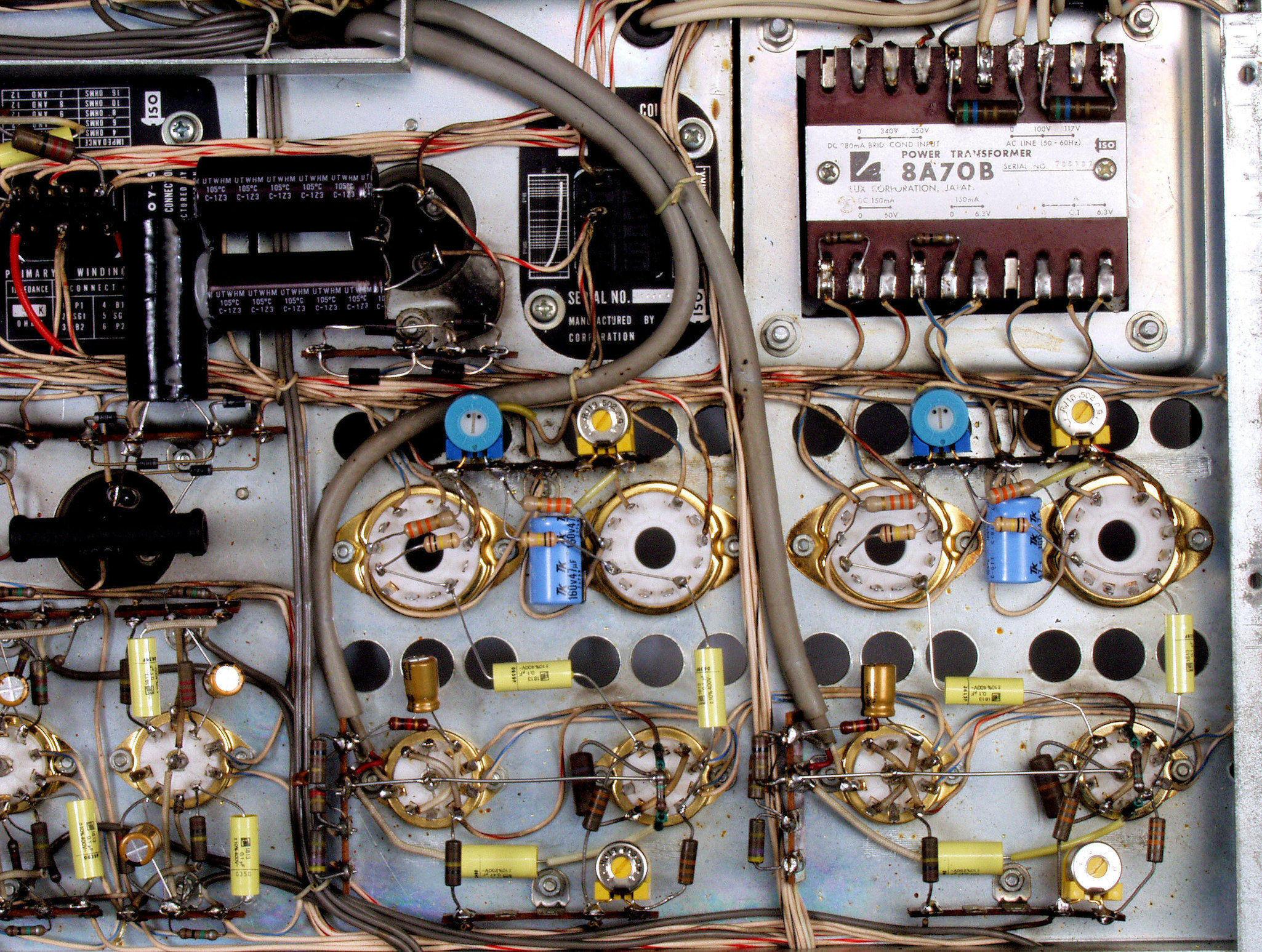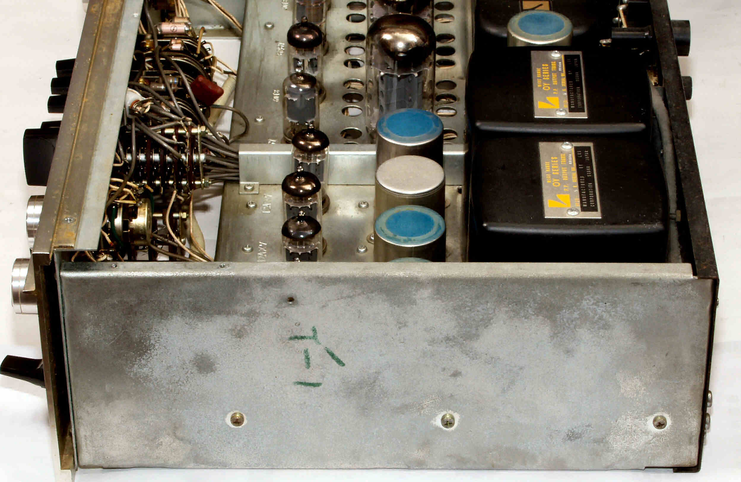 A5A. 点検中 出力真空管50CA10、LUXのマークが光る!