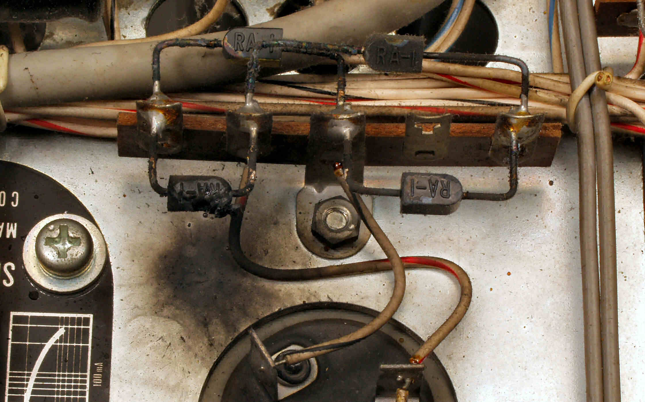 A3D. 点検中 焼けた高圧整流ダイオード。