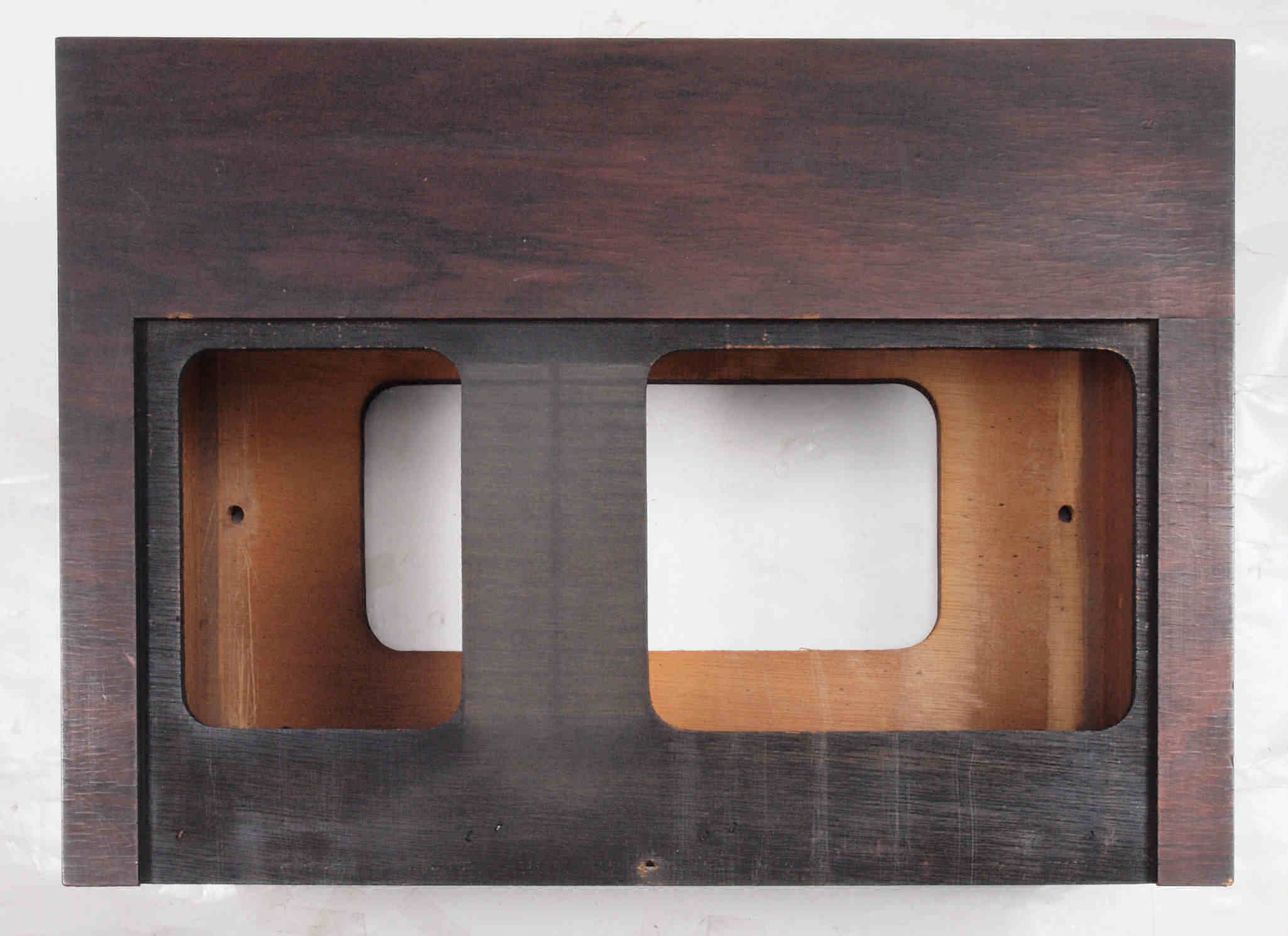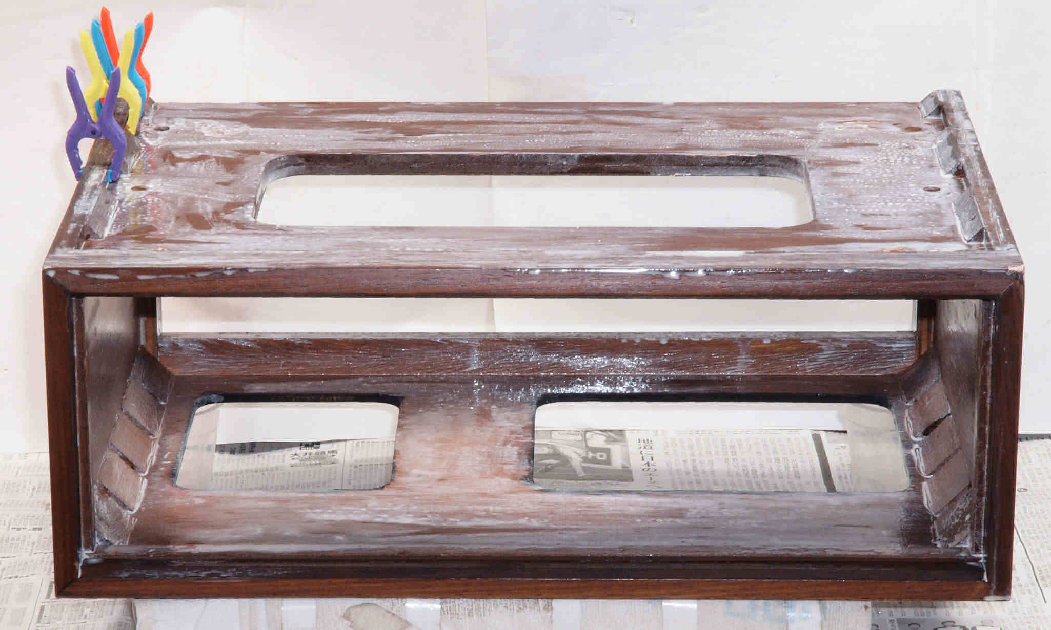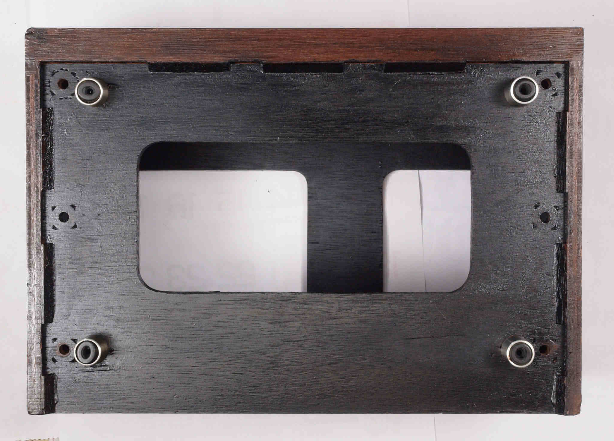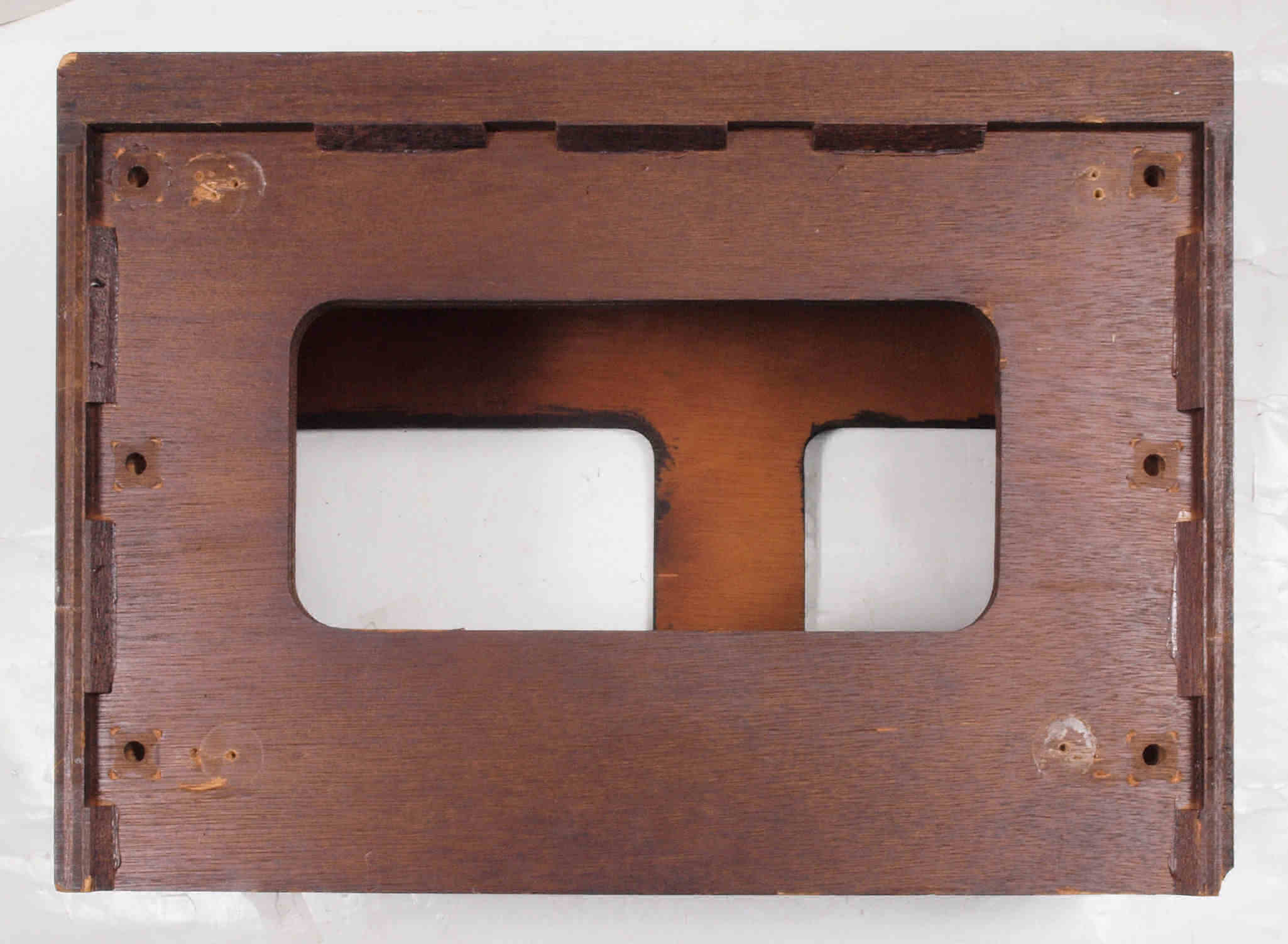 | K. 裏パネルと木製ケース修理。 画像をクリックすると、大きく(横幅2050ドット)表示されます。 K01. 修理前 ガラリパネル。 |