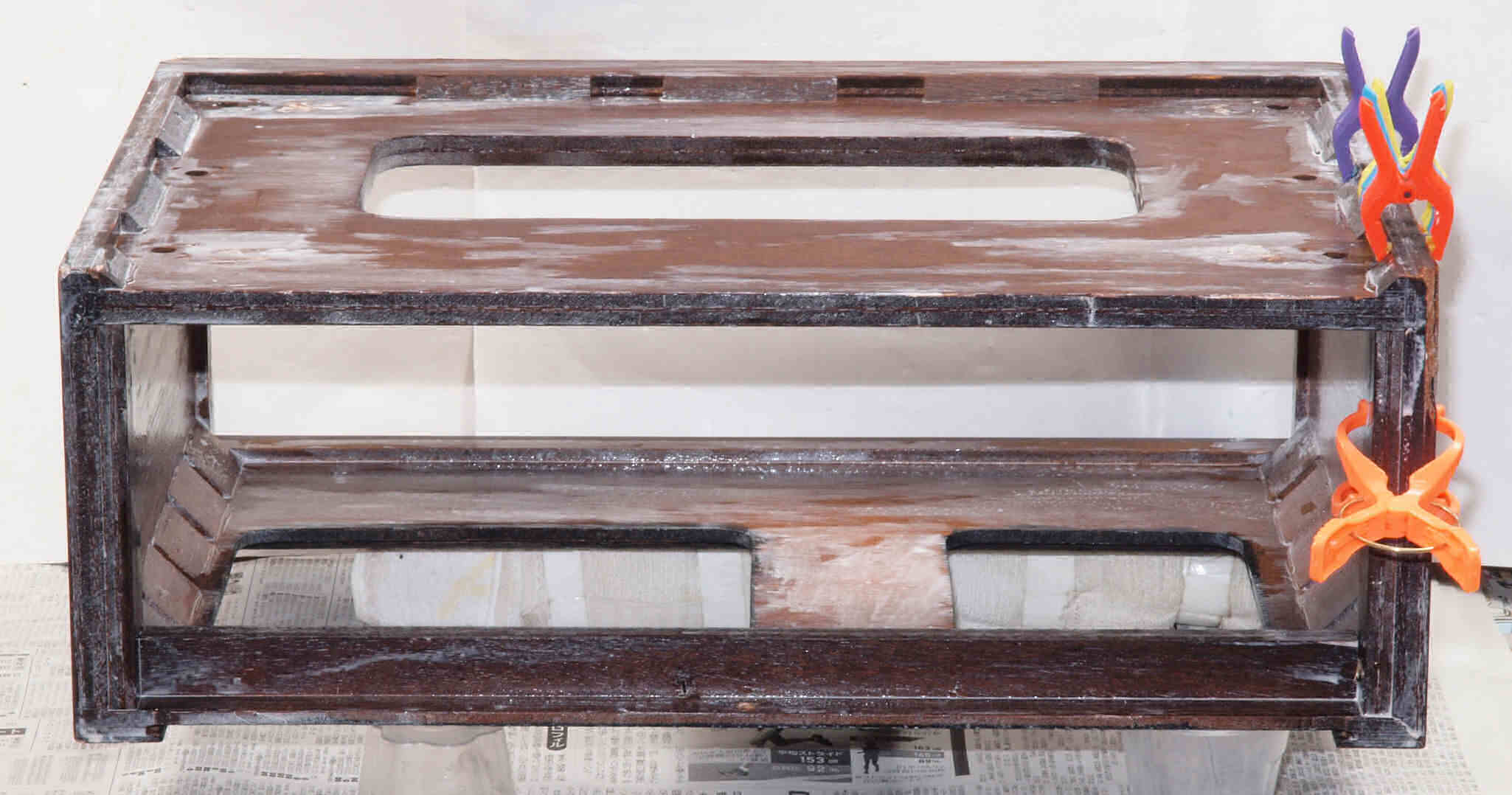 | K414. 修理中 下前から見る。 状態が良く無いので、ボンドを染み込ませる。 |