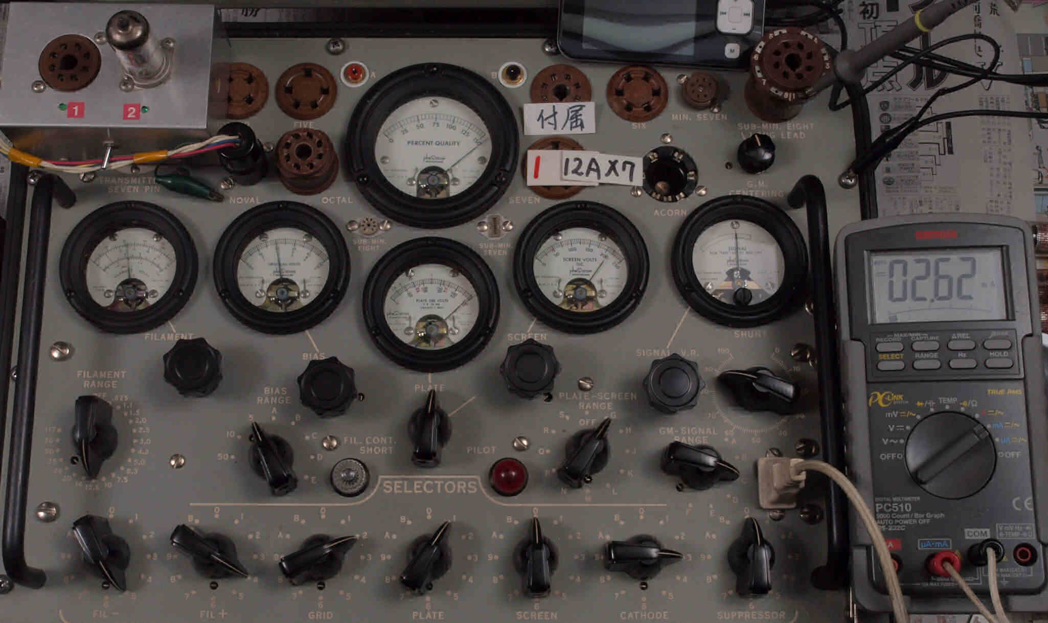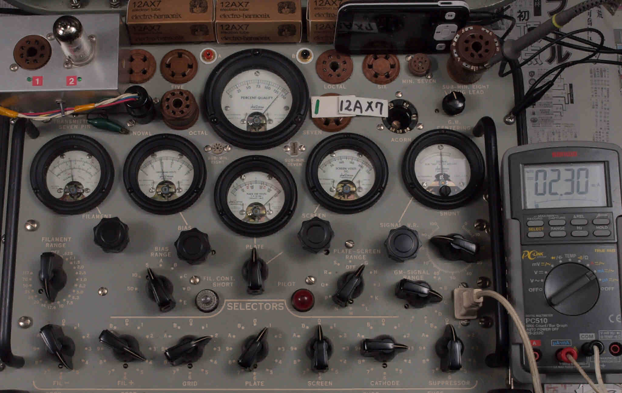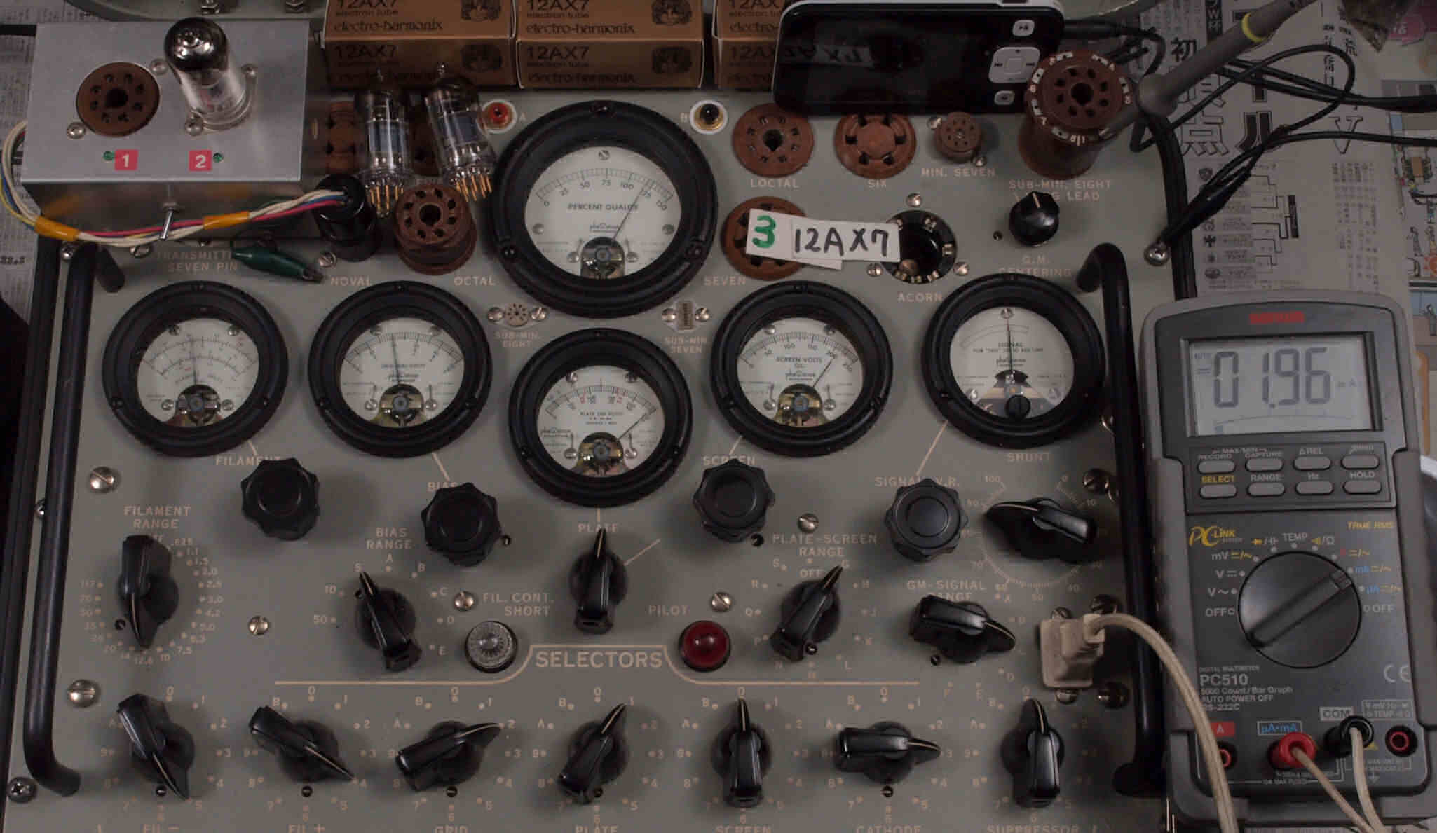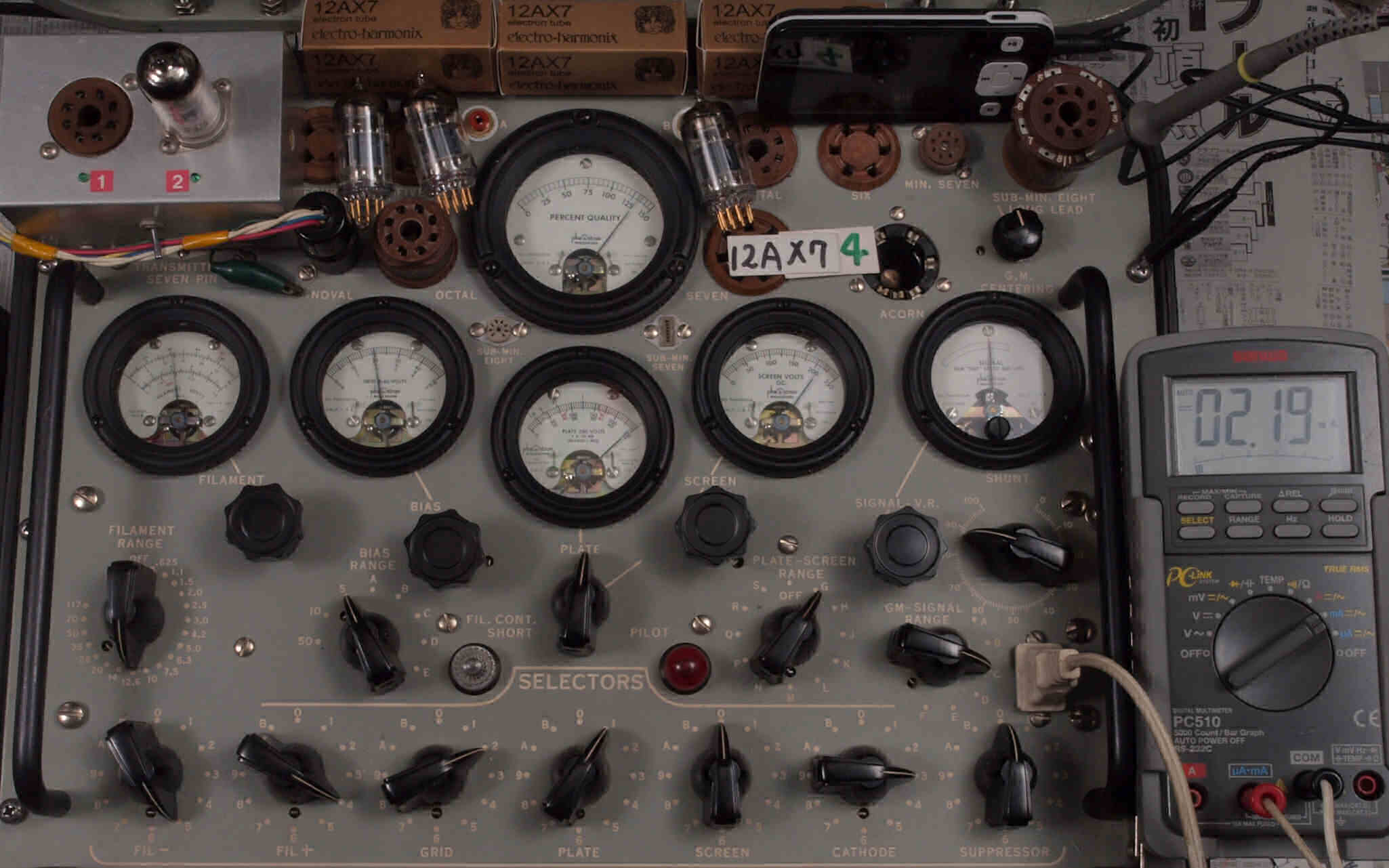 | V432. 購入3本目 12AX7 ユニット2。 Gm測定=2500μmho、IP=2.06mA。 |