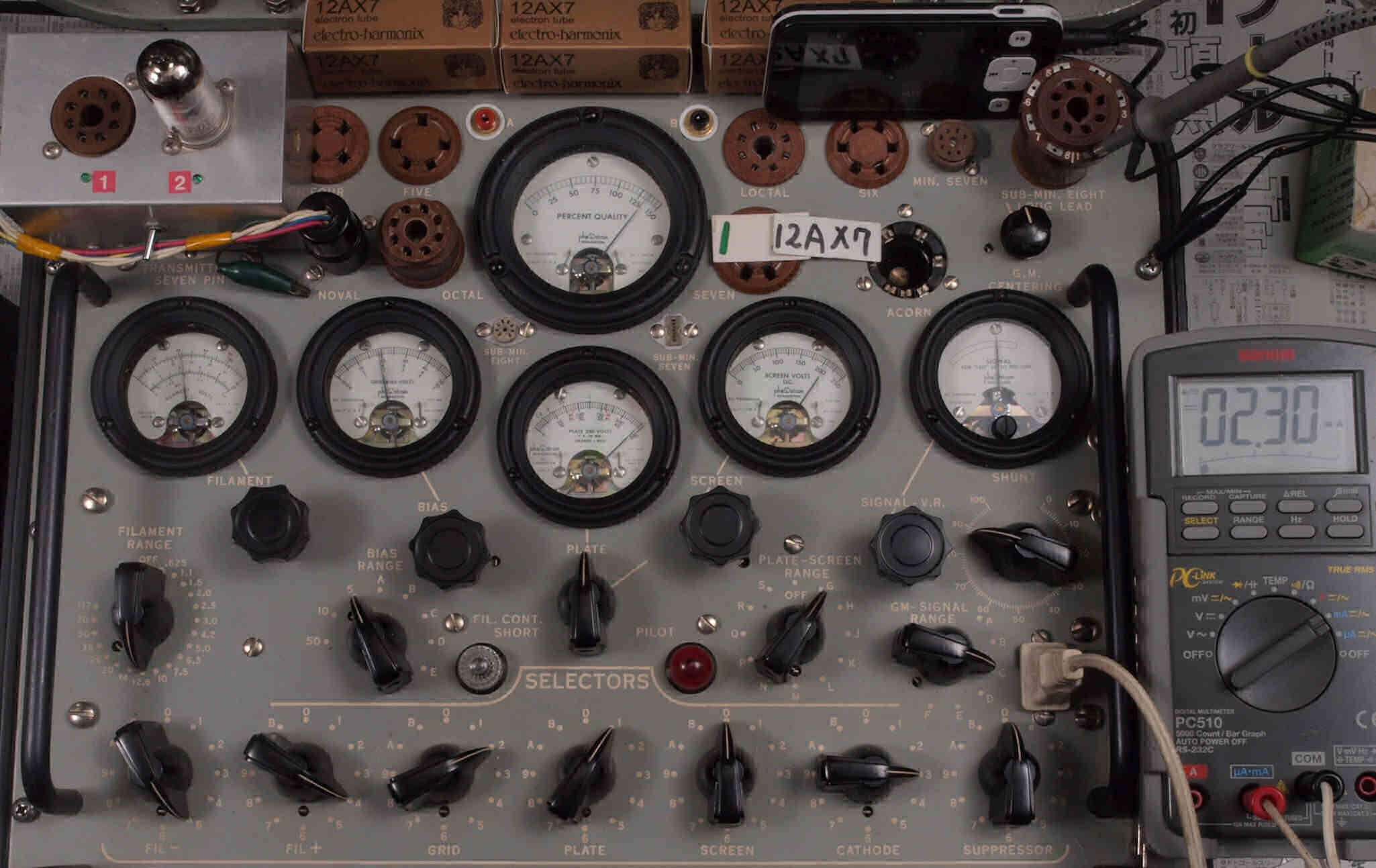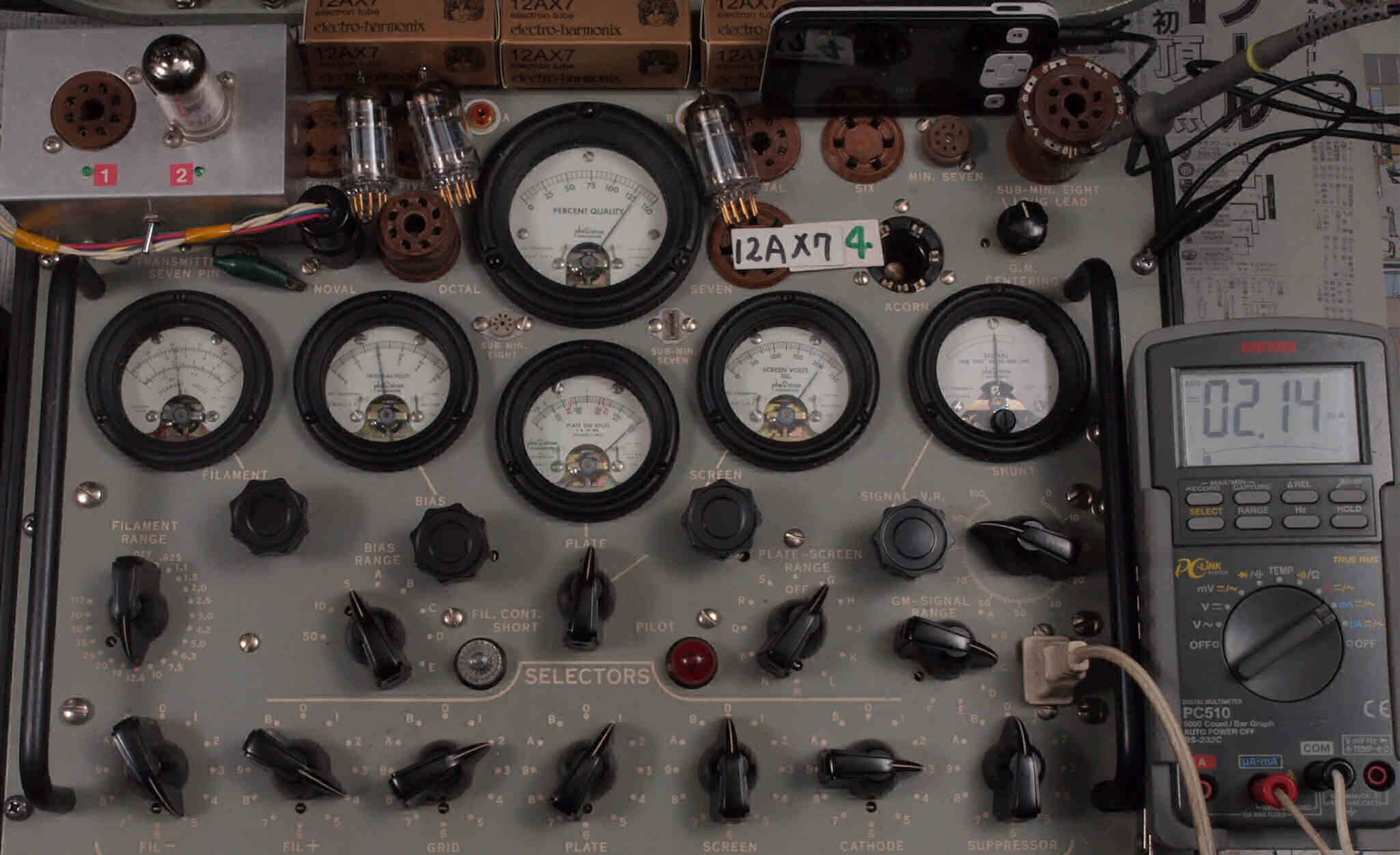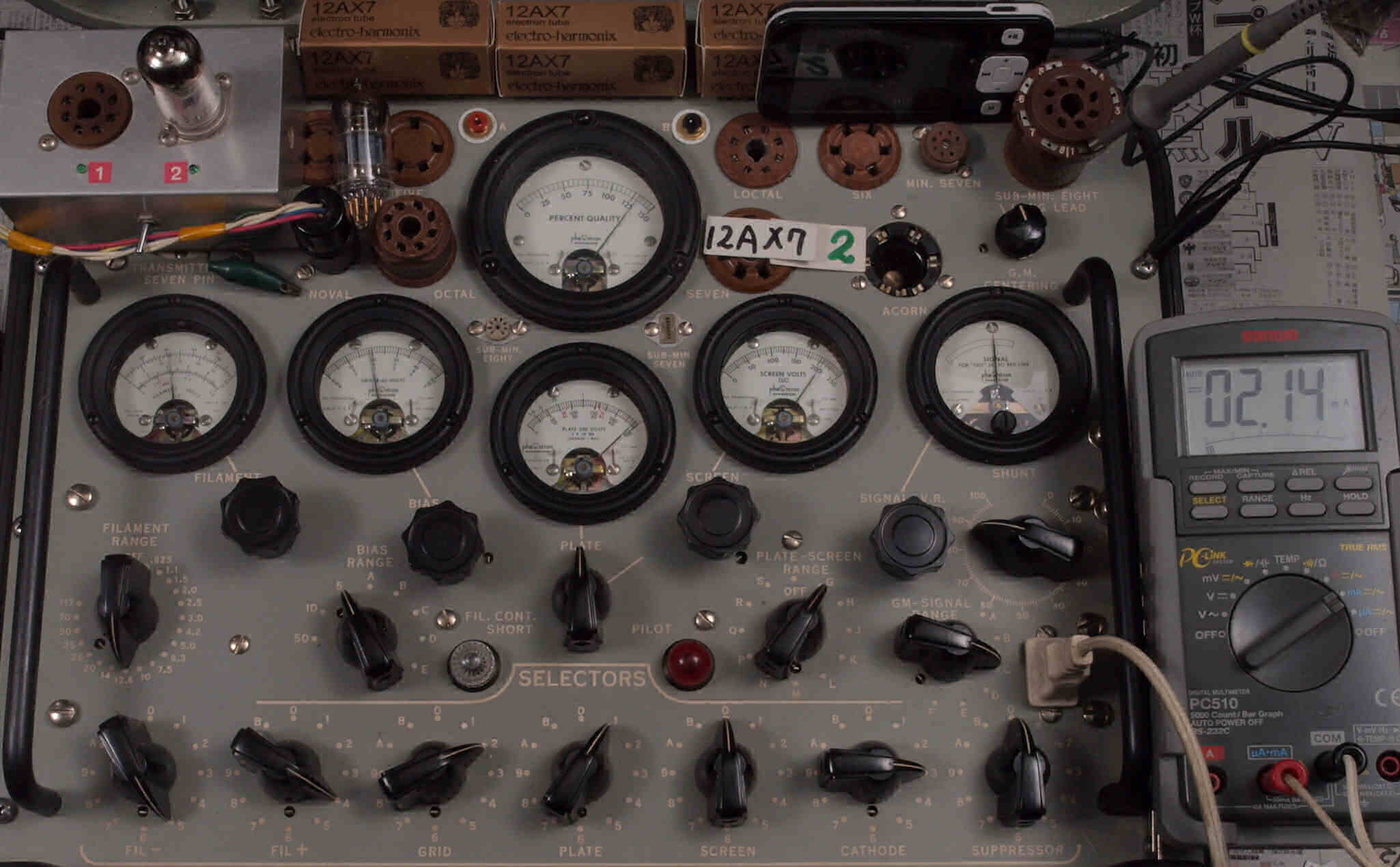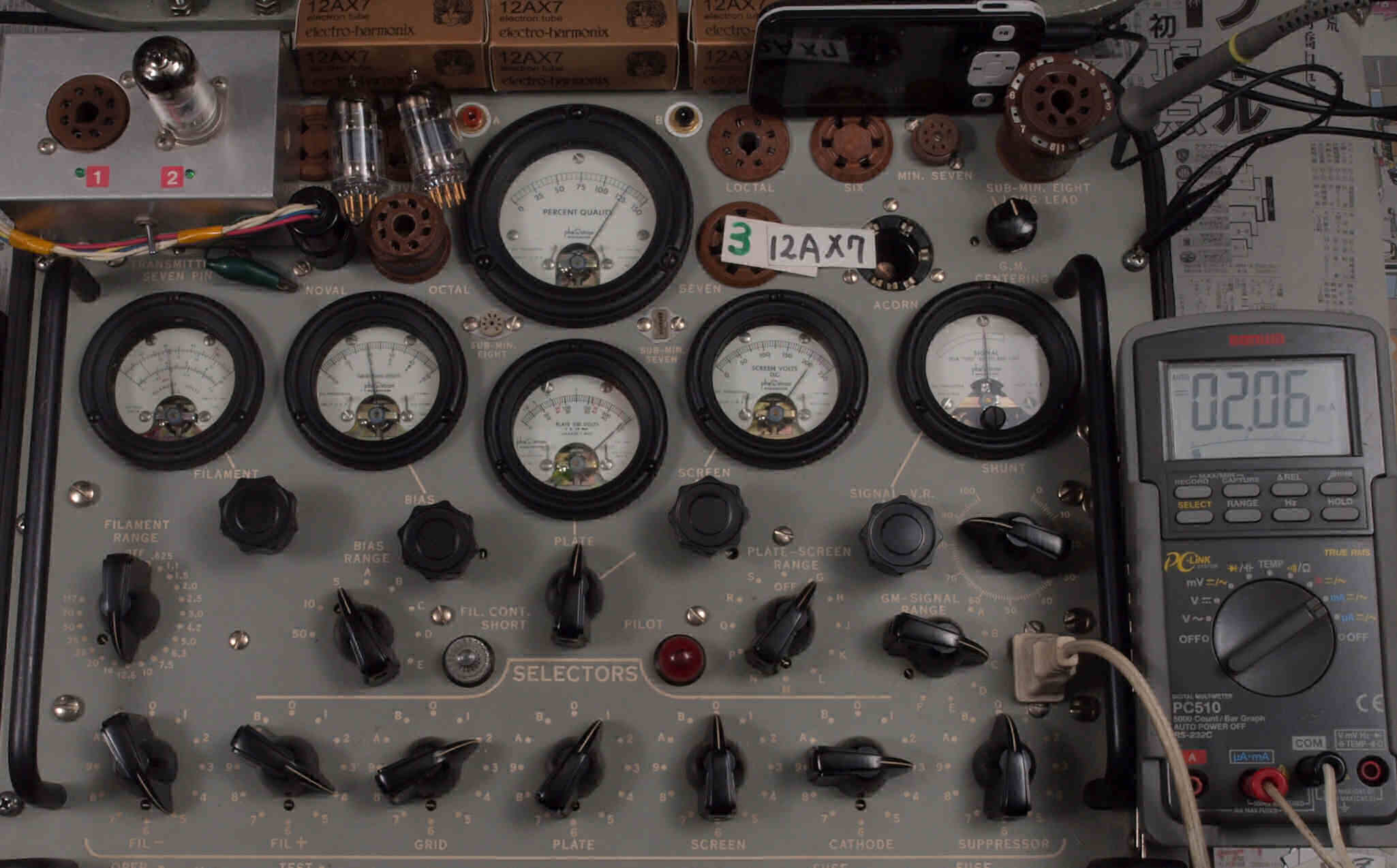 | V432. 購入3本目 12AX7 ユニット2。 Gm測定=2500μmho、IP=2.06mA。 |