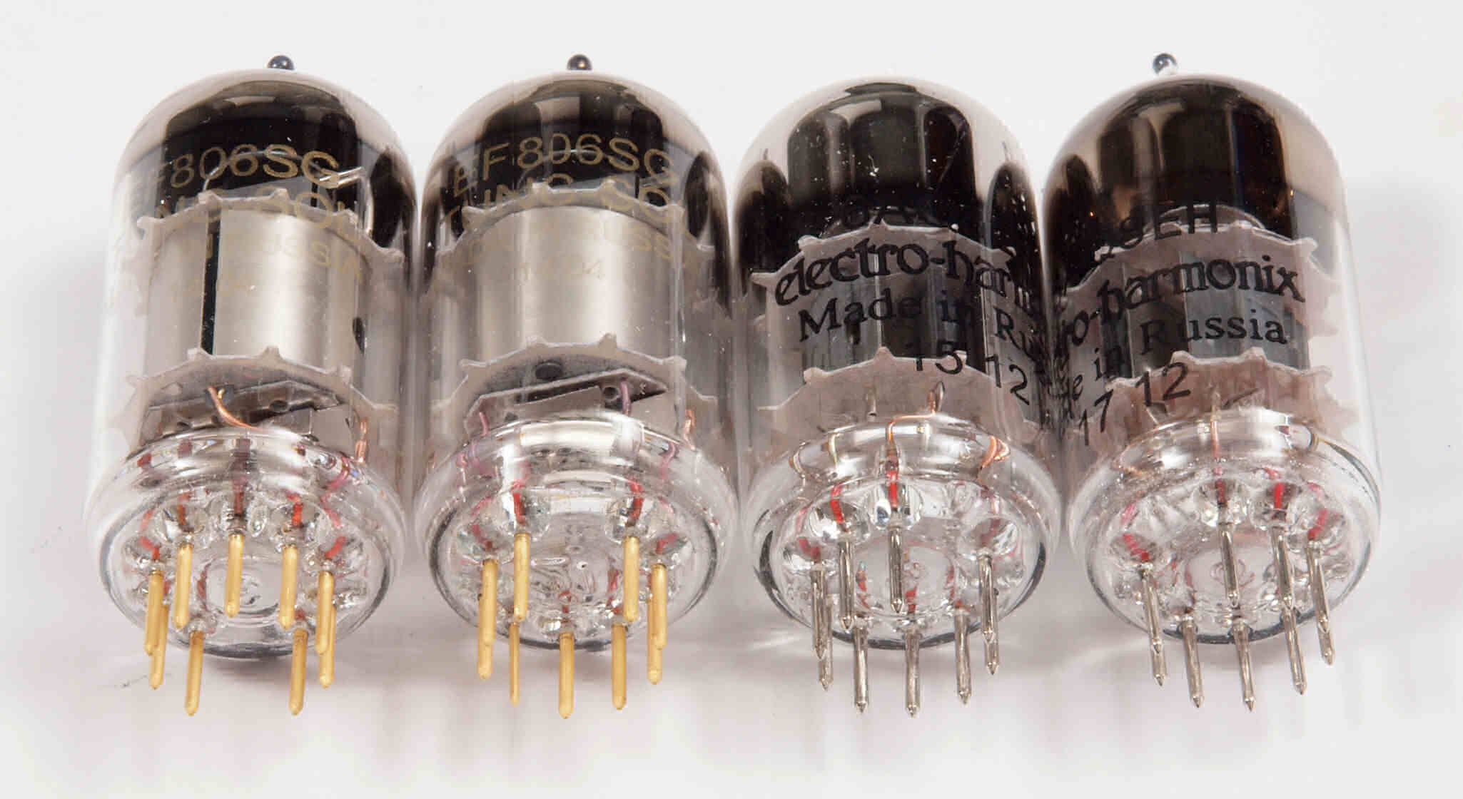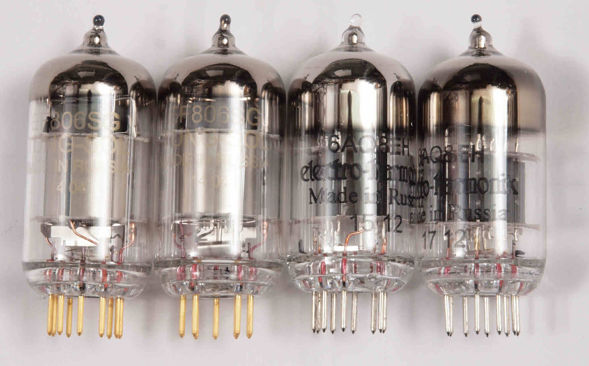 購入真空管。 TUNG−SOL金足 EF806SG 左から1−2本目。electro−harmonix 6AQ8 左から1−2本目。