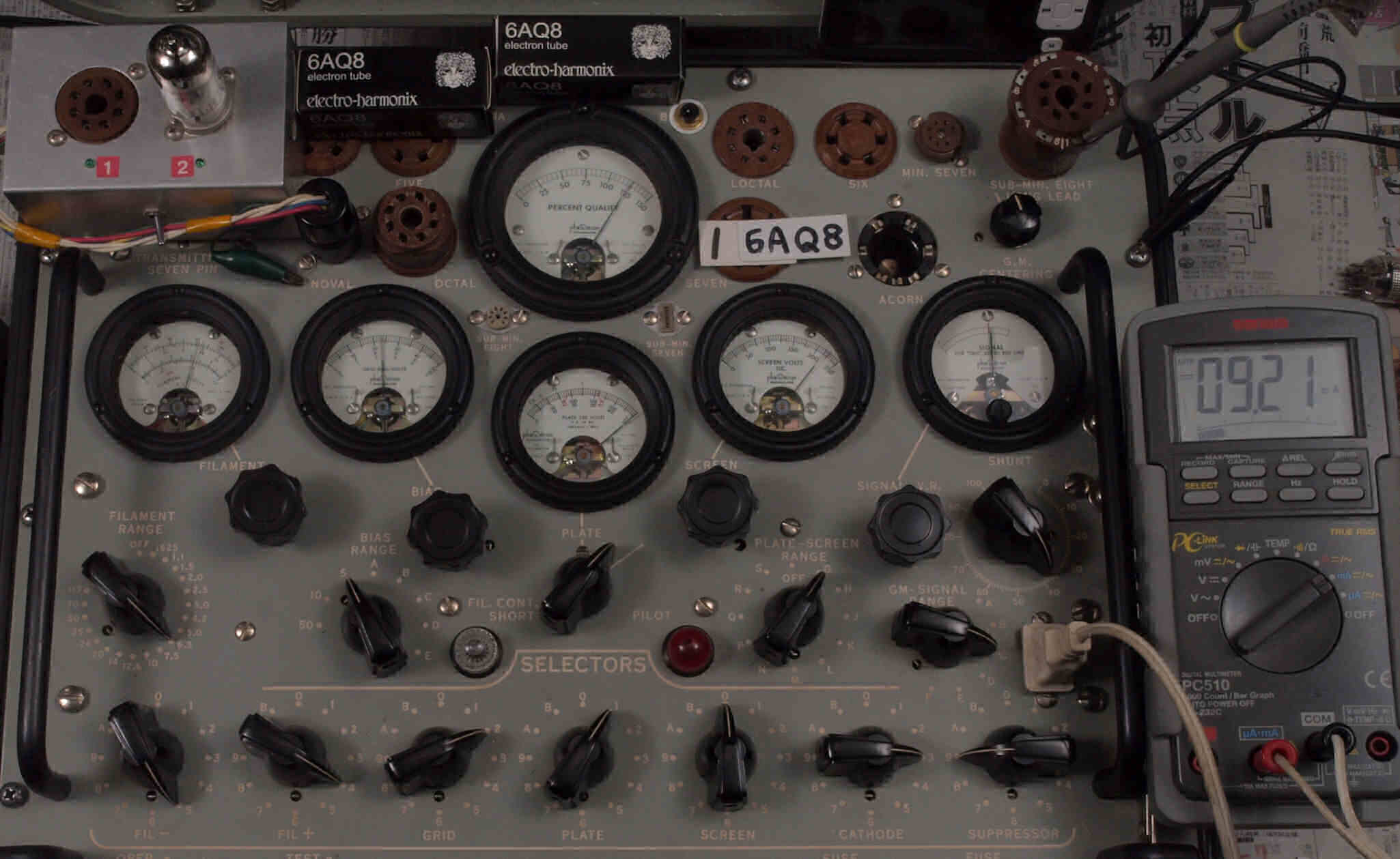 | V312. 購入1本目 6AQ8 ユニット2。 Gm測定=6150μmho、IP=9.21mA。 |