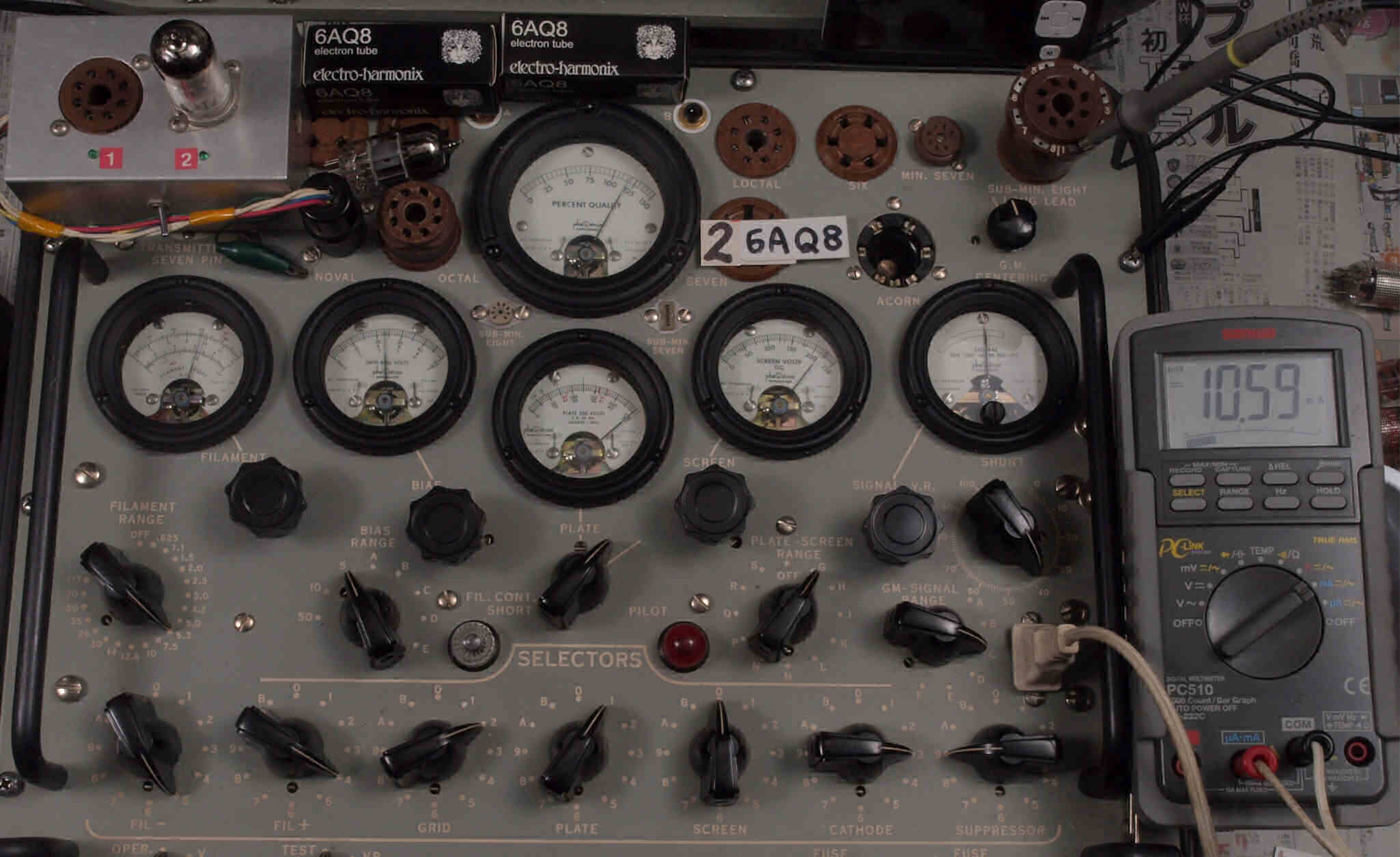| V322. 購入2本目 6AQ8 ユニット2。 Gm測定=5850μmho、IP=10.59mA。 |