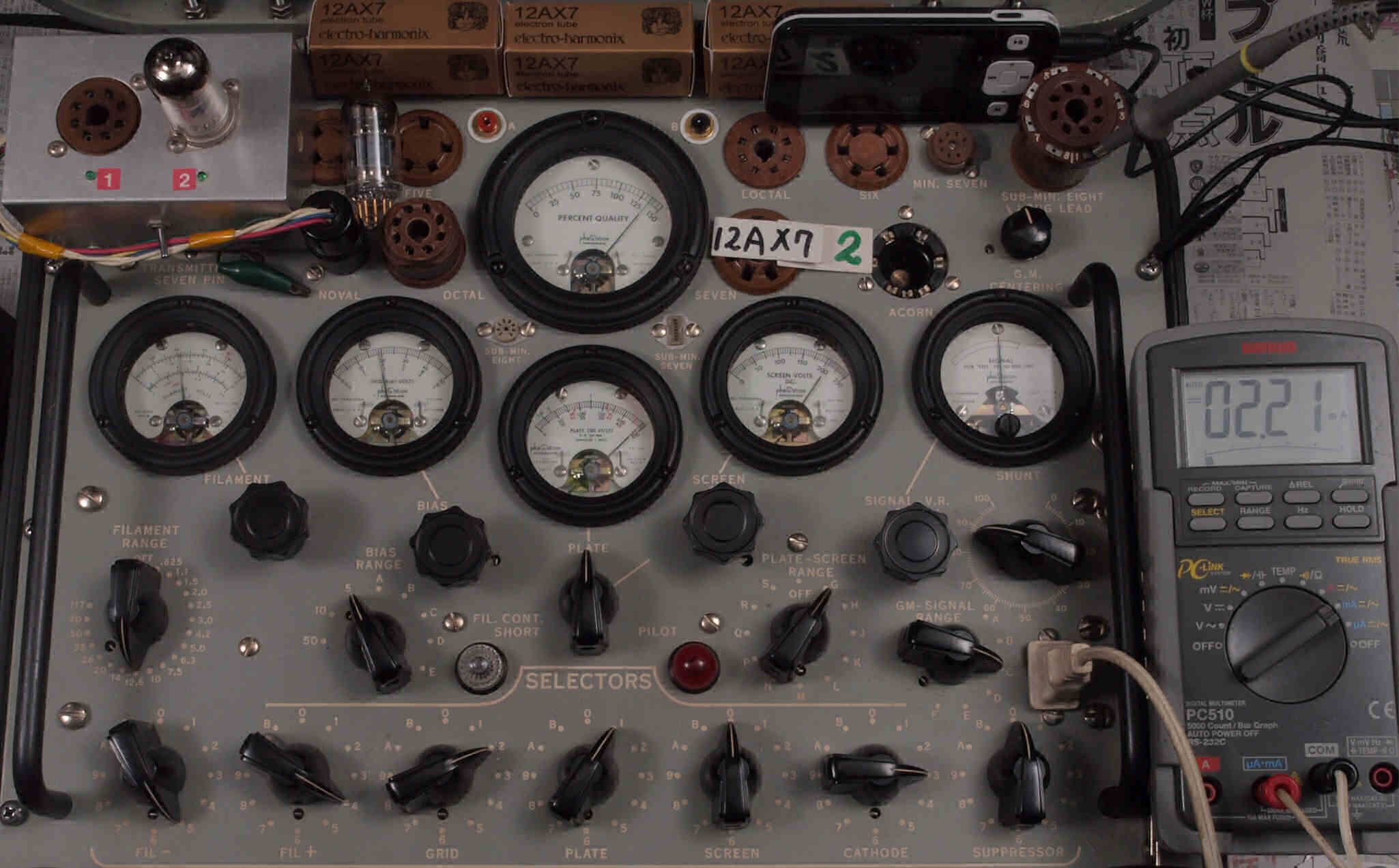 | V422. 購入2本目 12AX7 ユニット2。 Gm測定=2700μmho、IP=2.21mA。 |