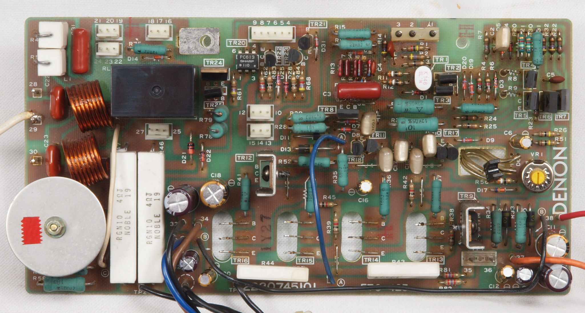 | C32. 修理後 歪打消AMP基板。 リレー1個、半固定VR1個、電解コンデンサー10個交換。 | ||||||||||||||||||||||||||||||||||||||||||||||||||||||||