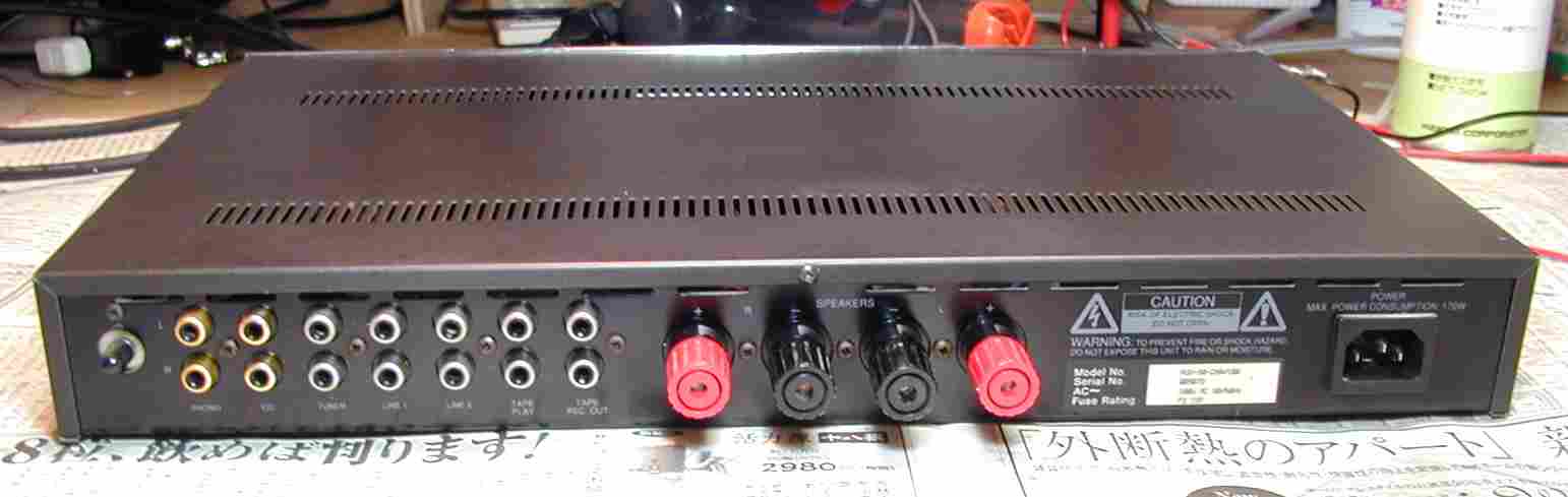 | A.修理前の状況. 右側の音鳴らない。 B.原因. 放熱が悪く、TR(トランジスタ−)の劣化。 C.修理状況。 TR(トランジスタ−)交換。 D.使用部品。 AMP TR(トランジスタ−) 4個。 電解コンデンサ- 4個。 抵抗 2個。 E.修理費 16,000円 通常修理 S. Aura VA−50 の仕様(カタログ・マニアルより) |