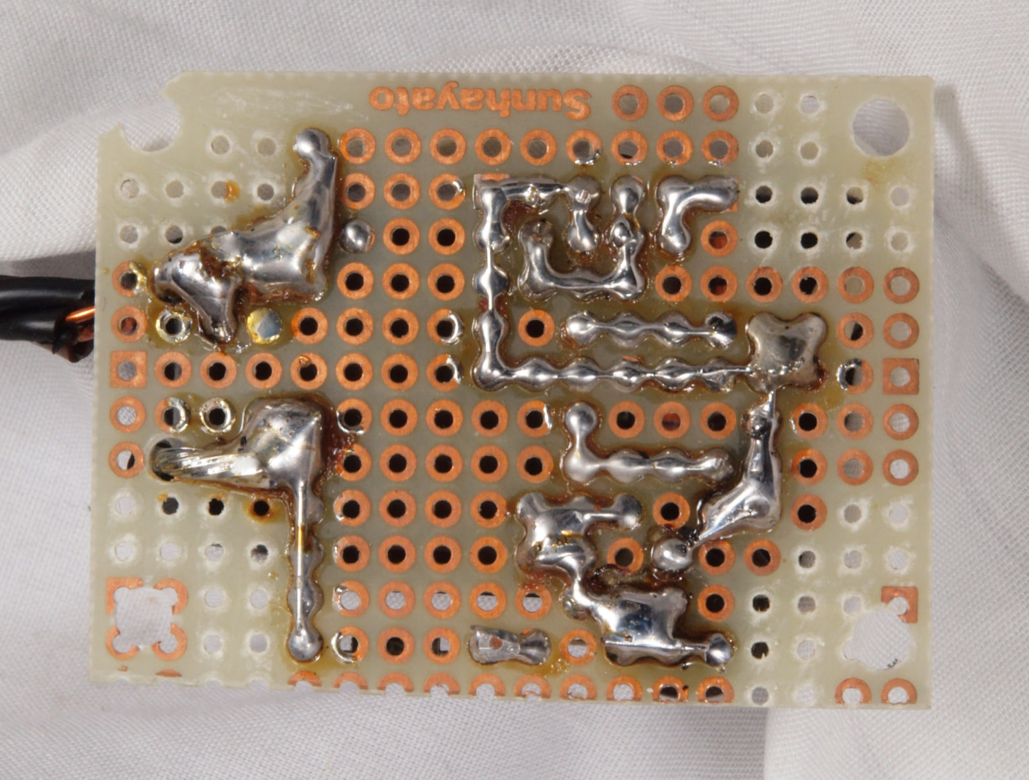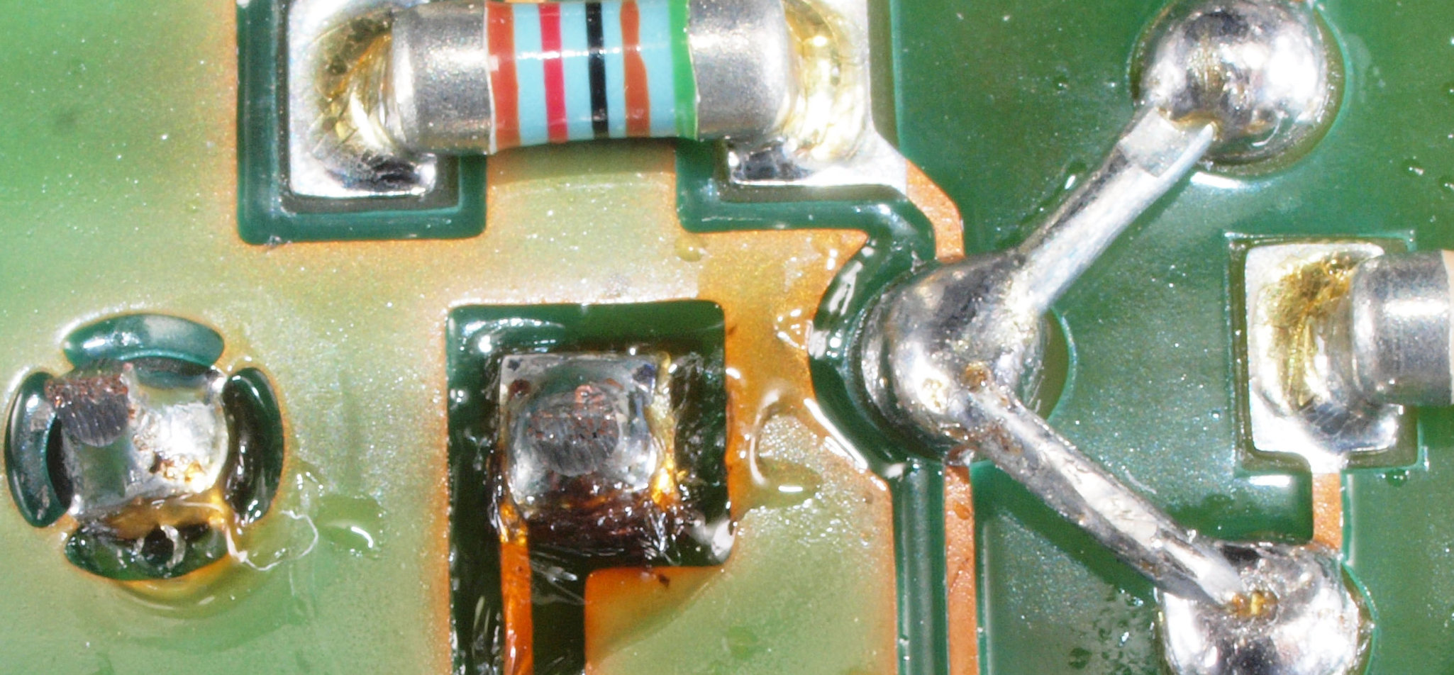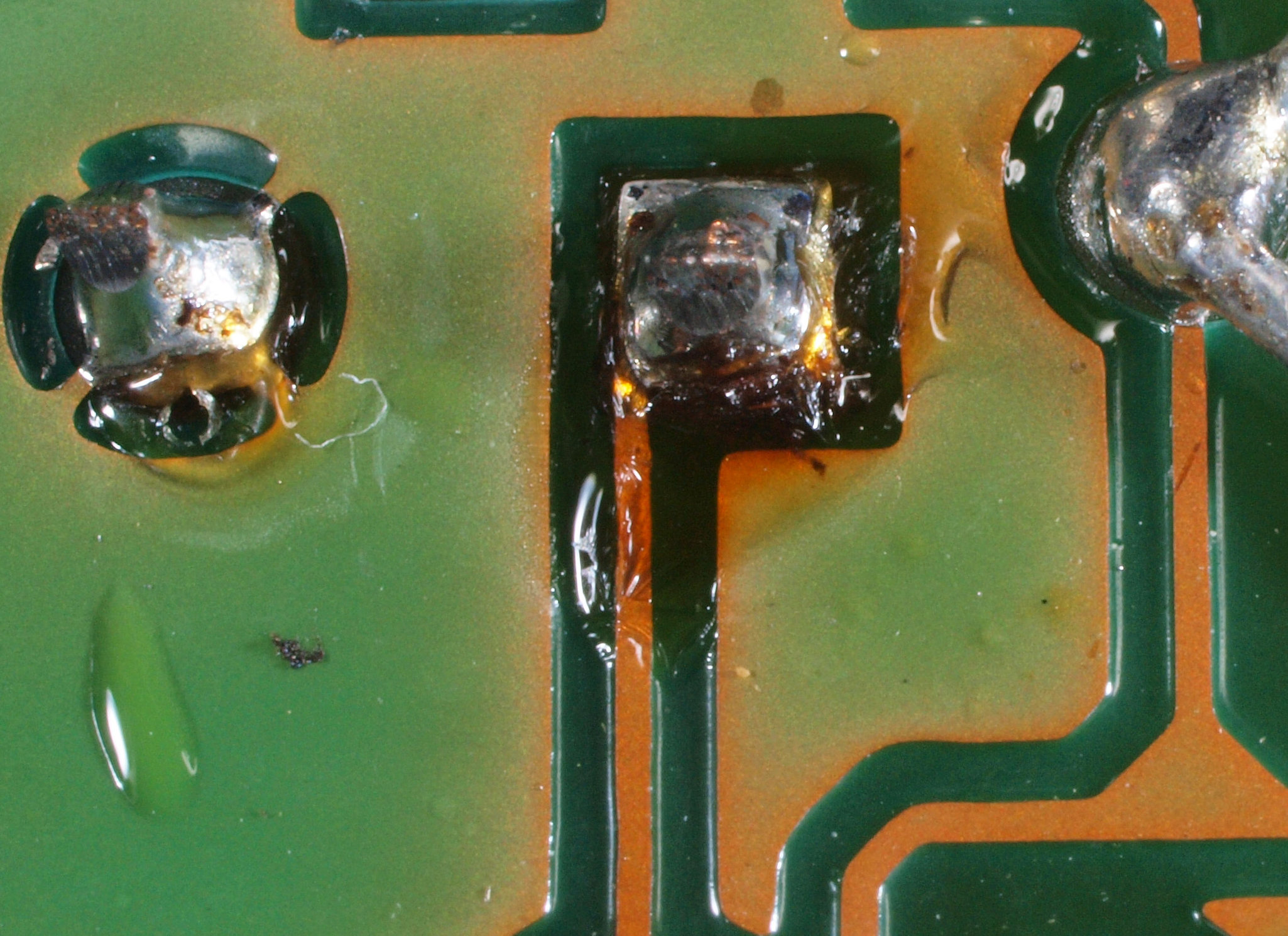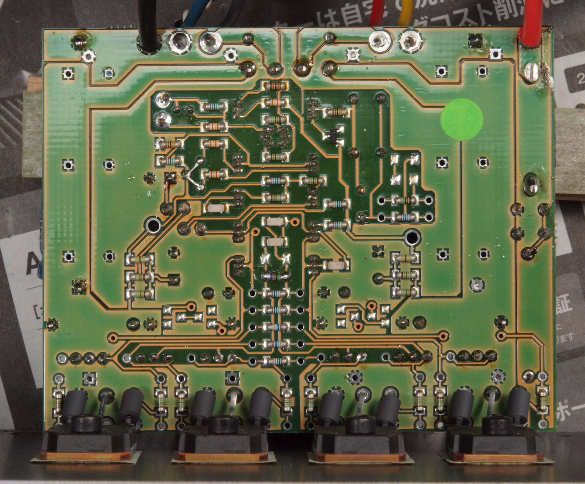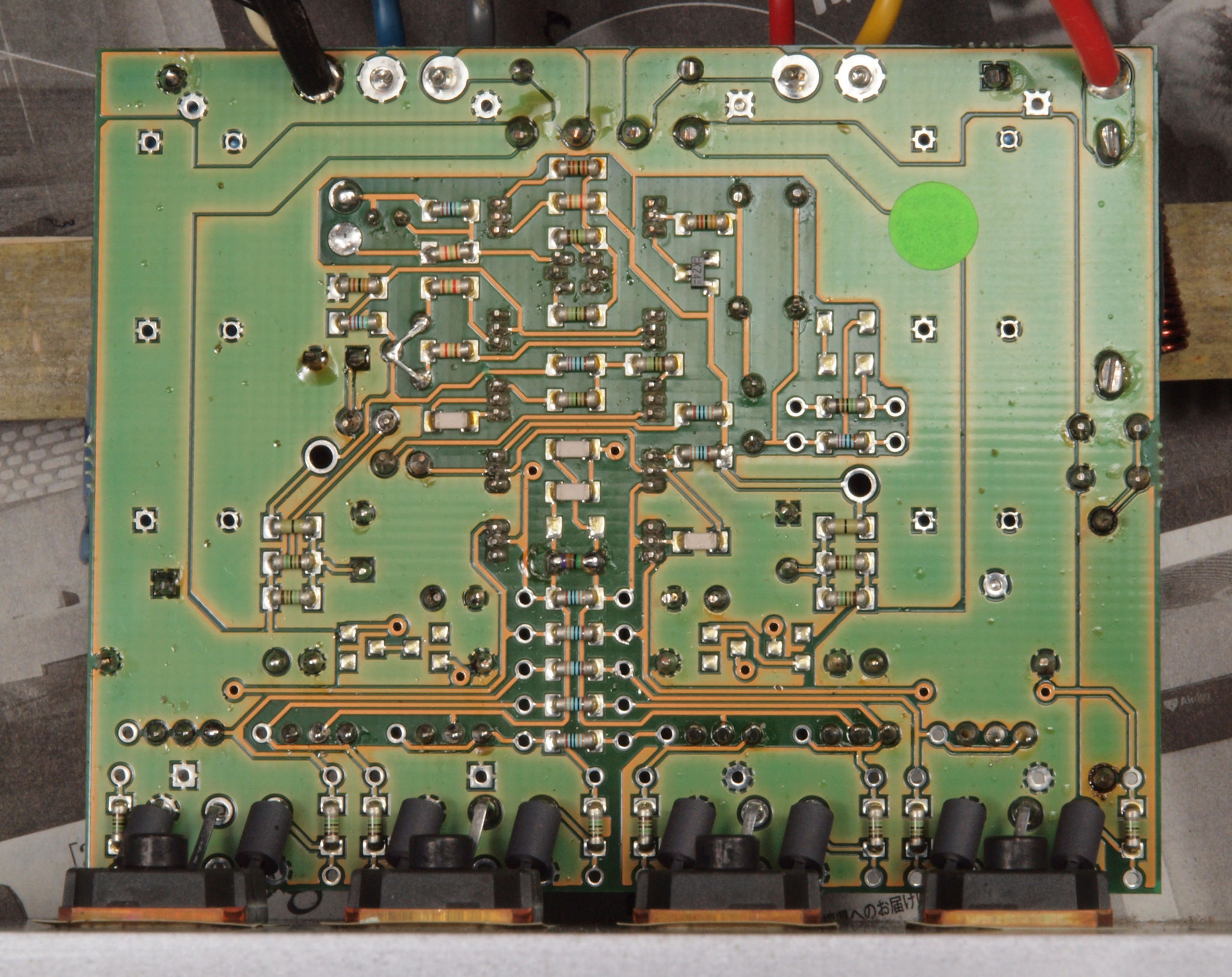 | C232. 修理中 左アンプ基板裏。ハンダブリッジヶ所。 | ||||||||||||||