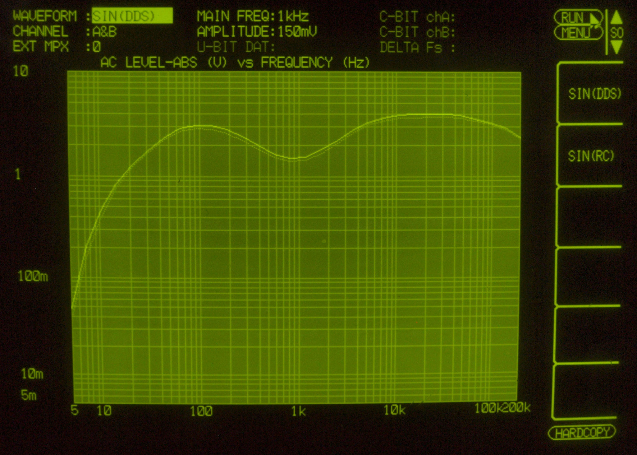 MM入力 入力電圧=2mV一定入力 VRはmax   左出力=薄(細い)色 右出力=濃い(太い)色