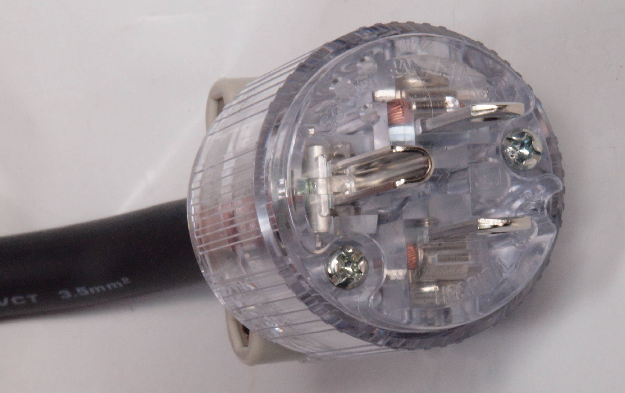 | A52. 点検中 交換する電源コード(3.5スケア)、 PSE合格品なので被服が分厚い! |