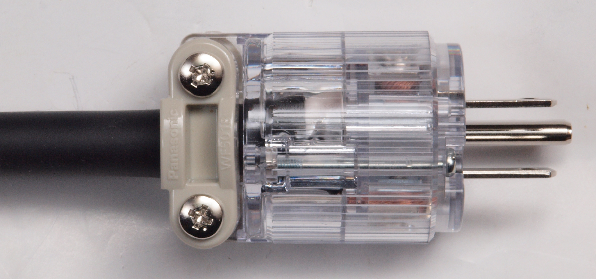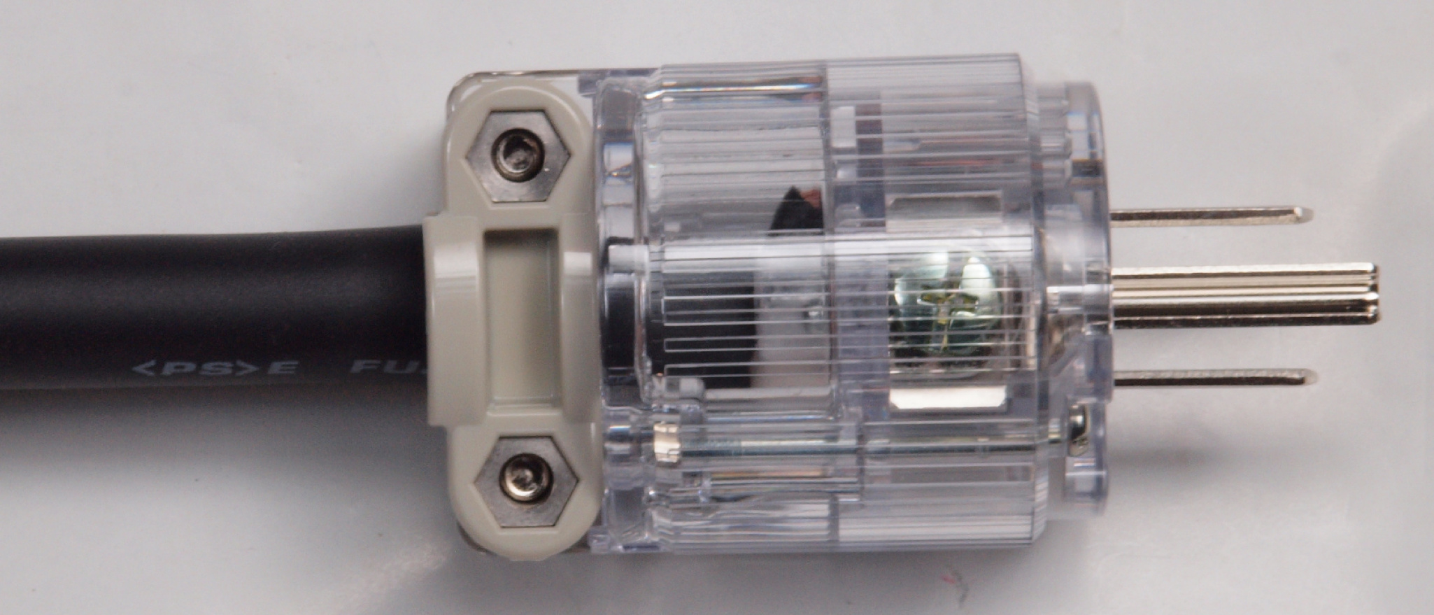 | C9E. 完成 3Pプラグにケーブル取り付。 奥までしっかり芯線が入っている。 |
