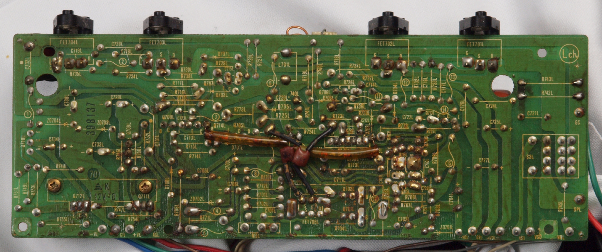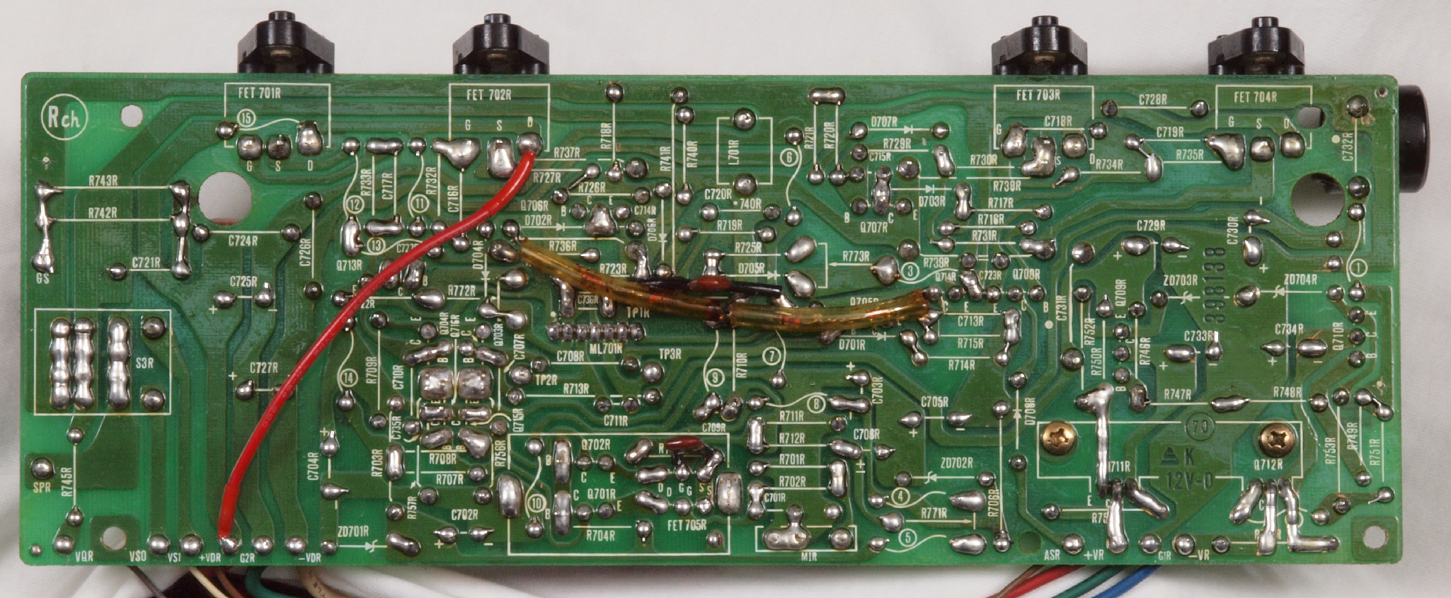 | C15. 修理(半田補正)後 R側ドライブ基板裏 半田を全部やり直す。 普通はこれで完成。 |