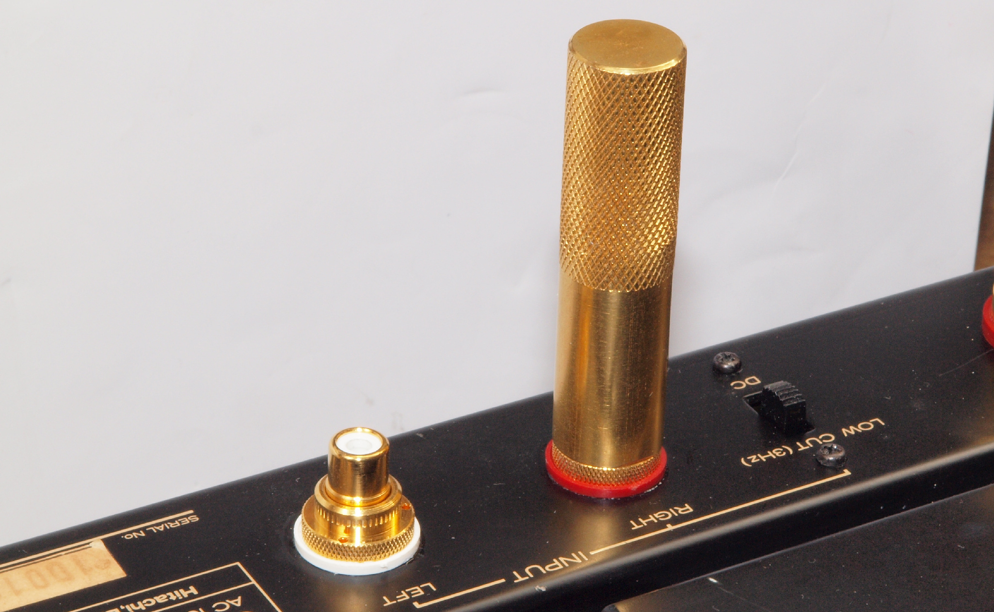 | A85. 点検中 交換するテフロン絶縁製RCA端子。 中心電極は円筒状で4つ割方式。 |
