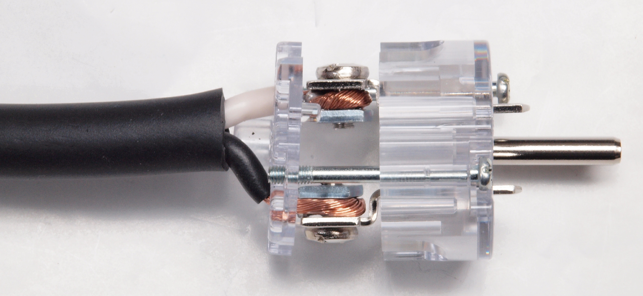 | C9F. 完成 3Pプラグにケーブル取り付、反対側。 奥までしっかり芯線が入っている。 |