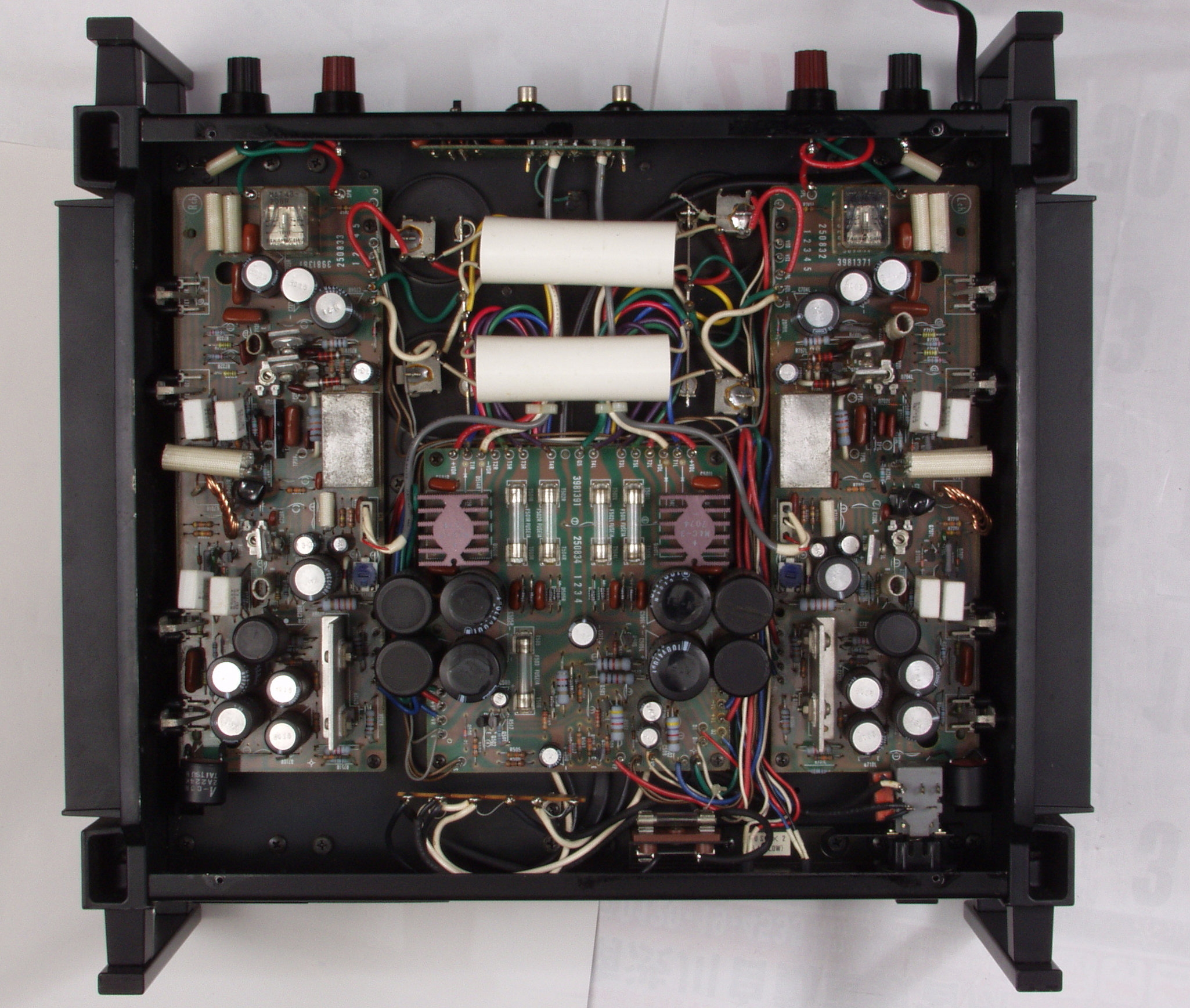 | CDA. 修理前 電源コンデンサーのパスコン、銅バーから少しは離して欲しい |