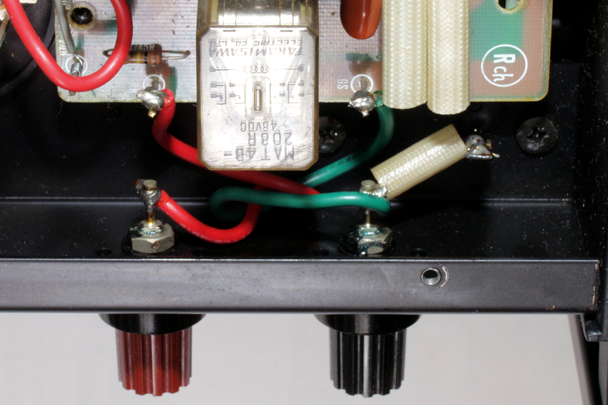 | A5. 点検中 L側ドライブ基板裏、SP接続リレーの半田、もう少し半田のノリが欲しい |